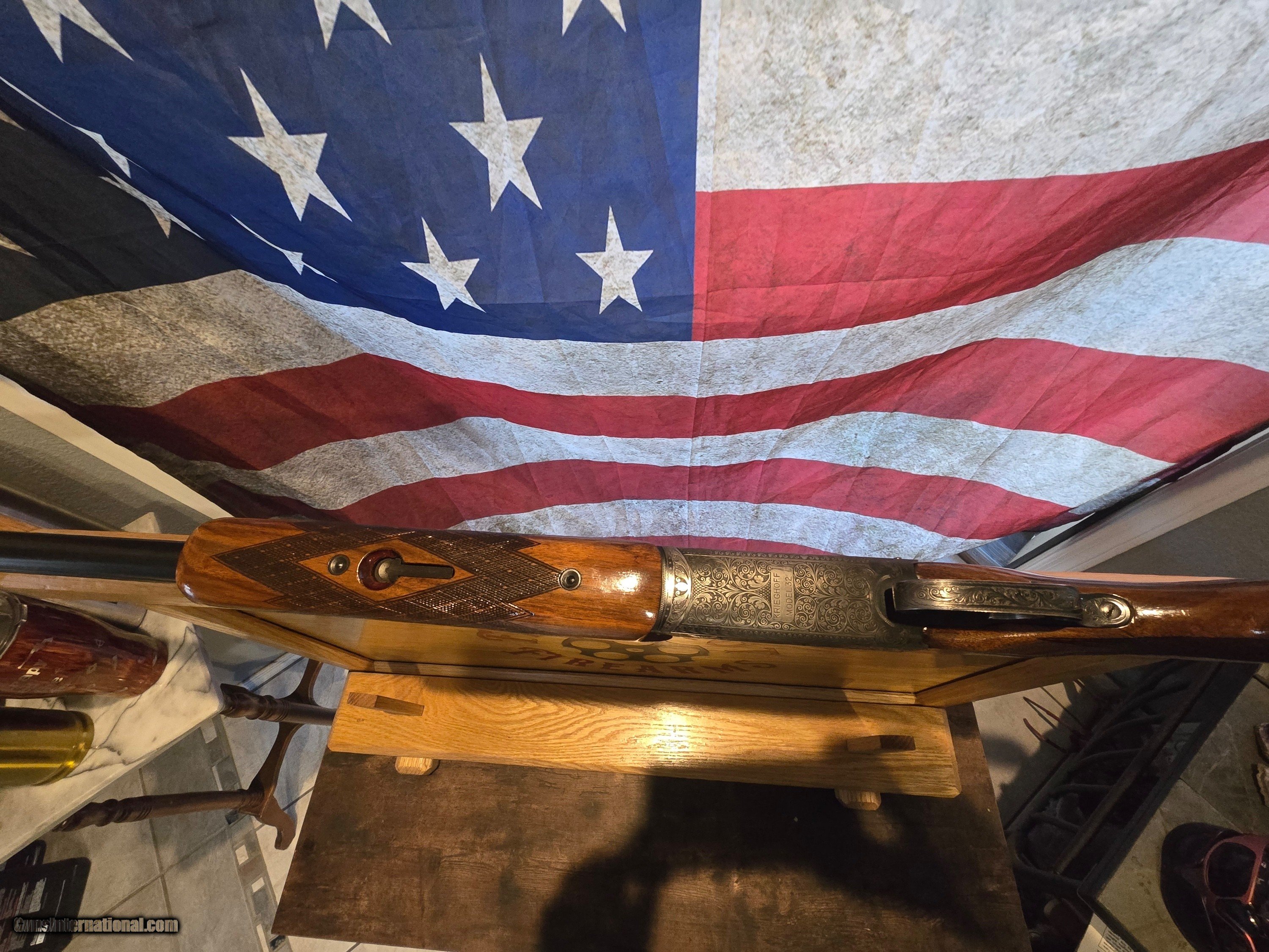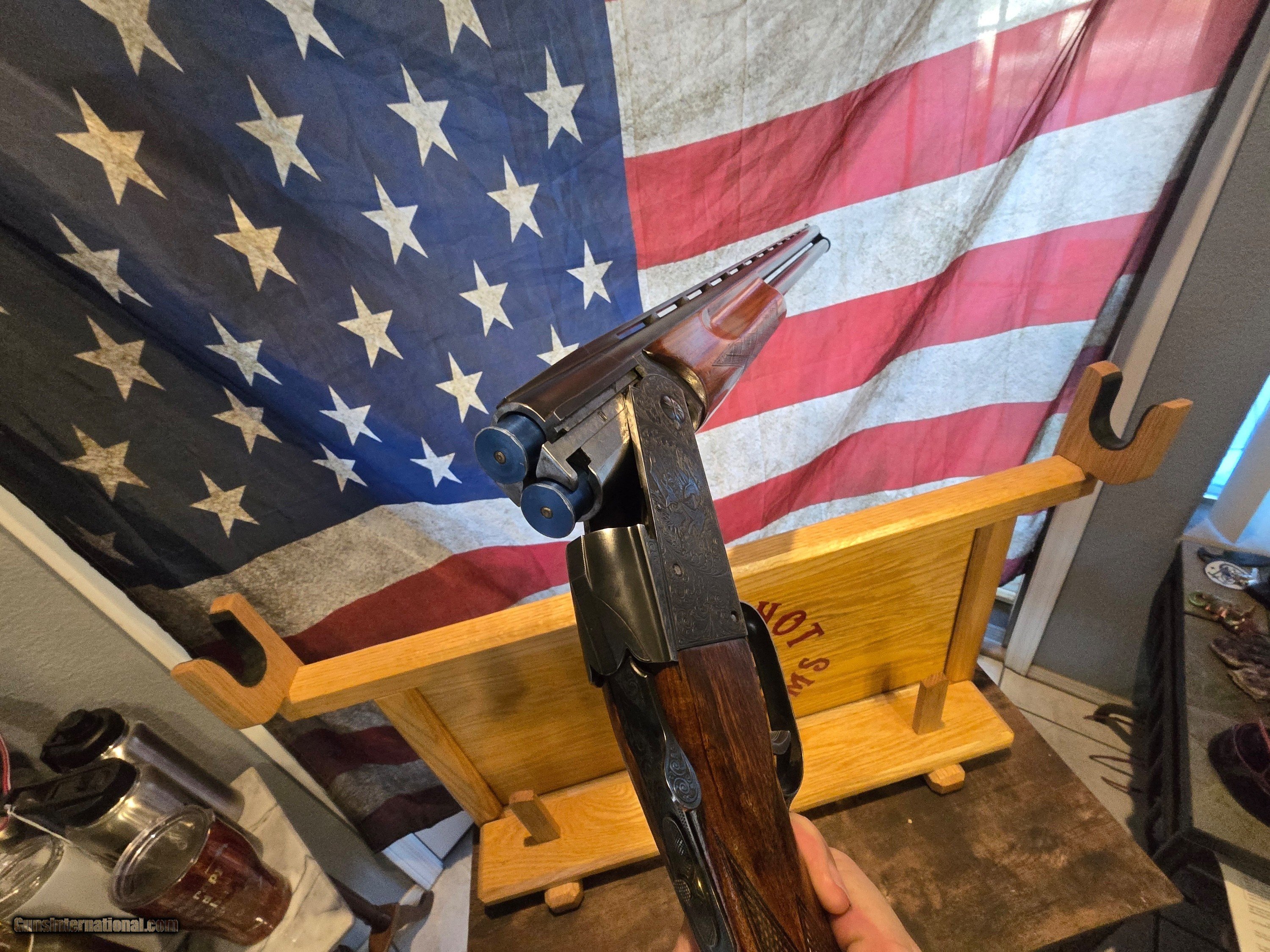 KRIEGHOFF MODEL 32 TRAP SAN REMO WITH ENGRAVED WILDLIFE SCENES 12 GUAGE HAS AFTERMARKET BUTTPAD GRIGGS ADJUSTABLE PAD