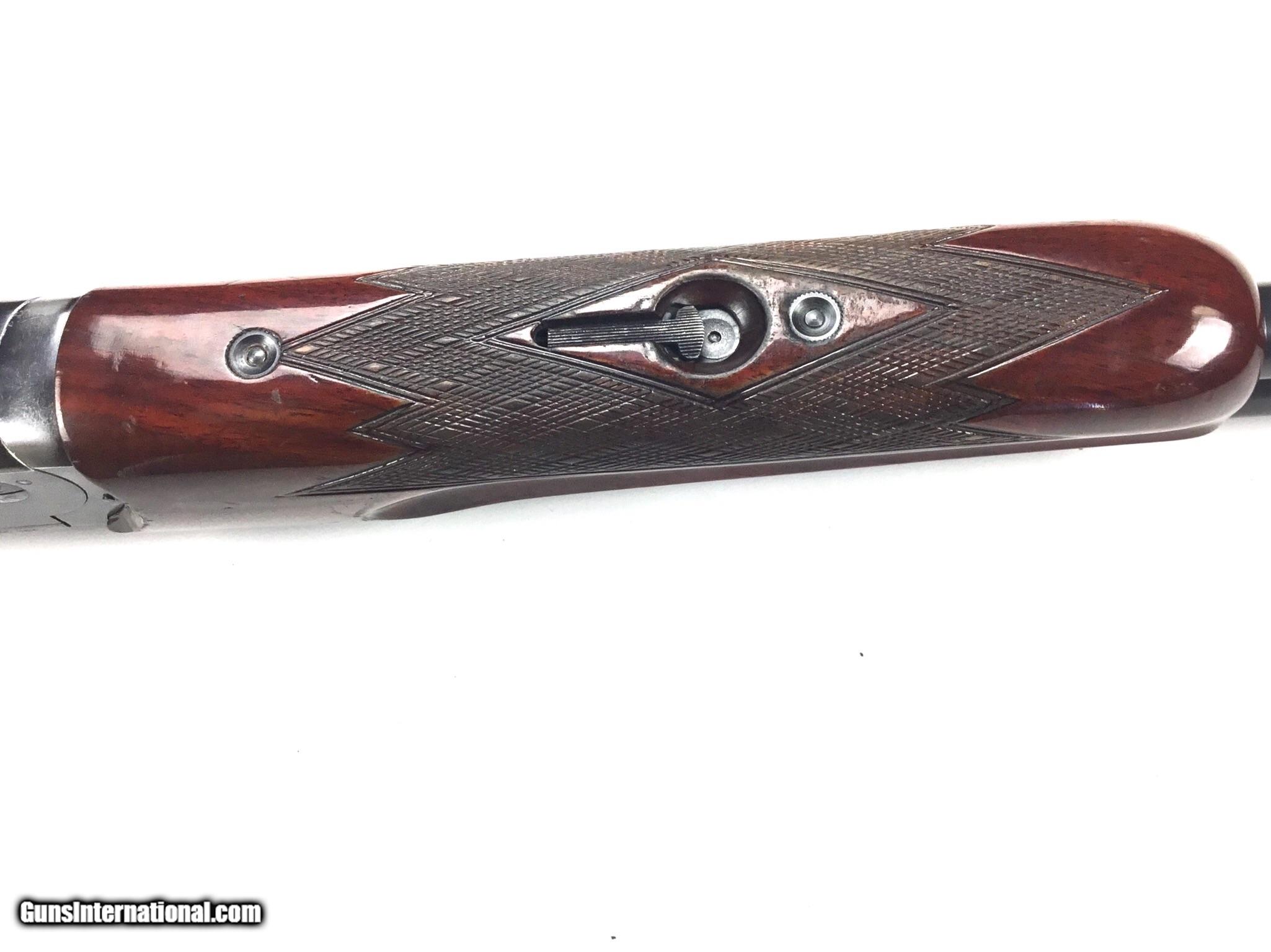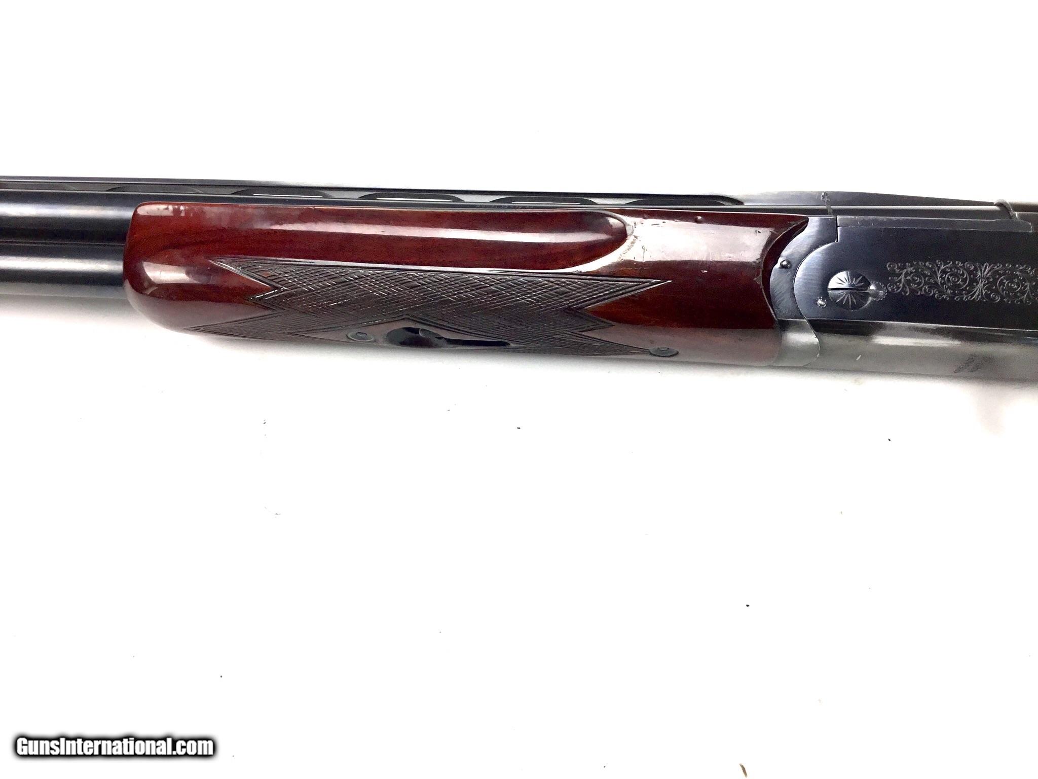 Description: KREIGHOFF MODEL 32 TRAP 12 GAUGE, Semi Pistol Grip Stock with Grip Cap over KickEez Recoil Pad, Adjustable Comb, Checkered Beavertail Forearm, Single Selective Trigger, Blued Receiver with Light Scroll Engraving, 32” Bbls. Choked Full and Full (.734 Bores, .024 Constriction), LOP: 13 3/4”, 2 3/4” Chambers, Drop and Cast are Adjustable, Blueing on Receiver is Worn, Stock has Multiple Handling Marks Bbls. Have Scratches and Blueing is Worn, Bores are Bright and Shiny, Manufactured in Ulm Germany, SN-3966, #3054, $1,995.00, HAMPELSGUNCO AMERICAS OLDEST GUN SHOP SINCE 1919. SOLD |