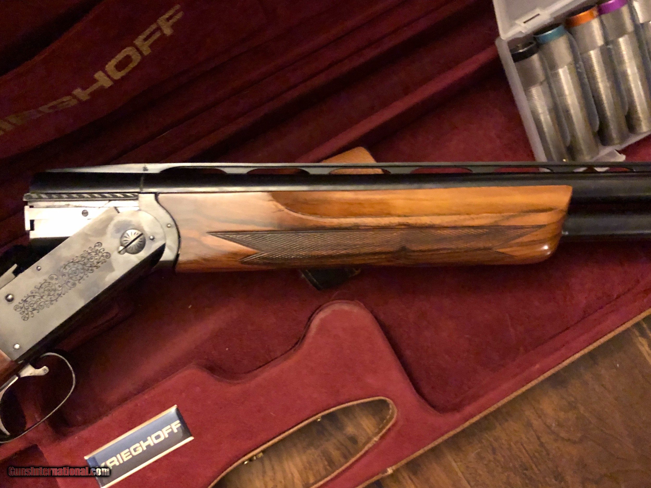 Description: LOWER PRICE Vandalia Rib! First $3795 takes it! For Sale is my personal Krieghoff 32 trap and clays shotgun with a Vandalia rib. It features 32-inch barrels with a raised, ramped Vandalia rib and Briley extended S-2 chokes. It comes with 8 chokes: F, IM, 2 Mod, IC, SK and 2 CYL in a Wild Hare plastic case. Barrels came from a higher grade gun, with engraving near the breech. The barrels were also refurbished before I purchased with new bluing and rebuilt barrel ears. Overall the barrels are beautiful and look new. No porting. They currently sport a hanger with my initials in gold wire but I will send you the # hanger of your choice. The triggers are outstanding. I had Allem’s perfom an annual service and reset the trigger pulls. They are very crisp. Wood is K80 with right hand palm swell and very nice figure. Adjustable comb and butt, LOP 14.5. It’s a ready-to-go target crushing machine. I used this gun to win Class B singles at the VIrginia state shoot last year (195/200 being my best thus far). It also makes one heck of a sporting clays gun and I have also used it for that. First $3995 takes it! Plus shipping to your FFL. My email is josephgrazianogmail. If you have any questions, please feel free to ask. SOLD |