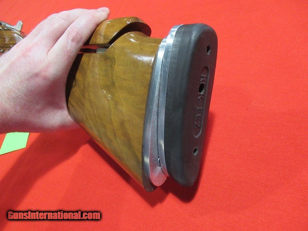 Description: Kriegohff KX-5 12ga/34" Multichoke w/ Release -- Strong condition overall with the only modification to the gun being the Jones style adjustable buttplate (it is not well-fit). Factory release trigger, adjustable comb, and adjustable rib. This gun is equipped with factory installed choke tubes. Krieghoff Americase included. SOLD |