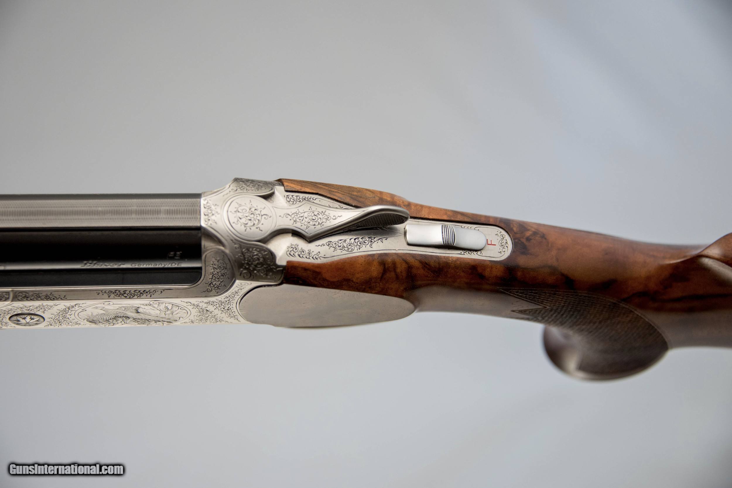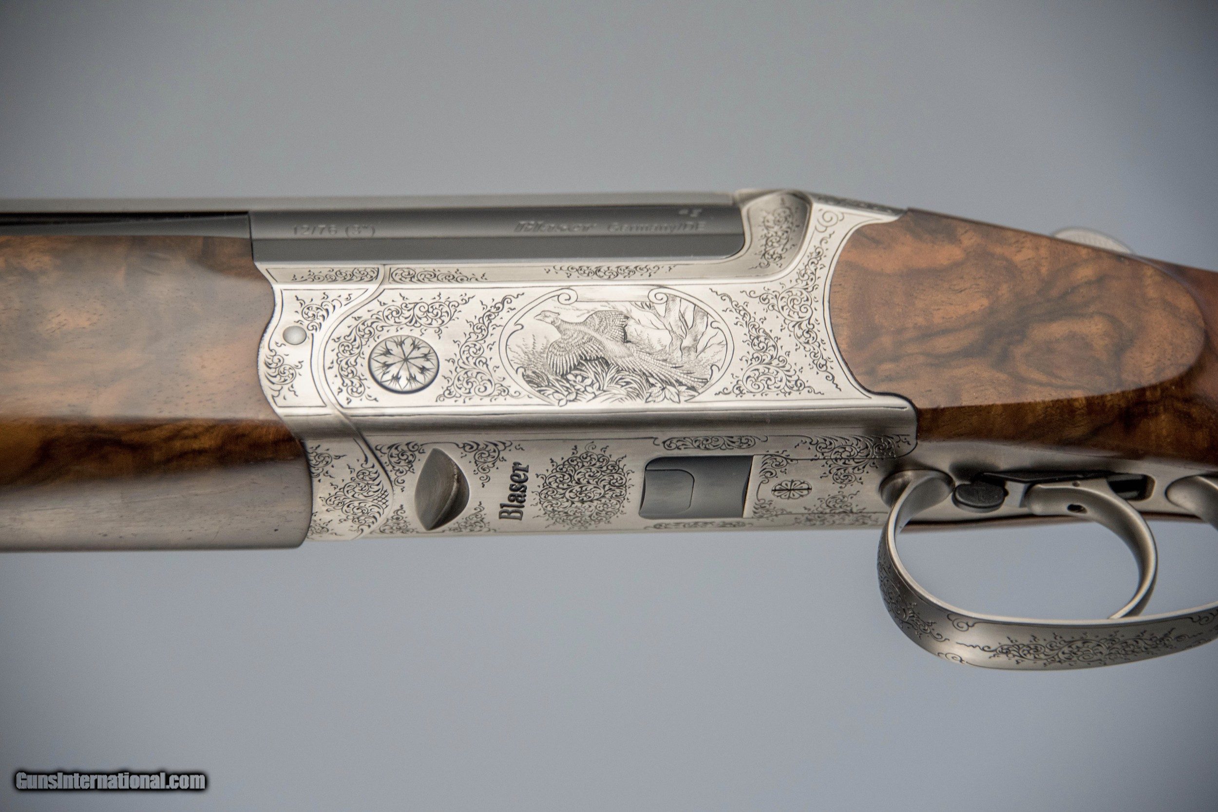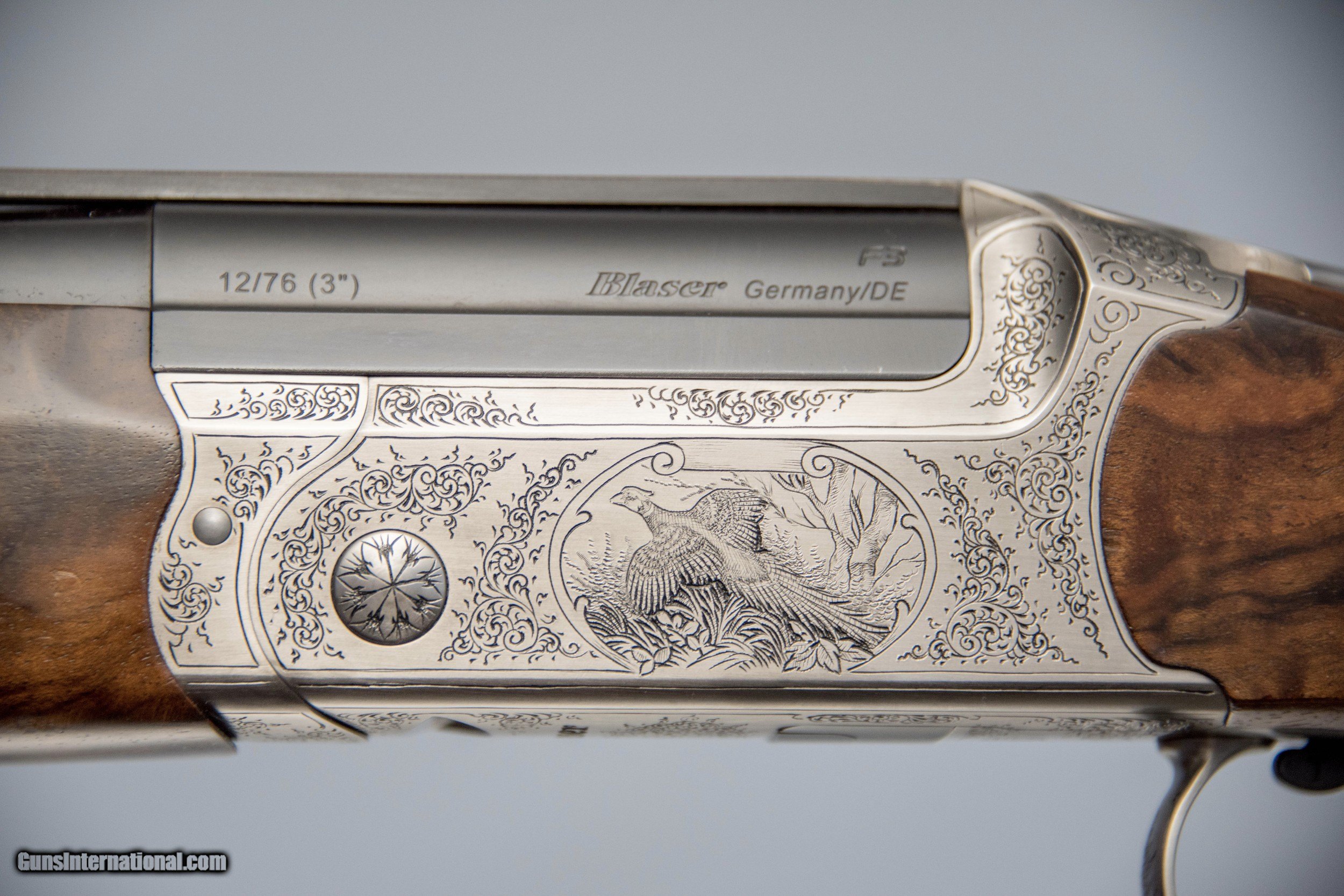 Description: For sale is a pre-owned Blaser F3 Luxus grade chambered in 12 gauge with 32 inch standard competition sporting barrel. Comes with 3 Pure Gold choke tubes, 6 Blaser Spectrum choke tubes and a Blaser hard case. Simply stunning wood! This gun is in excellent condition and weighs 8.20lbs. The Blaser F3 was a ground breaking, zero-based development by Germany‘s leading manufacturer of sporting firearms. Superior weight distribution makes it extremely point-able, while at the same time keeping it steady and smooth when following the line of the target without infringement on acceleration or speed of swing. The F3‘s extremely fast lock time and crisp trigger, that breaks like glass at approximately 3 1⁄4 lbs, ensure that the shot string is on its way the same instant the shooter‘s brain gives the command to pull the trigger. Balance System: The Blaser Balancer-System allows for individual adjustment of the shotgun’s balance by means of adjusting the barrel balancer that is positioned between the barrels together with the stock balancer. The barrel weight can be increased by up to 213g using balancer weights. The stock balancer is a threaded rod that can be equipped with one or two weight cylinders. Butt-Stock: The butt stock features fine checkering, and a lacquered finish. A slip rubber recoil pad for optimum protection for the shoulder is included. Chokes: All new Blaser F3 shotguns come with 5 extended choke tubes, made by Briley. SOLD |
