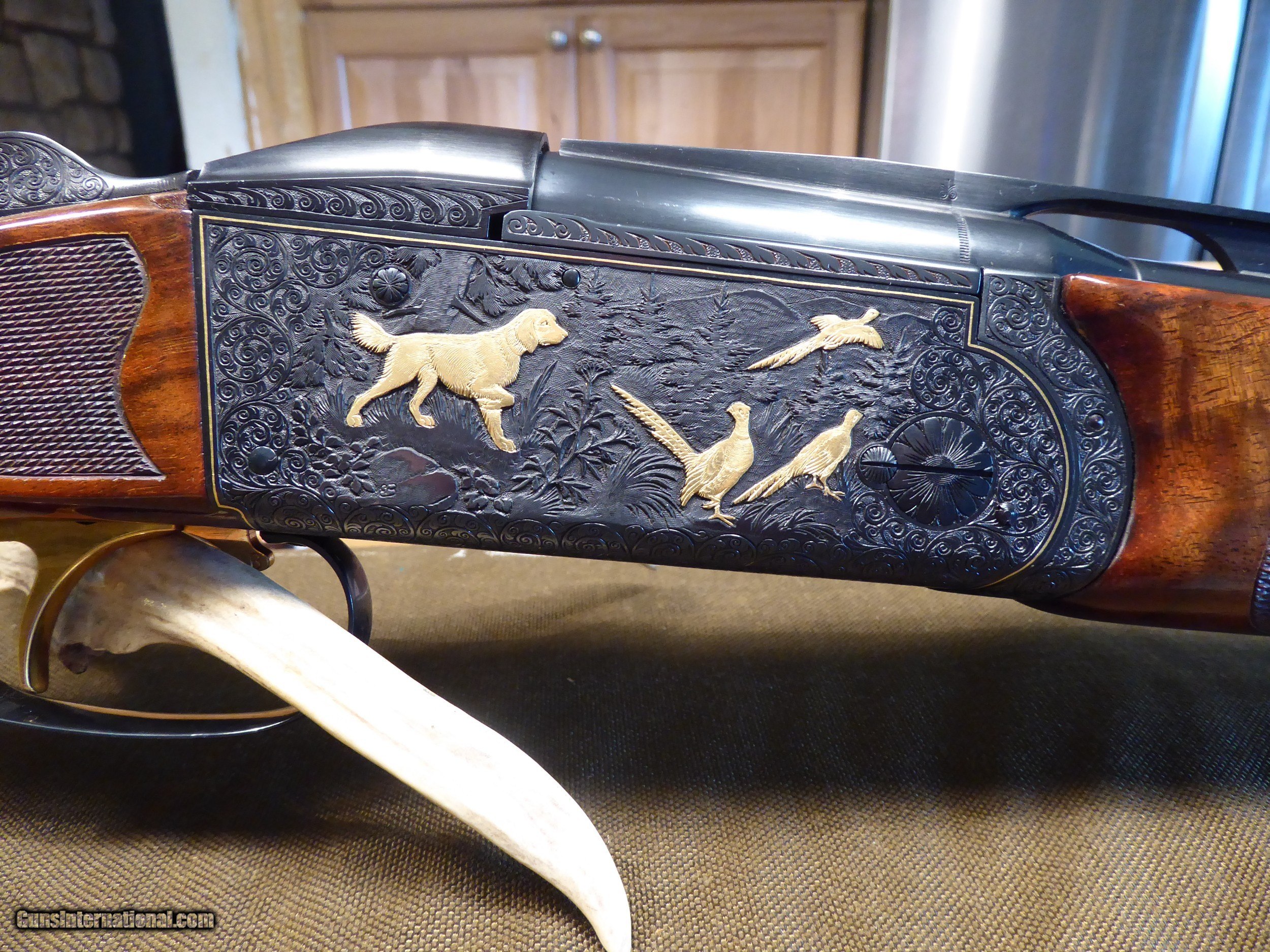 Description: SOLD !!!!!Fabulous Krieghoff K-32 Factory Engraved and Verified by Krieghoff International Engraved by World Renowed Engraver Eric Boessler and signed on both sides of receiver. This is a Rare and Exquisite Skeet Set in Mint Condition. 28" barrels and stocked by World Renowned Stockemaker Jack Dockweiler .You will Not find a better Factory Engraved K-32 unless it is another Boessler engraved gun period. I had total service completed in 2007 . I have only shot this gun maybe 2 flats since 2008 been in vault since.SOLD!!!! SOLD Manufacturer: Krieghoff Model: K-32 Serial Number: 8393 Barrel Length: 28 Chambers: Factory Ejectors: Yes Barrels: 12,20,28 & 410 Barrel Type: O/U Action: Boxlock Triggers: Single Stock: Pistol Grip Stock Comb: 1 3/8 Stock Heel: 2 Stock Cast: Netural Fore End: Target Butt Pad: Decelerator LOP: 14 1/2 Rib: Vent Finish: Original Weight: 8lbs 12oz with any barrel Sights: Twin Chokes: Fixed Engraving: Eric Boessler Case: Yes Item Location: Texas |