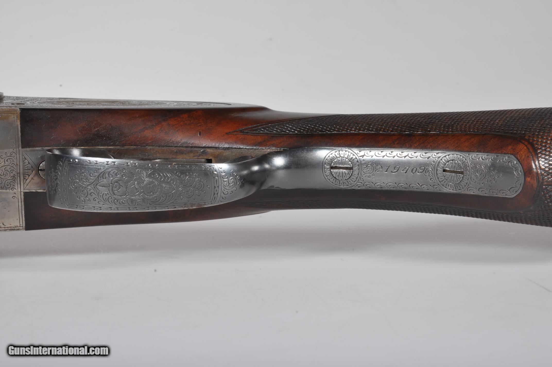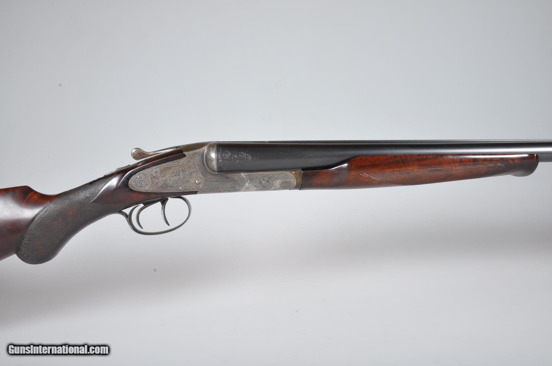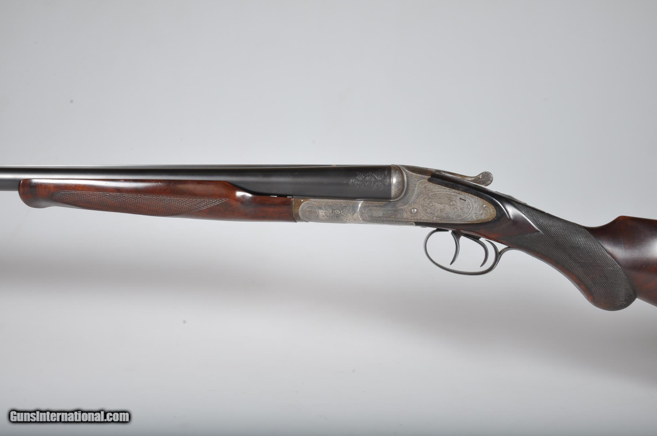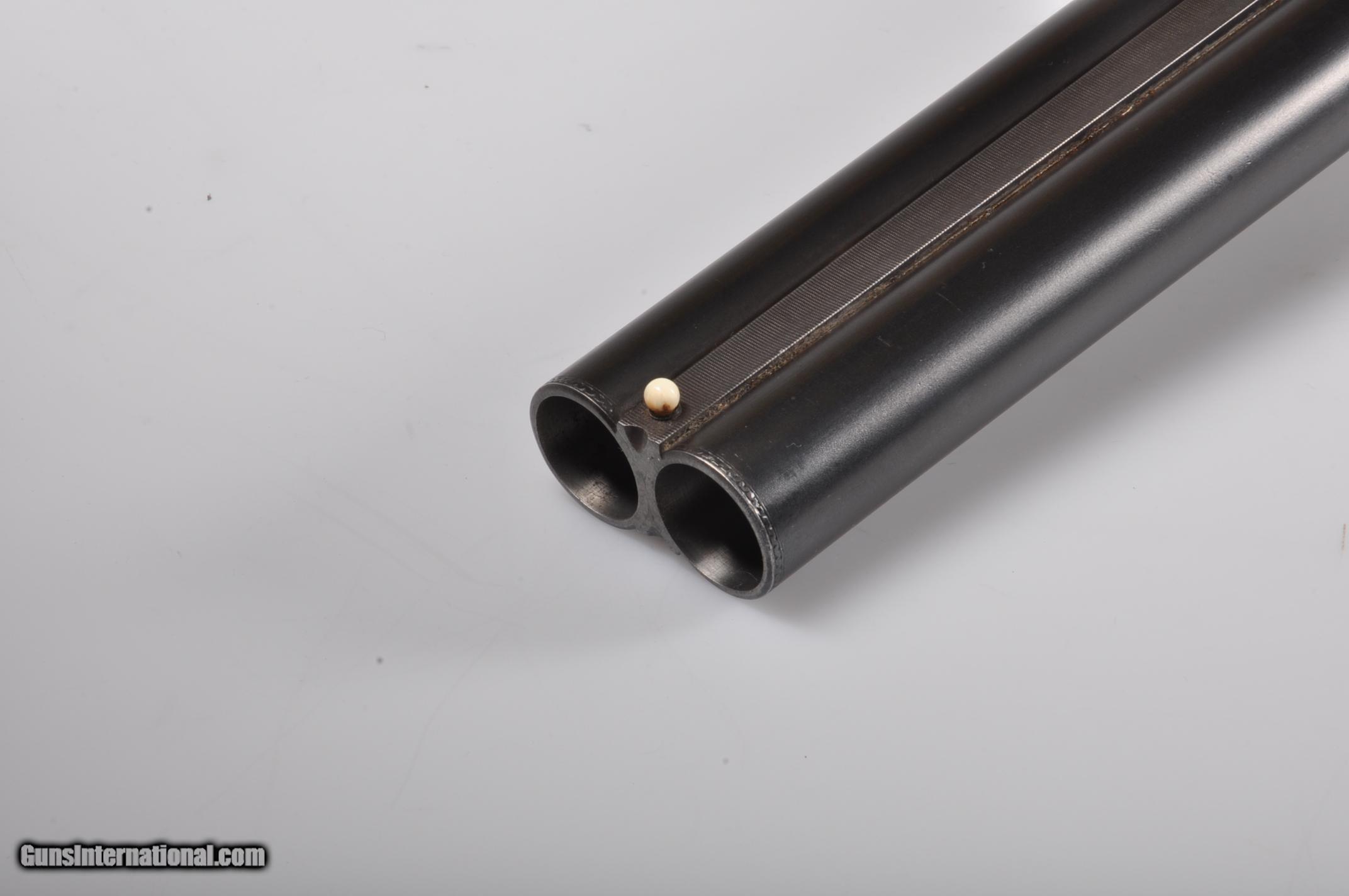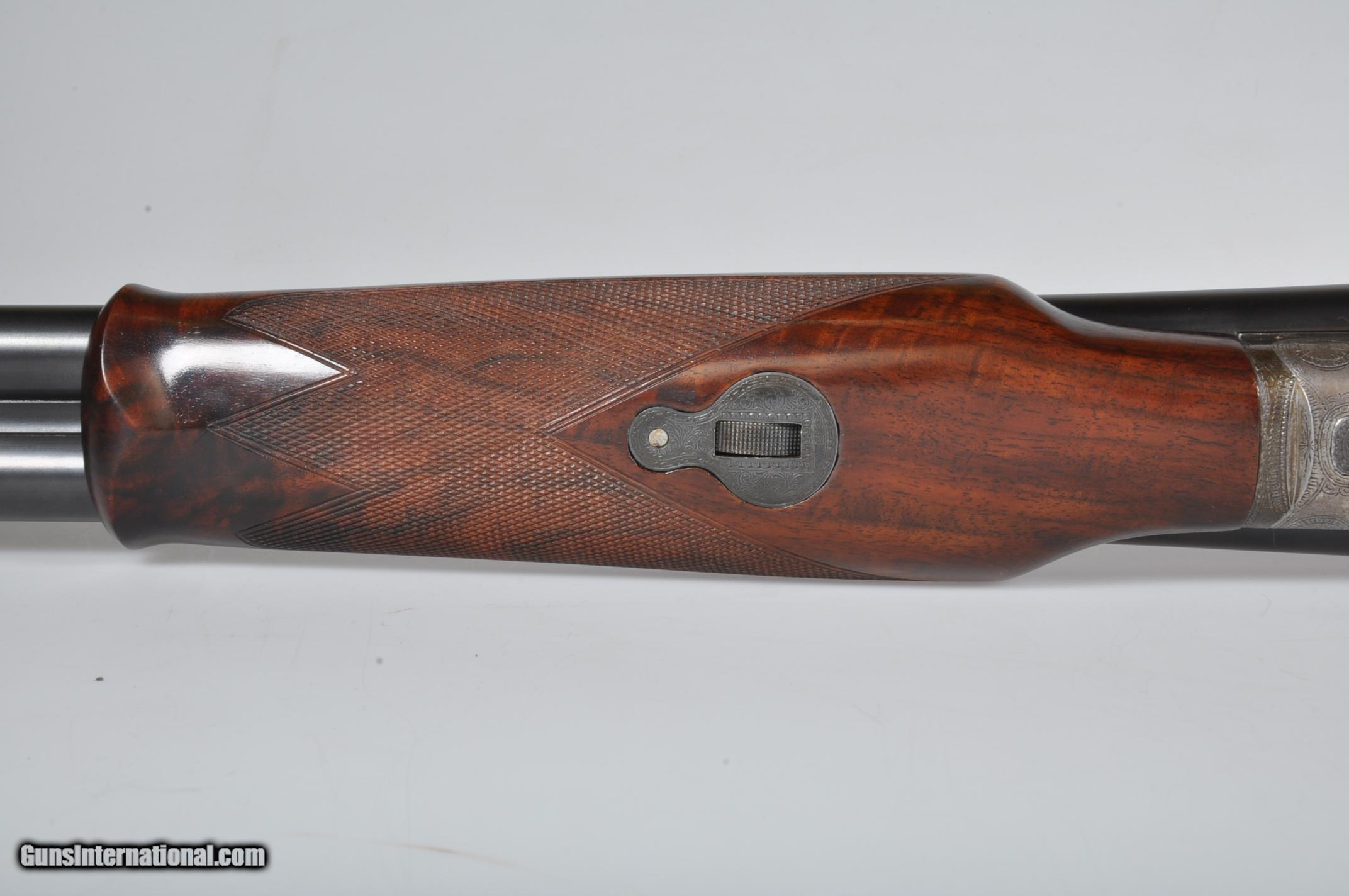 Description: 30” Nitro steel barrels with 2 ¾” chambers, choked .038 right and .024 left. Full length concave matte rib with dual white beads and a gold line 2” in front of breech. Right barrel is marked L.C. SMITH CROWN GRADE and the left is marked MADE TO ORDER BY THE HUNTER ARMS CO. FULTON, N.Y. The barrels have been refinished and retain 98% bluing. Bores are bright and shiny. Hunting dog scenes are engraved on both side plates with floral and scroll patterns. The receiver and trigger guard are engraved with a floral and scroll pattern. A gold crown is inlaid on the top lever. The receiver retains 20% case color while the sideplates and forend iron retain little case color. The trigger retains 70% original bluing. Dual triggers with the front trigger firing the left barrel, automatic safety and ejectors. The pistol grip stock is two point checkered and wraps over the grip and around the round knob pistol grip. It has been refinished and has a few light handling marks. The forearm is three point checkered and has also been refinished. Length of pull is 14 1/2” over a red recoil pad. Drop at comb: 1 5/8”, Drop at heel: 2 3/4”. Weight: 8.2 lbs. Mechanics are good. California Sales OK PLEASE NOTE! My office hours are 7am-5pm CST Monday through Wednesday. Emails or phone calls received after hours and on the weekend will be answered on the following business day. SOLD Manufacturer: L.C. Smith Model: Crown Grade Serial Number: 219409 Chambers: 2 3/4 Ejectors: Yes Barrels: 30 Triggers: Double Gauge Info: 12 Stock: Pistol Grip Fore End: Beavertail LOP: 14 1/2 |