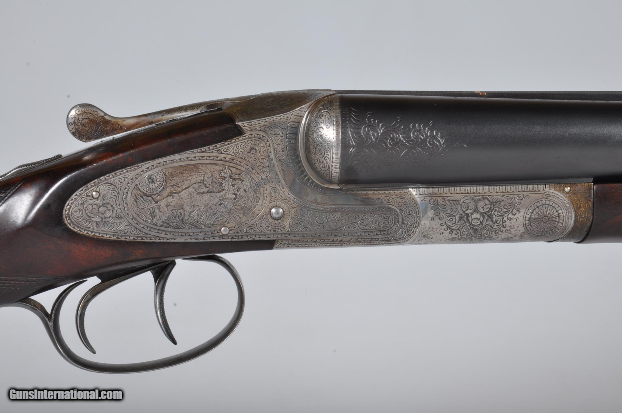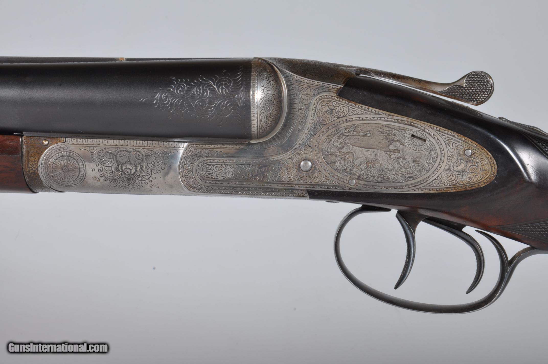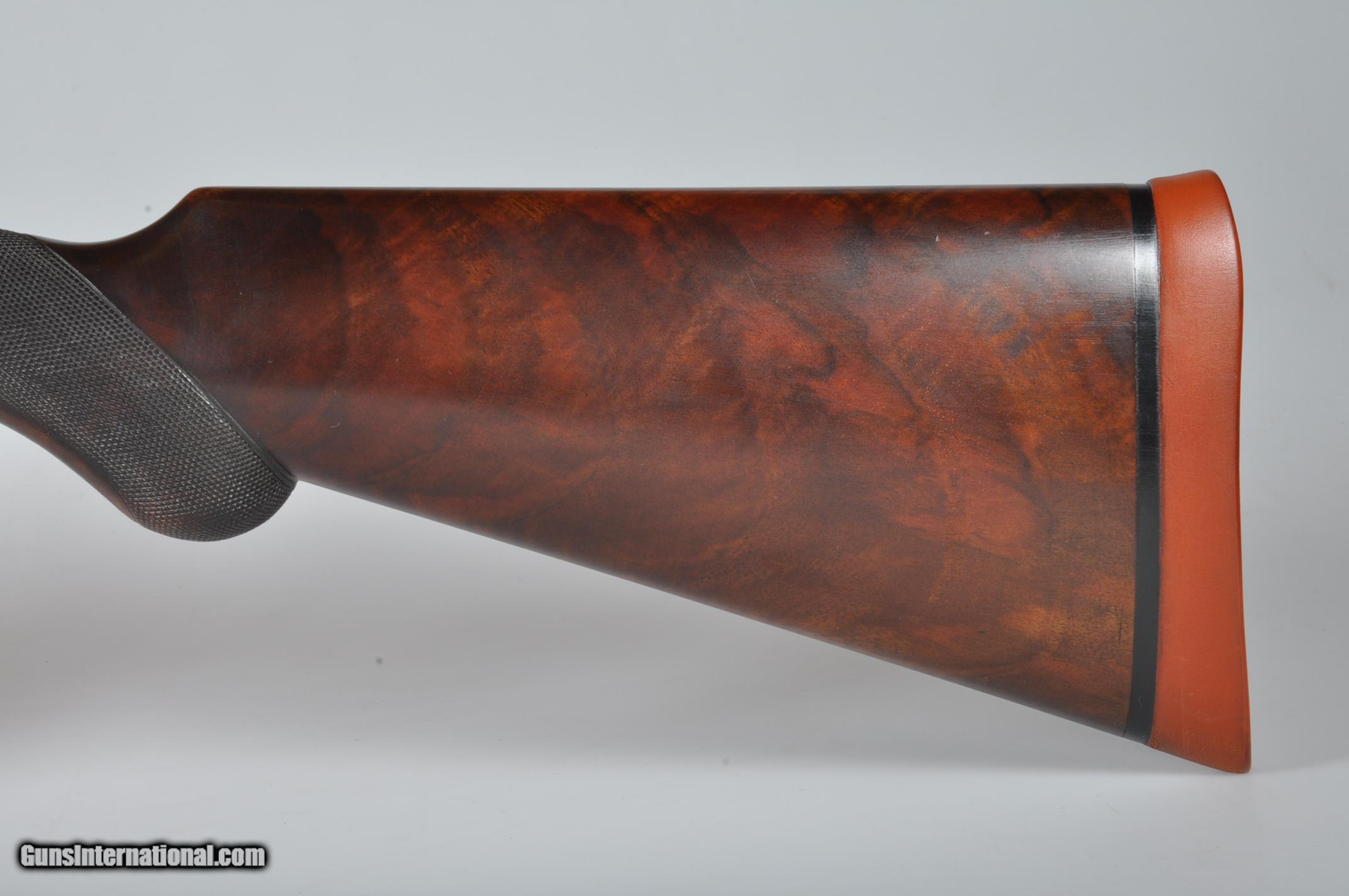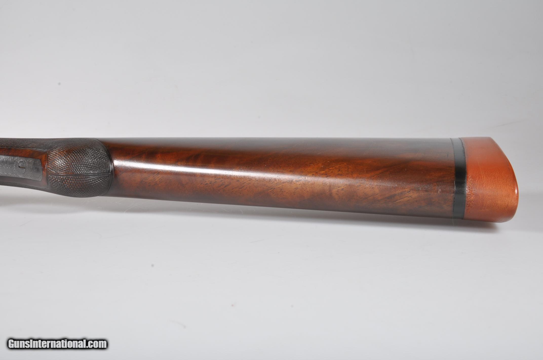 Description: 30” Nitro steel barrels with 2 ¾” chambers, choked .038 right and .024 left. Full length concave matte rib with dual white beads and a gold line 2” in front of breech. Right barrel is marked L.C. SMITH CROWN GRADE and the left is marked MADE TO ORDER BY THE HUNTER ARMS CO. FULTON, N.Y. The barrels have been refinished and retain 98% bluing. Bores are bright and shiny. Hunting dog scenes are engraved on both side plates with floral and scroll patterns. The receiver and trigger guard are engraved with a floral and scroll pattern. A gold crown is inlaid on the top lever. The receiver retains 20% case color while the sideplates and forend iron retain little case color. The trigger retains 70% original bluing. Dual triggers with the front trigger firing the left barrel, automatic safety and ejectors. The pistol grip stock is two point checkered and wraps over the grip and around the round knob pistol grip. It has been refinished and has a few light handling marks. The forearm is three point checkered and has also been refinished. Length of pull is 14 1/2” over a red recoil pad. Drop at comb: 1 5/8”, Drop at heel: 2 3/4”. Weight: 8.2 lbs. Mechanics are good. California Sales OK PLEASE NOTE! My office hours are 7am-5pm CST Monday through Wednesday. Emails or phone calls received after hours and on the weekend will be answered on the following business day. SOLD Manufacturer: L.C. Smith Model: Crown Grade Serial Number: 219409 Chambers: 2 3/4 Ejectors: Yes Barrels: 30 Triggers: Double Gauge Info: 12 Stock: Pistol Grip Fore End: Beavertail LOP: 14 1/2 |
