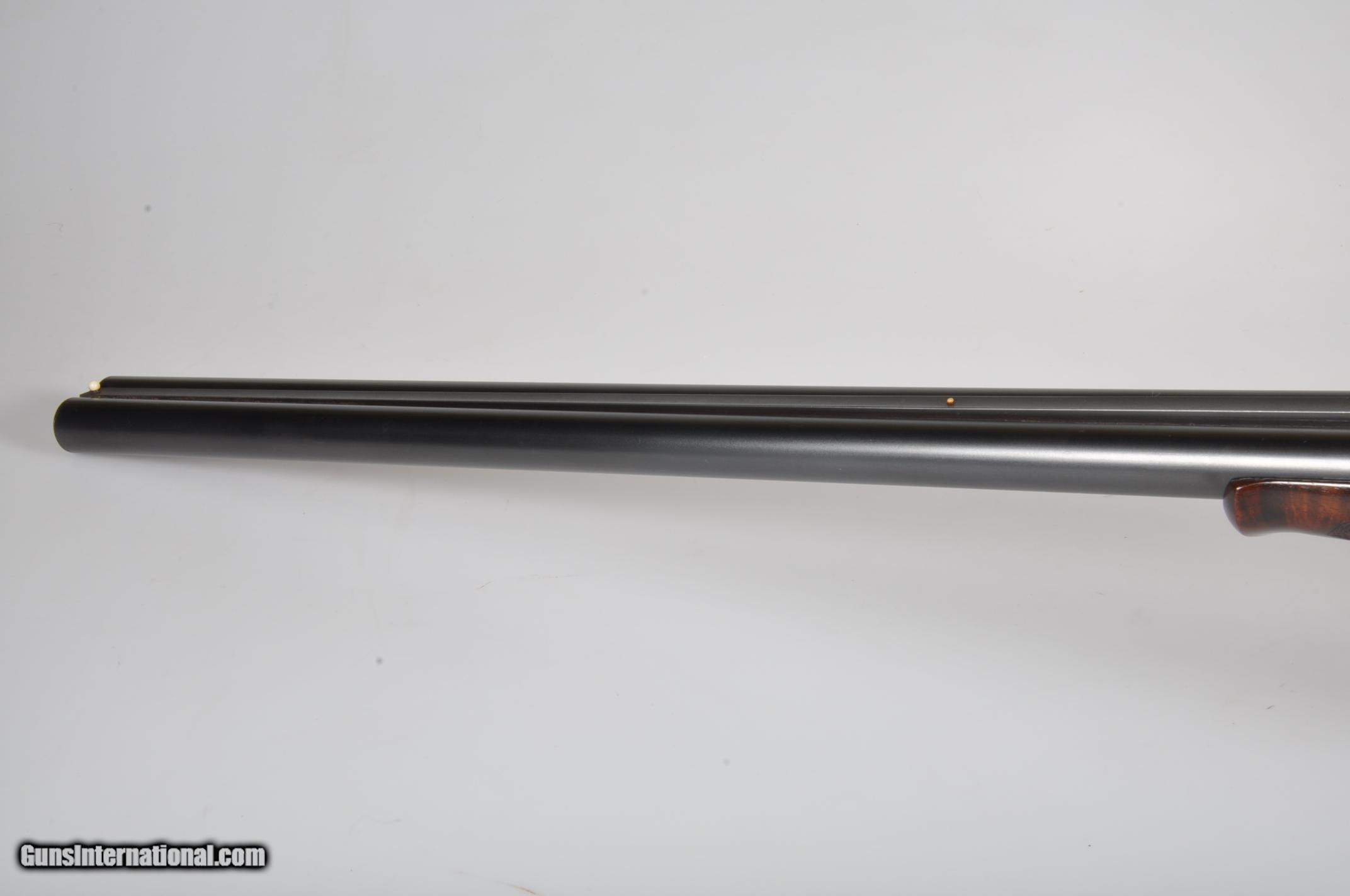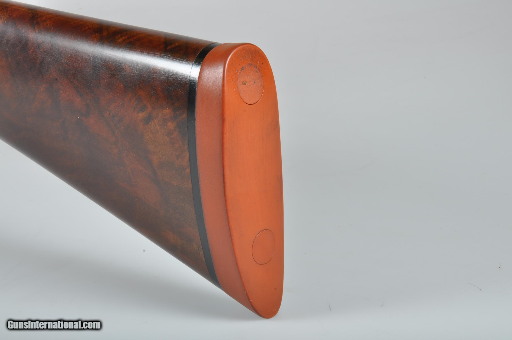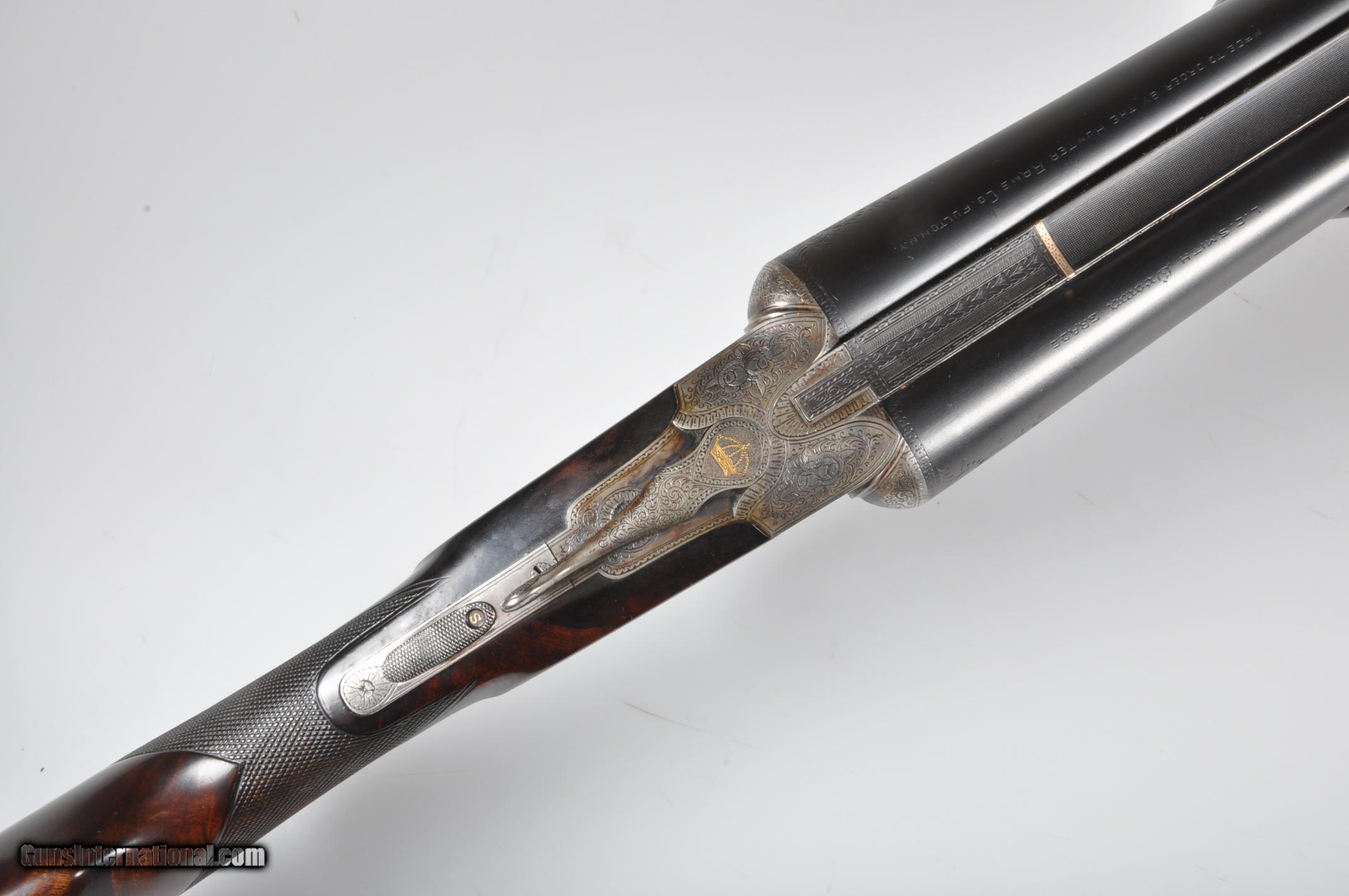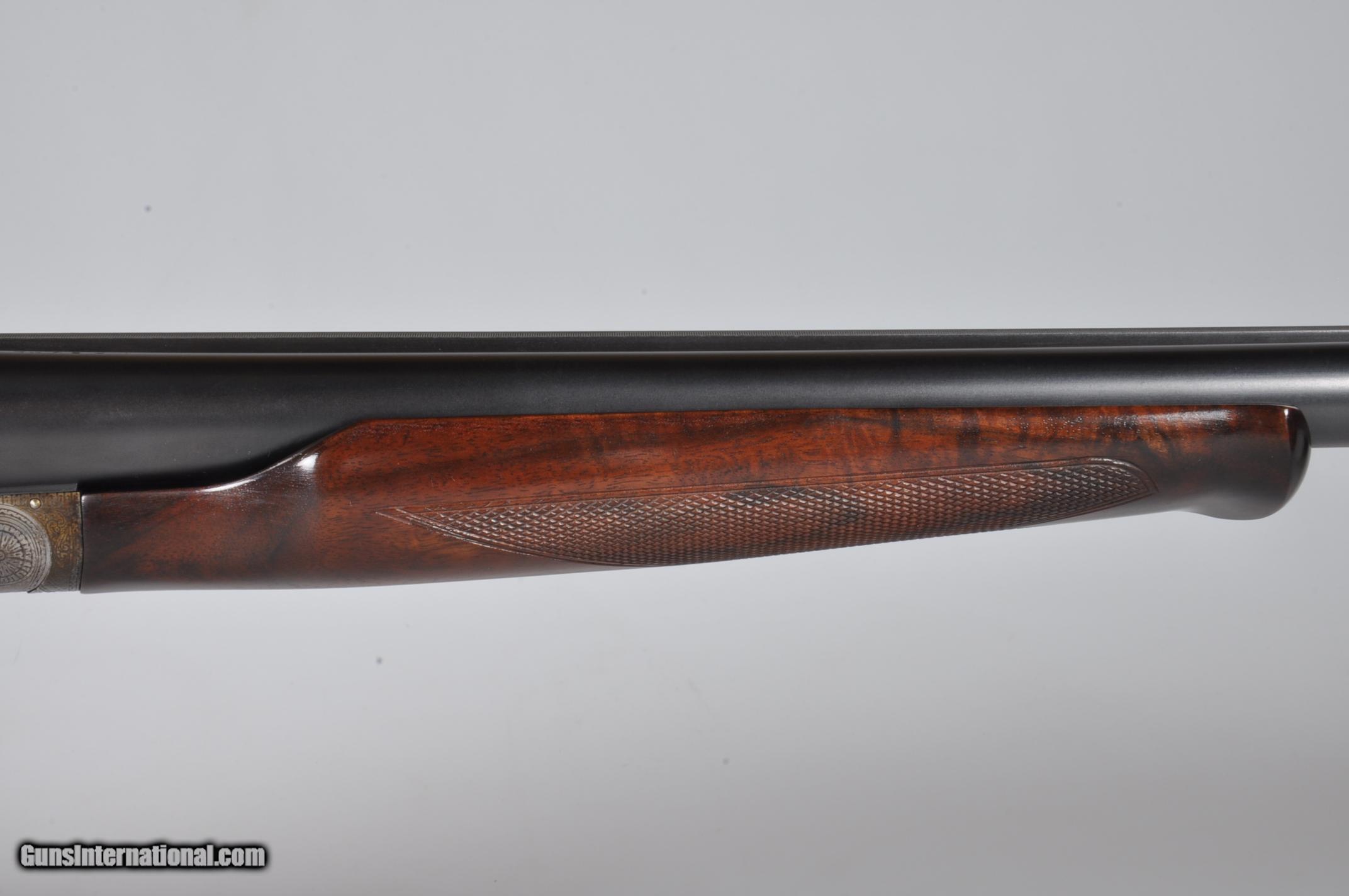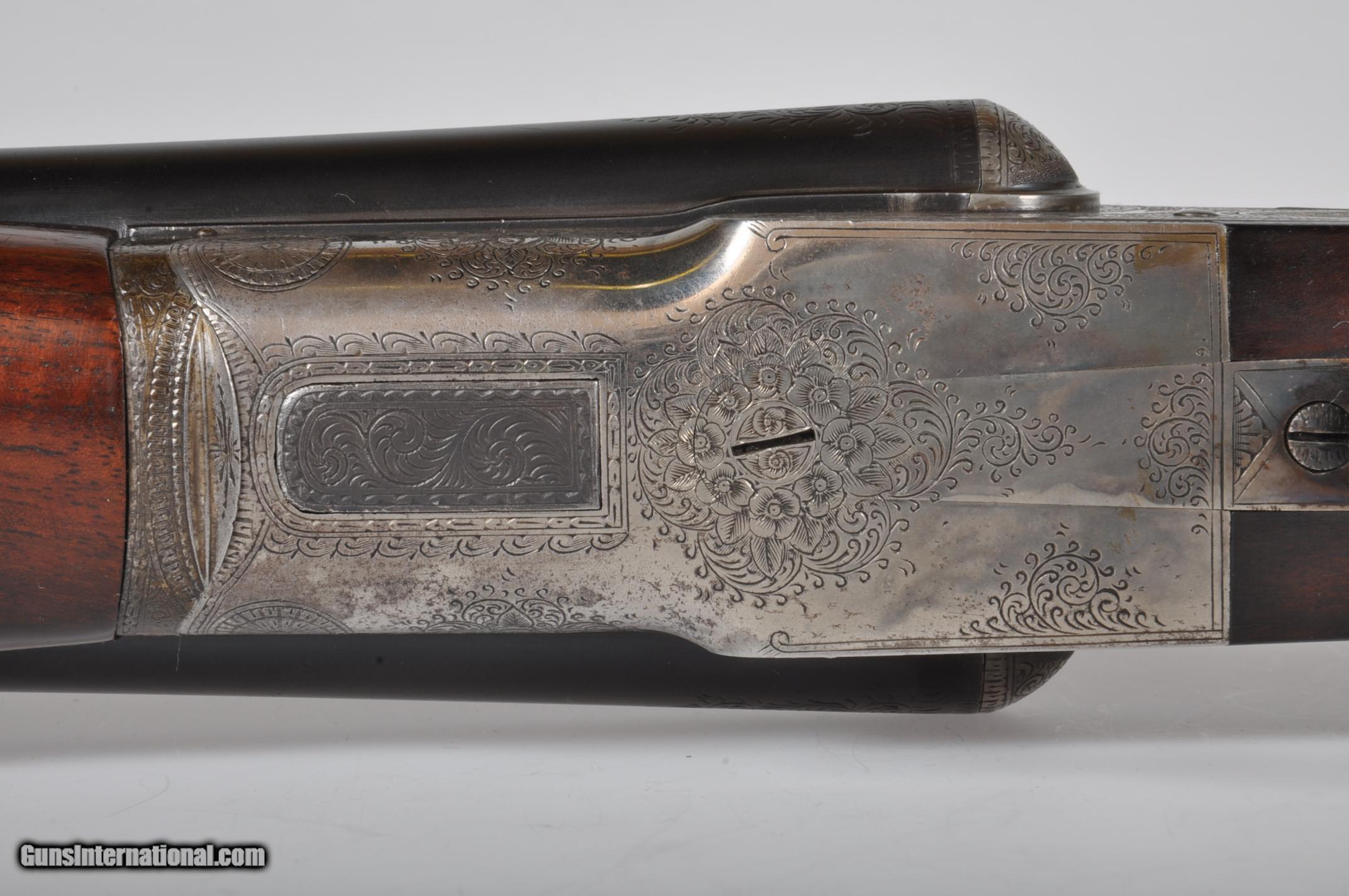 Description: 30” Nitro steel barrels with 2 ¾” chambers, choked .038 right and .024 left. Full length concave matte rib with dual white beads and a gold line 2” in front of breech. Right barrel is marked L.C. SMITH CROWN GRADE and the left is marked MADE TO ORDER BY THE HUNTER ARMS CO. FULTON, N.Y. The barrels have been refinished and retain 98% bluing. Bores are bright and shiny. Hunting dog scenes are engraved on both side plates with floral and scroll patterns. The receiver and trigger guard are engraved with a floral and scroll pattern. A gold crown is inlaid on the top lever. The receiver retains 20% case color while the sideplates and forend iron retain little case color. The trigger retains 70% original bluing. Dual triggers with the front trigger firing the left barrel, automatic safety and ejectors. The pistol grip stock is two point checkered and wraps over the grip and around the round knob pistol grip. It has been refinished and has a few light handling marks. The forearm is three point checkered and has also been refinished. Length of pull is 14 1/2” over a red recoil pad. Drop at comb: 1 5/8”, Drop at heel: 2 3/4”. Weight: 8.2 lbs. Mechanics are good. California Sales OK PLEASE NOTE! My office hours are 7am-5pm CST Monday through Wednesday. Emails or phone calls received after hours and on the weekend will be answered on the following business day. SOLD Manufacturer: L.C. Smith Model: Crown Grade Serial Number: 219409 Chambers: 2 3/4 Ejectors: Yes Barrels: 30 Triggers: Double Gauge Info: 12 Stock: Pistol Grip Fore End: Beavertail LOP: 14 1/2 |