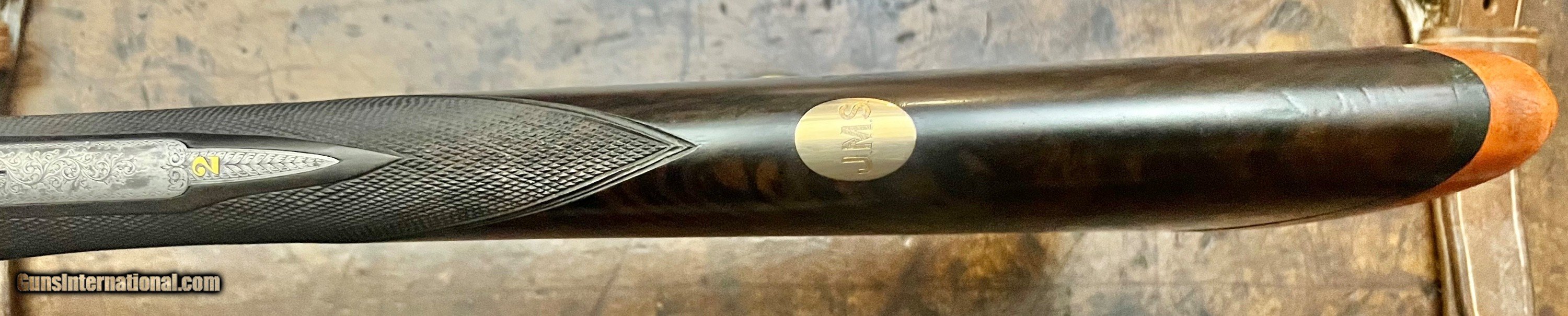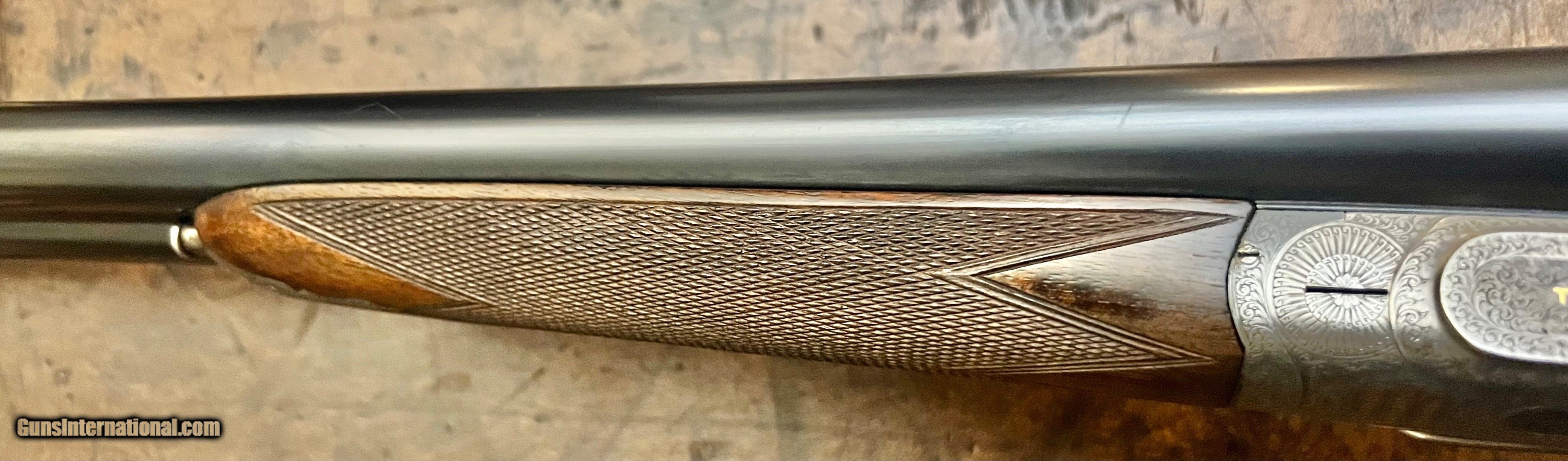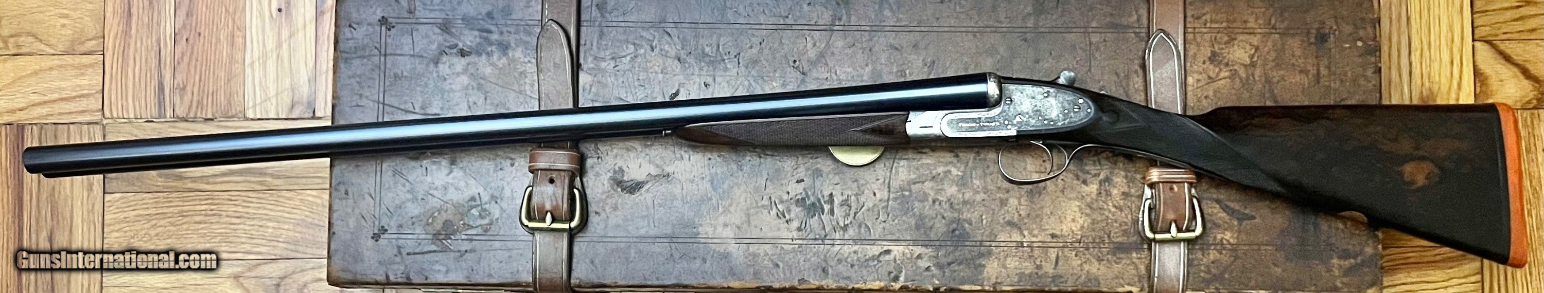 Description: Charles Lancaster 12/20 12GA Baker patent self opening back action sidelock ejector Single non selective trigger that functions perfectly Disc set strikers 28" ejector barrels with game rib and excellent bores Lockup is tight with forend on, with it removed there is very minimal movement. 2 1/2" 1 1/8oz nitro proof Chokes: .004/.015 Cyl/Light mod Bores: .731/.731 proofed at .729/.729, well within original proof specs. Minimum wall thickness R:0.022+ L:0.024+ Well figured straight grip stock with splinter forend, the stock cracked at the head and was professionally repaired 5 years ago. LOP 14 1/4 DAC 1 5/8 DAH 2 1/16 Cast off 3/8" at heel 6lbs 0oz Action has full coverage rose & scroll engraving with Name on the bottom and model on the sides inlaid in gold. Very few of these guns were produced and the quality is outstanding. Very nice condition Best Quality Lancaster shooter grade gun that you can use as is or restock to your dimensions. SOLD Curio/Relic: Yes Shotgun Gauge: 12 Gauge |