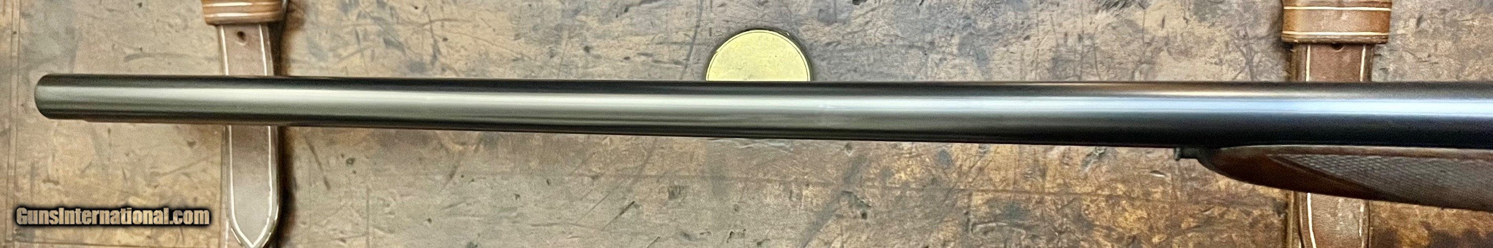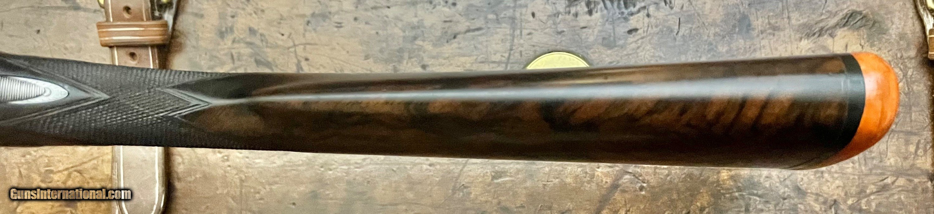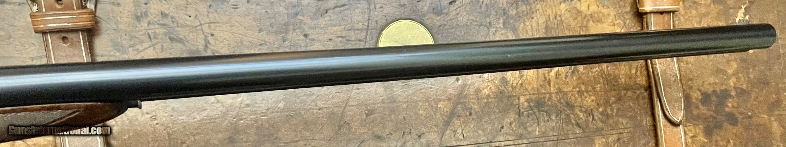 Description: Charles Lancaster 12/20 12GA Baker patent self opening back action sidelock ejector Single non selective trigger that functions perfectly Disc set strikers 28" ejector barrels with game rib and excellent bores Lockup is tight with forend on, with it removed there is very minimal movement. 2 1/2" 1 1/8oz nitro proof Chokes: .004/.015 Cyl/Light mod Bores: .731/.731 proofed at .729/.729, well within original proof specs. Minimum wall thickness R:0.022+ L:0.024+ Well figured straight grip stock with splinter forend, the stock cracked at the head and was professionally repaired 5 years ago. LOP 14 1/4 DAC 1 5/8 DAH 2 1/16 Cast off 3/8" at heel 6lbs 0oz Action has full coverage rose & scroll engraving with Name on the bottom and model on the sides inlaid in gold. Very few of these guns were produced and the quality is outstanding. Very nice condition Best Quality Lancaster shooter grade gun that you can use as is or restock to your dimensions. SOLD Curio/Relic: Yes Shotgun Gauge: 12 Gauge |