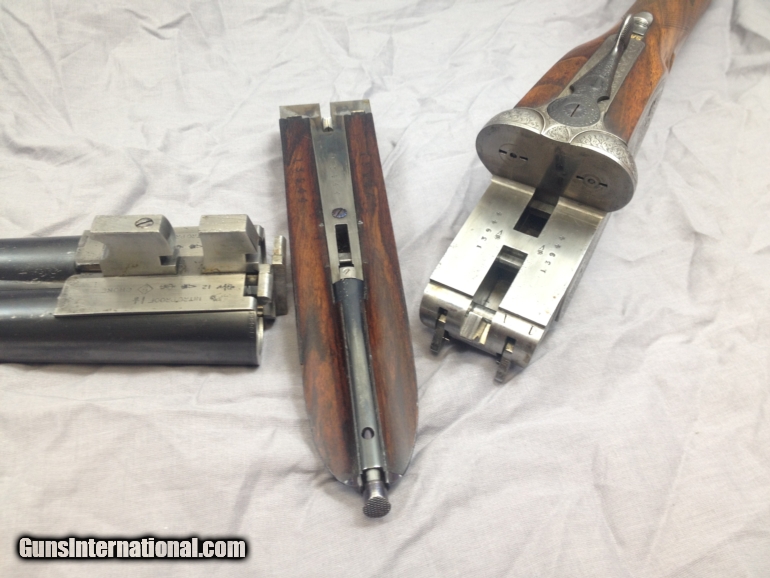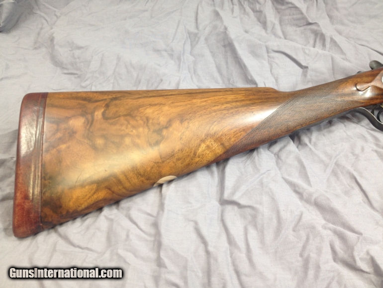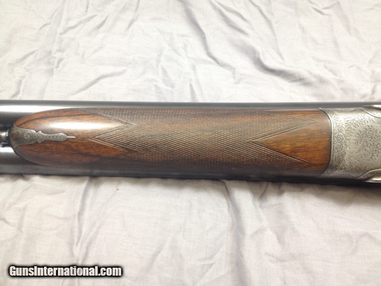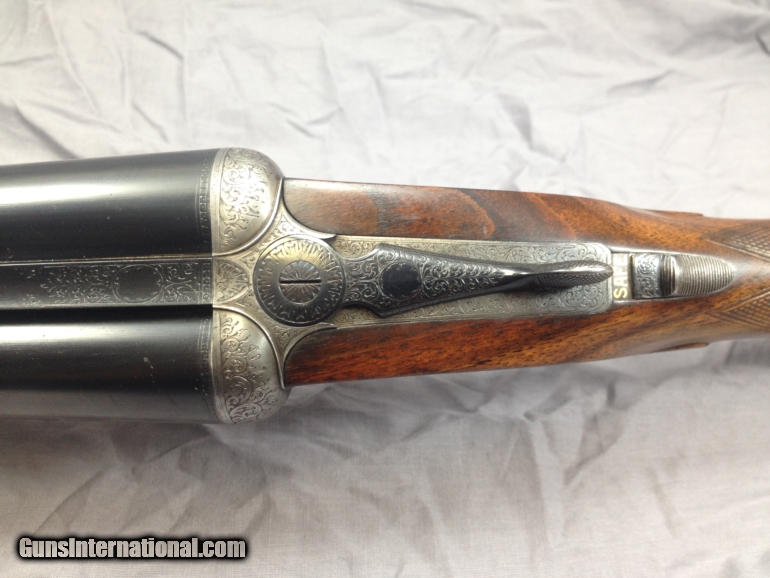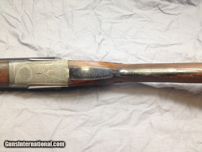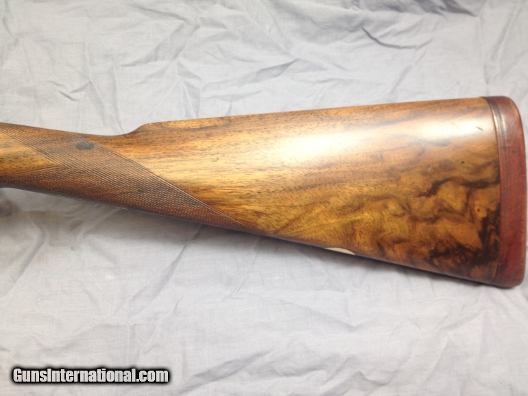 Description: SOLD PENDING FUNDS An excellent gun from an excellent maker. A wonderful example of a fine London ejector sidelock game gun. At 6.15lbs it is a 12 that carrys like a 20! Locks up tight on face. No loose ribs, barrels ring. Bright bores.No cracks in wood. Strong ejectors. Nice leather pad. Fine English scroll engraving. Scatered minor hunting marks on the wood. Made around 1919. Minor marks on barrels but no dents or pits. Chopper lump barrels. If someone goes not buy this one I may have to keep it for myself!! Pack and ship $45 Please call Mark 715-571-3006 SOLD Curio/Relic: Yes Manufacturer: CHARLES LANCASTER Model: SIDELOCK EJECTOR Serial Number: 13944 Bore: L .734 R .733 Chambers: 2 1/2in Ejectors: YES Condition: Excellent Metal Condition: Excellent Wood Condition: Excellent Bore Condition: Excellent Barrels: 28in Gauge Info: 12GA Stock Comb: 1 1/2IN Stock Heel: 2 1/4IN Stock Cast: RIGHT HAND Butt Pad: LEATHER PAD LOP: 14 3/4IN Weight: 6.15LBS Manufacture Date: APROX 1919 Choke Left: IMP (JUG) Choke Right: IMP (JUG) Proof:Nitro: 1 1/8oz Minimum Wall Thickness Left: .022in Minimum Wall Thickness Right: .022in |