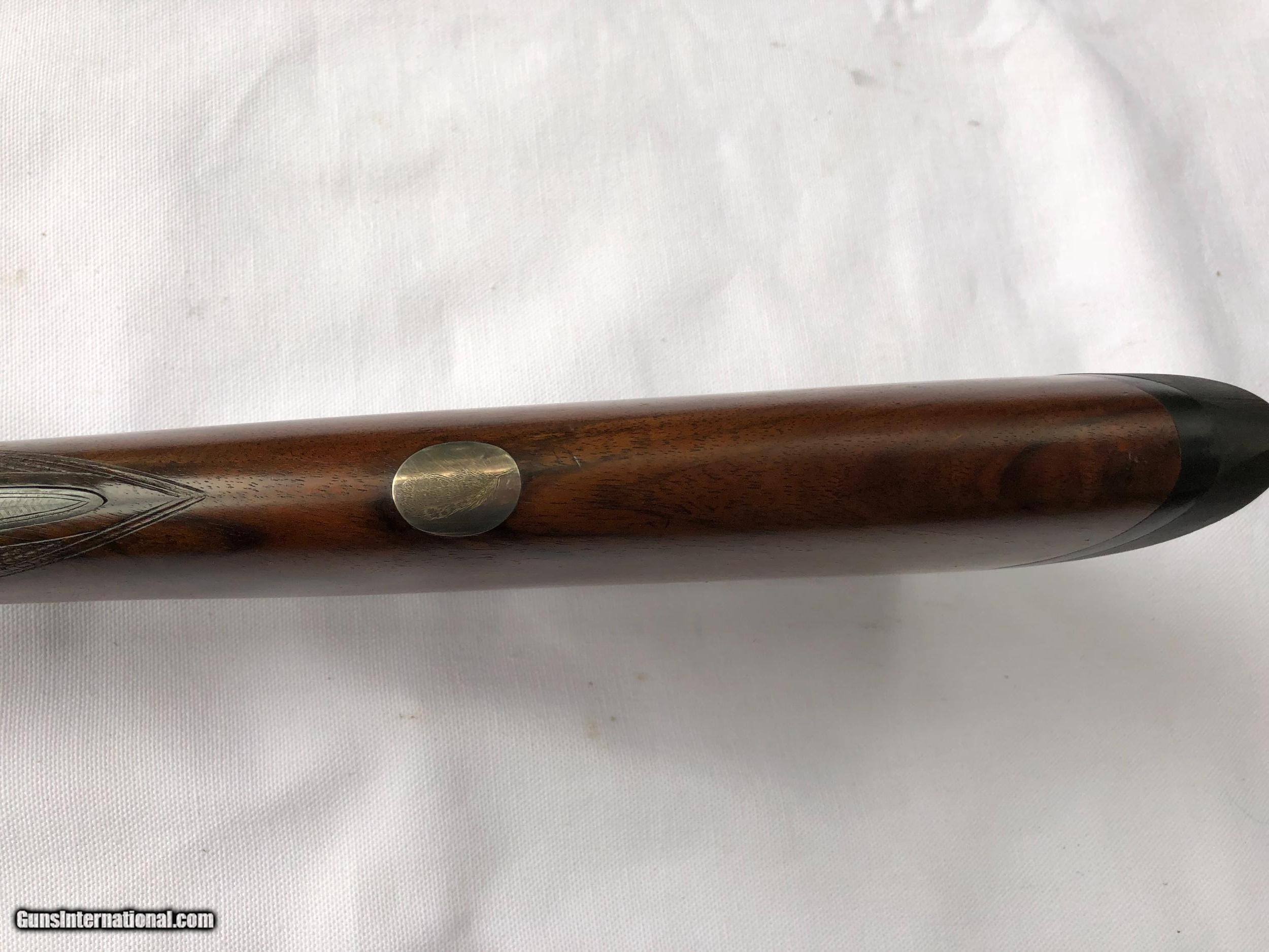 Description: J Lang Shotgun has been completely restored, Barrels refinished, Wood refinished, Case Hardening, Gold Inlays. The Damascus pattern looks great, barrels show very minor pitting, and bores show very minor pitting The barrels were most likely lightly polished, but not honed during the restoration. There are no dents or dings on the barrels and they ring true. The action and case colors are 100% restored condition. The wood is mostly a nice looking straight grain. There are no cracks or splinters missing. I believe the stock to be original to the shotgun, with the checkering recut and shortened slightly to accommodate the installation of a pad. There is a silver oval present on the stock with a bird feather lightly engraved on the oval. The forearm has a horn inlay at tip. The shotgun includes leather covered case in excellent condition and letter from Atkin, Grant & Lang confirming configuration. I have hunted with and fired this shotgun using light RST loads. The shotgun is currently within proof. Weight: 6.55 pounds Barrel Length: 30” Length of Pull: 14 5/8” to front trigger Drop at Comb: 1 3/8” Drop at Heel: 1 7/8” Minimum wall thickness: Left: .026 Right: .027 Bores: Left: .729 Right: .727 Chambers: 2 5/8” Chokes: Left Full, Right Cylinder Manufacture: 1887 We are a licensed FFL. If you are a resident of Missouri we are required to charge sales tax. We offer a seven day inspection period with a no hassle return. This is an old firearm and if there is evidence it has not been handled appropriately, has been packed and shipped incorrectly, or has been otherwise abused, refund will be declined. Buyer pays return shipping and insurance. SOLD Antique: Yes Manufacturer: J Lang Chambers: 2 5/8 Barrels: 30 Barrel Type: Damascus Triggers: Double Gauge Info: 12 LOP: 14 5/8 Weight: 6.55 Manufacture Date: 1887 |