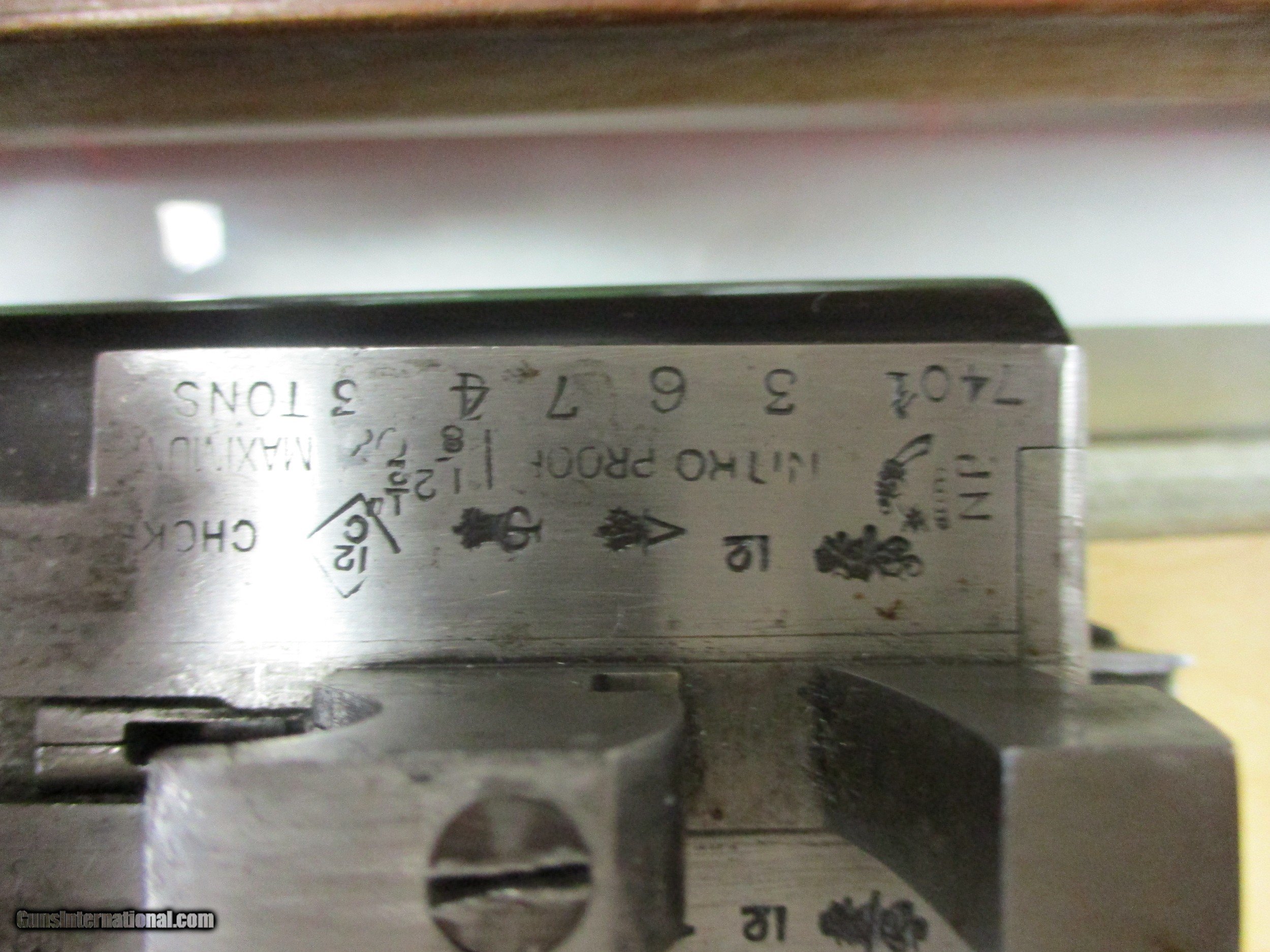 Description: Folks, In this listing we are offering a Joseph Lang Box Lock 12 gauge SXS Shotgun with Ejectors in the Original Case. This shotgun features 28 inch barrels with a 2 1/2 inch chambers choked in Full and Modified and Auto Ejectors. This shotgun features a 14 3/4 Length of Pull and has a total weight of 6 Ilbs 8 ozs. This shotgun has mint bores, tight on face and is mechanically perfect. Please contact us with any questions. We do charge 3% for Credit Cards. No California Sales. SOLD Curio/Relic: Yes Shotgun Gauge: 12 Gauge Manufacturer: Joseph Lang Model: BLE Serial Number: 13633 Barrel Length: 28 inch Chambers: 2.5 inch Bore Condition: Mint Chokes: Full/Modified |