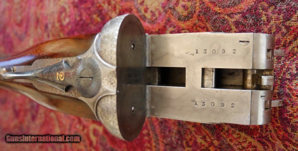 Description: Built in 1898, an exceptional example of the Lang & Hussey "Imperial One Trigger Ejector" 12 bore, side lock shotgun. Lock - Side locks with gold inlaid cocking indicators signed " Lany & Hussey Ltd" with profuse folite and bouquet engraving - Strong, well timed Southgate ejectors - Base plate signed "Imperail One Trigger Ejector" with profuse folite and bouquet engraving - Crisp single trigger - Firm right hand top lever with gold inlaid "2", top tang safety with gold inlaid "Safe" with profuse folite and bouquet engraving Stock - Well figured walnut stock with straight had grip and drisp London flat top chequering - 14 1/4" length of pull including ebonite spacer and Silver's rubber recoil pad - Unsigned rose gold escutcheon - Walnut spinter fore end with crisp London flat top chequering and Anson push rod catch Barrels - 28" blued steel side by side steel barrels with raised game rib signed " Lang & Hussey Ltd 102 New Bond Street London made from Sir Joseph Whitworth Fluid Compressed Steel", gold inlaid "2" - Choked IC & M - Excellent, bright, clean bores with 2 1/2" chambers and Southgate ejectors - London Proof House marks for 1896 -1904 show the barrels were proven for 1 1/8oz loads Condition This gun is offered in excellent, used condition. The gun is tight on the face and functions flawlessly. Complete with a vintage brass cornered leather motoring case [handle missing] and vintage accoutrements. A rare and collectable "Best London Gun" from a renown London maker for sale at great price to US buyer's given the US v Australia exchange rate! This gun is located in Australia. Shipping available at buyer's expense. Reasonable offers considered. SOLD Antique: Yes Manufacturer: Lang & Hussey Model: Imperial One Trigger Serial Number: 13092 Caliber Info: 12 Bore Bore: 12 Chambers: 2 1/2 Ejectors: Southgate Condition: Excellent Metal Condition: Excellent Wood Condition: Excellent Bore Condition: Excellent Barrels: Side x Side Barrel Type: Steel Action: Break Triggers: Single Gauge Info: 12 Stock: Walnut Fore End: Splinter Walnut & Anson Rod Butt Pad: Silver's Rubber LOP: 14 1/4 Rib: Game Finish: Blue Sights: Brass Bead Manufacture Date: 1898 Chokes: Yes Choke Left: M Choke Right: IC Engraving: Bouquet & Foliate Extras: Case Accoutrements Case: Maker's Leather Case Item Location: Australia Proof:Nitro: Nitro Proof 1 1/8oz Proof:Black: London Proof House |