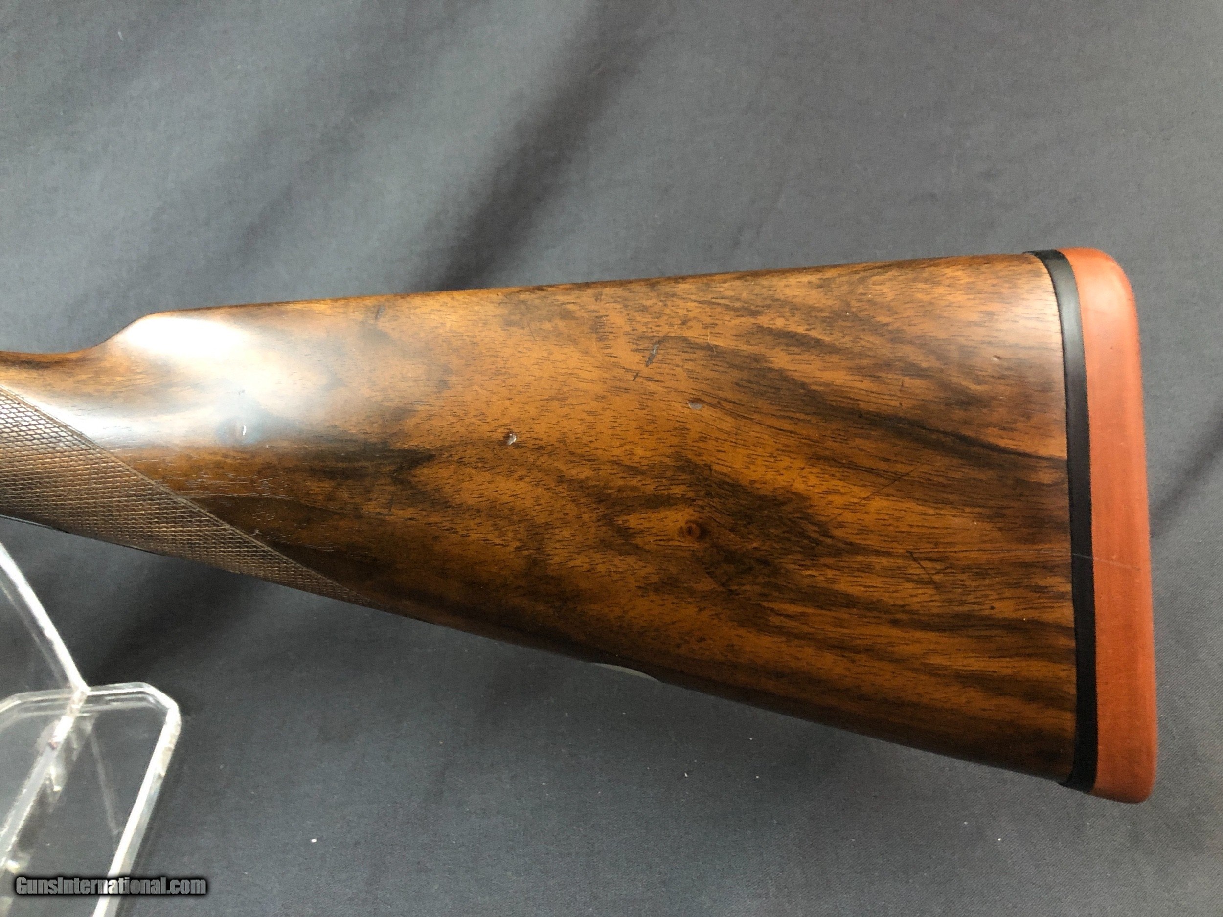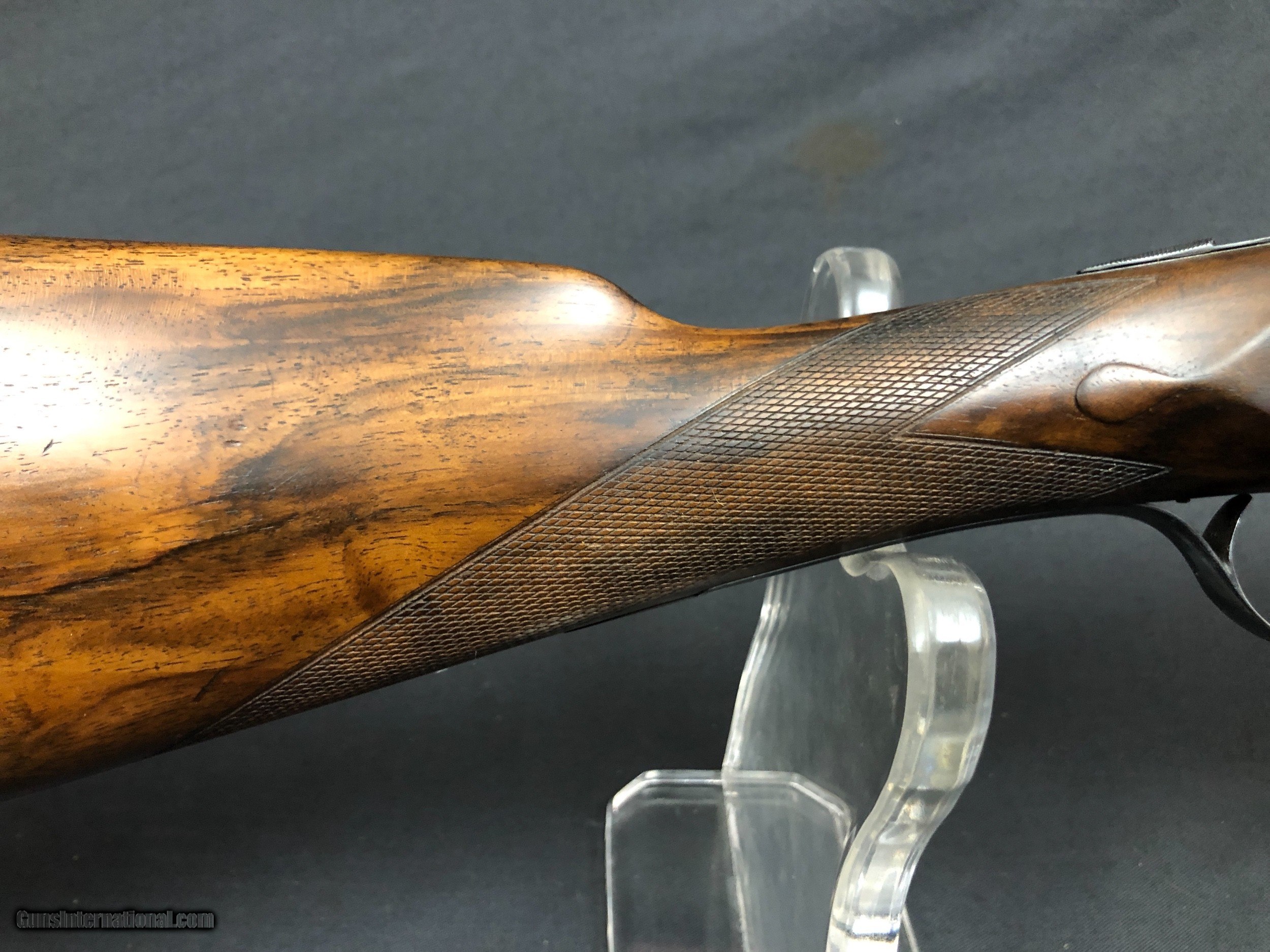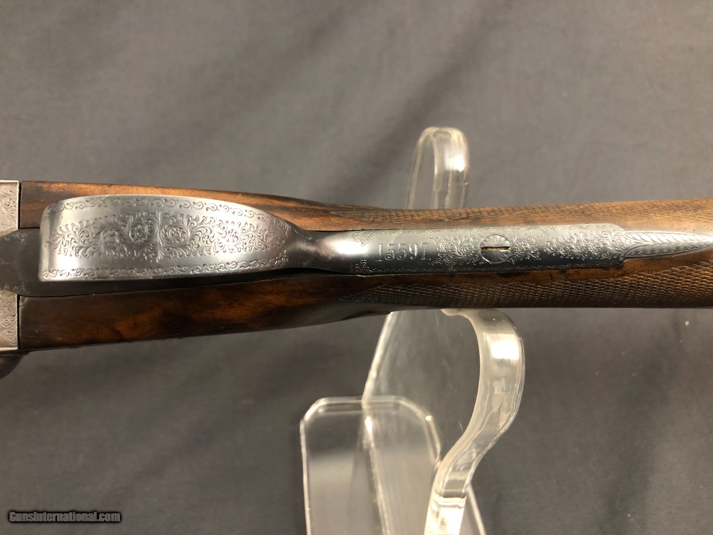 Description: SOLD !!! A very nice London made Sidelock with all the features . Single trigger. Ejectors, Special order Lang Pattent Turn Flap hand detatchable locks. Lovely engraved Rose and Scroll. Nicely figured wood. Trigger and ejectors function correctly. Locks up tight. Bright bores. Barrels ring. Remains in London proof. Please call Mark 715-814-1295 Pack and ship $55 LAYAWAY: Layaway is available with 1/3 down of final total price including shipping/insurance within 7 days . Balance due in 45 days. Layaway Sales and guns modified at time of sale are FINAL with no refunds, no inspections, no returns. Chokes may be opened to your choice at time of sale for $50 per barrel . SOLD Curio/Relic: Yes Shotgun Gauge: 12 Gauge Manufacturer: JOSEPH LANG Model: SLE Barrel Length: 28IN Bore: .735 & .735 Chambers: 2 1/2 IN Ejectors: YES Condition: VERY NICE Bore Condition: BRGHT Triggers: SINGLE Stock Comb: 1 1/2IN Stock Heel: 2 1/8IN Butt Pad: SILVERS LOP: 14 5/16IN Weight: 6LB 14OZ Manufacture Date: 1913 Choke Left: MOD Choke Right: SKEET Proof:Nitro: YES Minimum Wall Thickness Left: .029 Minimum Wall Thickness Right: .026 |