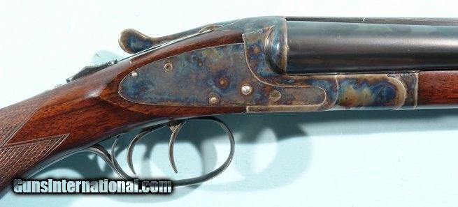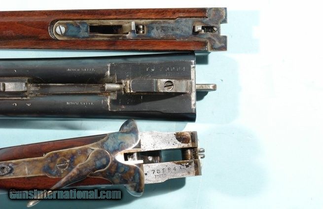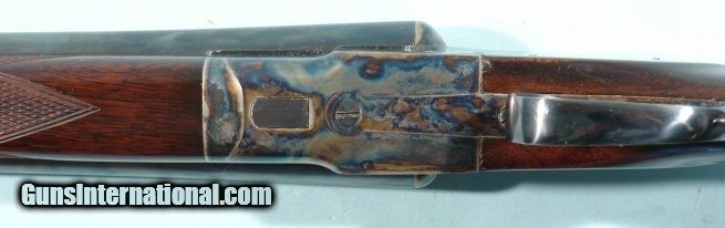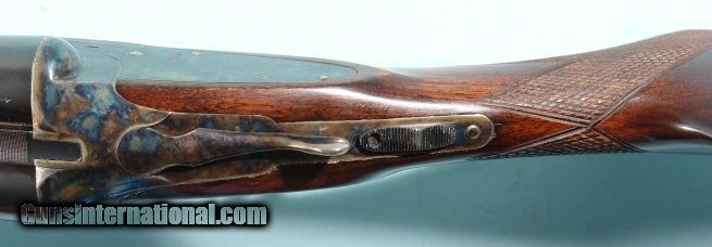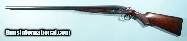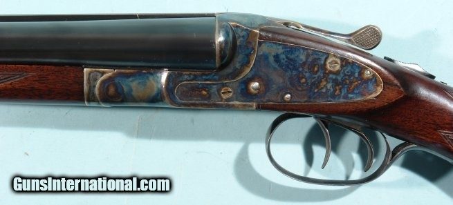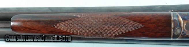 Description: 1924 L.C. SMITH HUNTER ARMS CO. FW FEATHERWEIGHT FIELD GRADE 16GA. SIDE BY SIDE SHOTGUN. 28" barrels have been professionally reblued with barrels markings still fairly crisp and choked full and full with mint bores. Barrels marked "L.C. Smith Field Grade" on right barrel and "Hunter ArmsCo. Inc. M'F'R'S Fulton, N.Y. USA" on top of left and having "Armor Steel" under forend. Raised solid rib also with crisp checkering full length and original small bras bead at muzzle. Forend re-case colored with crips matchign serial number and wood having been professionally refinished as well with recut checkering. Receiver redone with same professional case colors re-applied and crisp markings on watertable with matchign serial number preceded by"FW" (feather weight). Buttstock professionally refinished with same expertly cut checkering and 14 1/2" length of pull over bakelite buttplate. Original pistol grip cap. Excellent screws overall. Lever right of center and very tight lockup. Dbl triggers, extractor and three position safety. Very nice refinish job on gun that probably didn't really need it to begin with. SOLD Curio/Relic: Yes |
