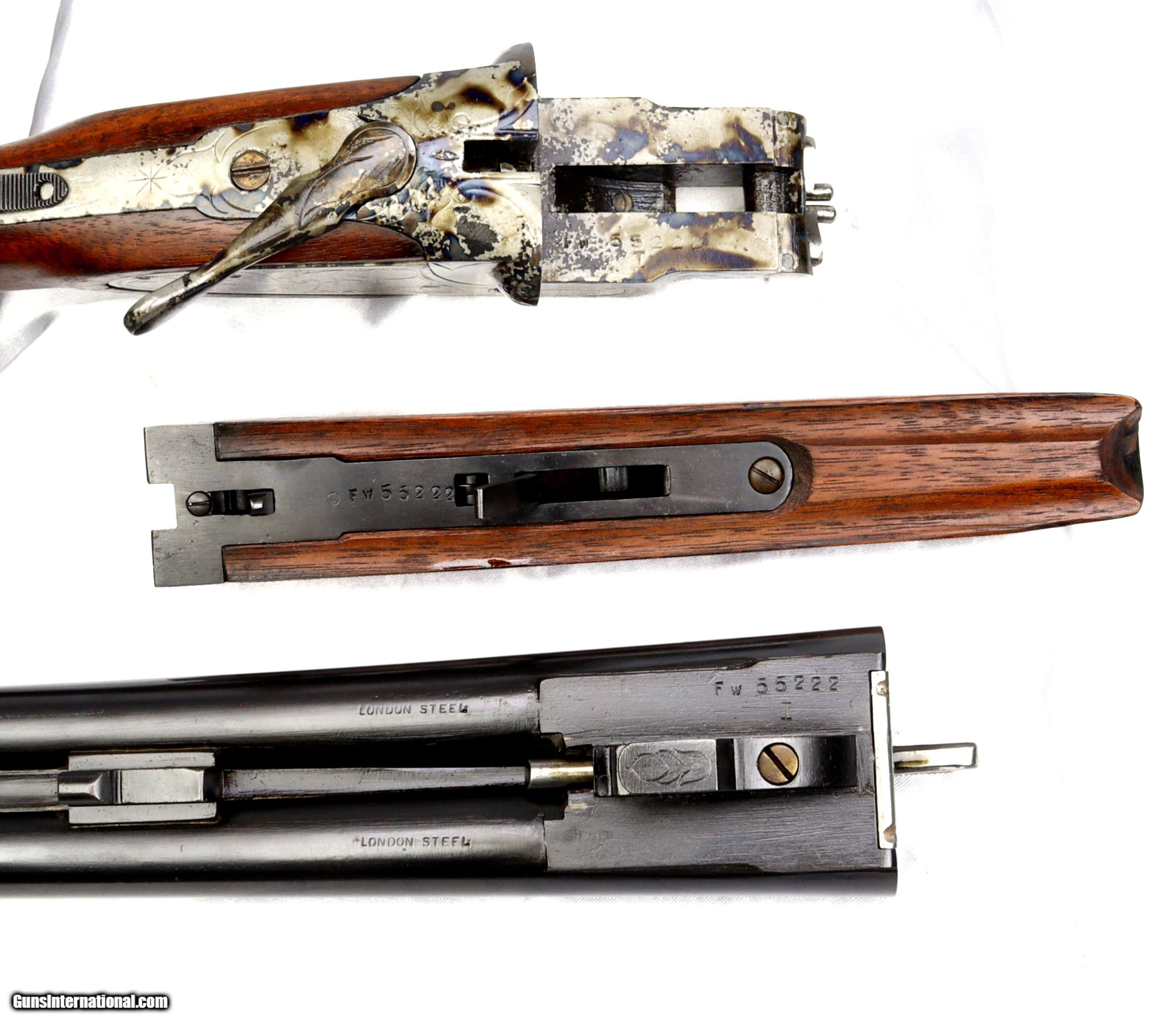 Description: L.C.Smith IDEAL GRADE SxS 20ga, S/N: 55222 Circa 1922-23 BBLs: 28", 2 1/2" chambers, L- Ex-Full, R- Imp Mod WT: 5lbs 5oz LOP: 14", 13" DAC:1 1/2" DAH: 2 1/2" TRIGGERS: L-4lbs 5oz, R-3lbs 4oz Blued with case colored receiver, lightly engraved action, trigger guard, forend TD latch. Bore is BRIGHT/MIRROR. SHIPS INSURED TO THE LOWER 48 FOR $50.00 RESTORATION by SHOOTERSEXCHANGEdotCOM SOLD Shotgun Gauge: 20 Gauge Manufacturer: LC Smith / Hunter Arms Model: IDEAL GRADE Serial Number: 55222 Barrel Length: 28 Chambers: 2 1/2 Condition: EXCELLENT Metal Condition: Refinished Wood Condition: Refinished Bore Condition: Excellent Stock Comb: 1 1/2" Stock Heel: 2 1/2 Butt Pad: RED RUBBER LOP: 14", 13 Rib: Solid Finish: Blue / Case Colored Weight: 5lbs 5oz Choke Left: Extra Full Choke Right: Imp Mod Engraving: yes |