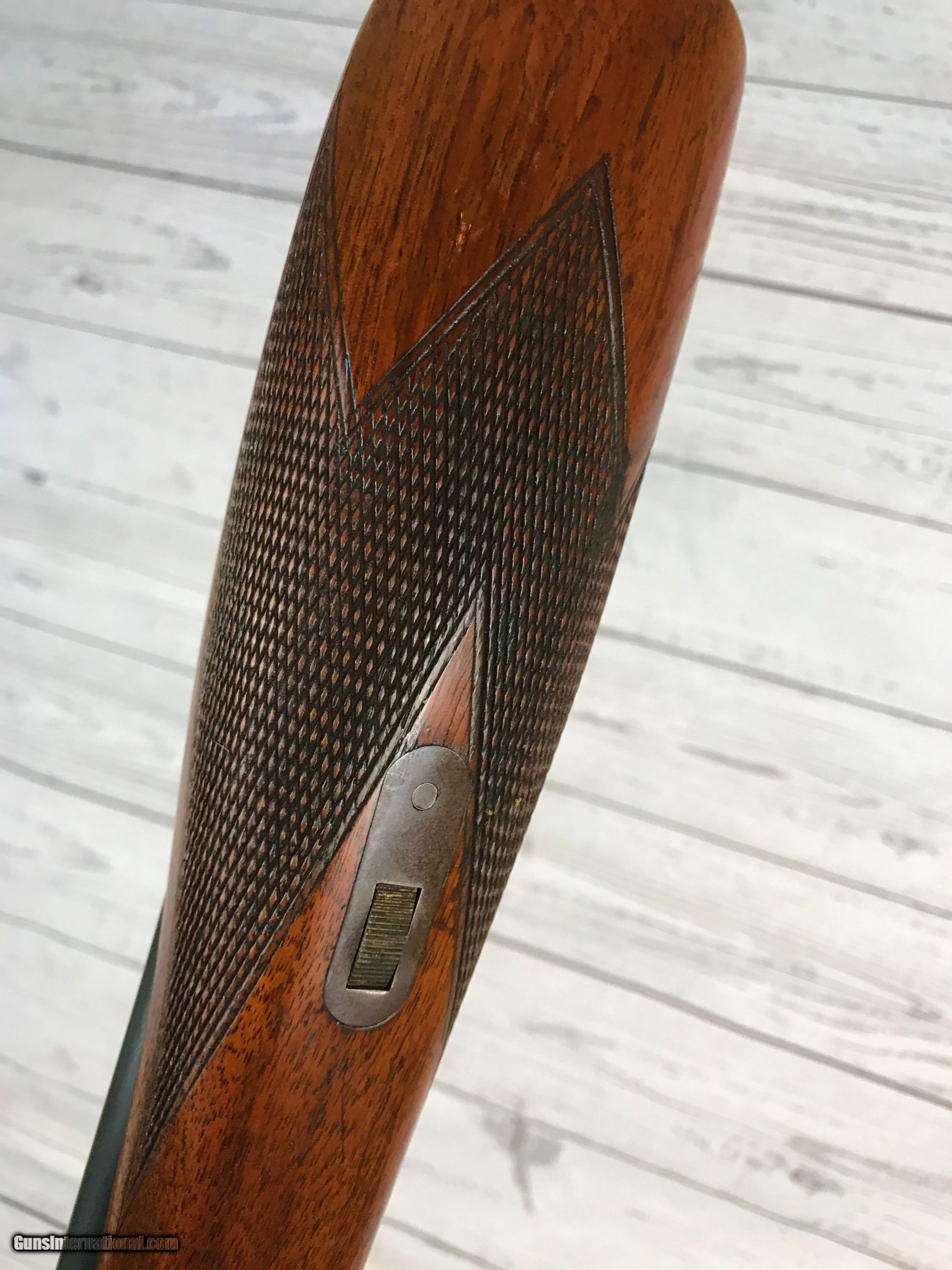 Description: BEAUTIFUL LC SMITH SKEET SPECIAL 20GA WITH FACTORY 27" BARRELS - INCREDIBLE RARE CONDITION -- STRAIGHT STOCK WITH CHECKERED BUTT -- LONG LOP 14 1/2 " TO A REAR POSITION HUNTER 1 TRIGGER -- FACTORY SKEET BEAVERTAIL FOREND -- DOUBLE BEADS -- 90% ORIGINAL COLOR AND BLUE -- ABSOLUTELY GUARANTEED ORIGINAL WITH FACTORY LETTER CONFIRMING 1 OF 3 BUILT IN THIS BARREL LENGTH -- NONE FINER AND SOO RARE -- PERFECT BALANCE AND DIMENSIONS AND SPECIAL CHOKED IC//MOD -- OWN THE BEST! 14 1/2 LOP 1 1/2 X 2 1/4 CHECKERED BUTT 6LBS 13OZ SOLD Manufacturer: LC Smith Bore: 20 Chambers: 2 3/4 Ejectors: yes Barrels: 27 Triggers: single Stock Comb: 1 1//2 Stock Heel: 2 1/4 LOP: 14 1/2 Rib: solid Weight: 6lb 13 oz Sights: 2 Choke Left: MOD Choke Right: IC |