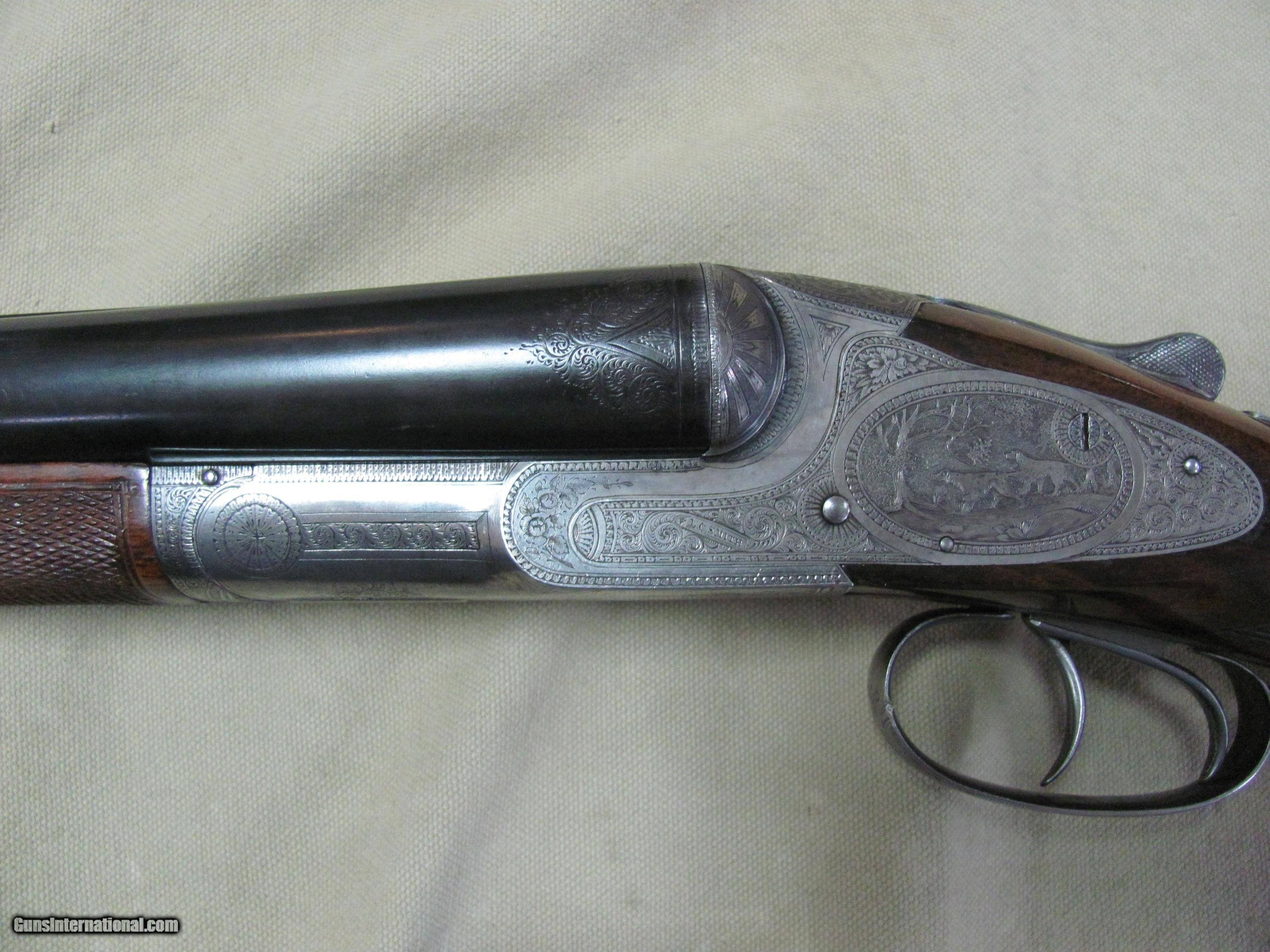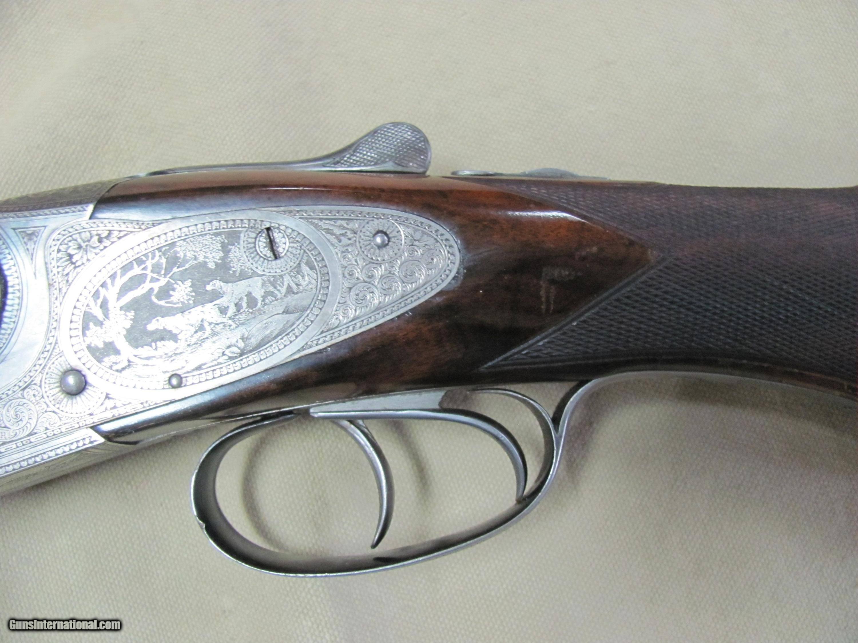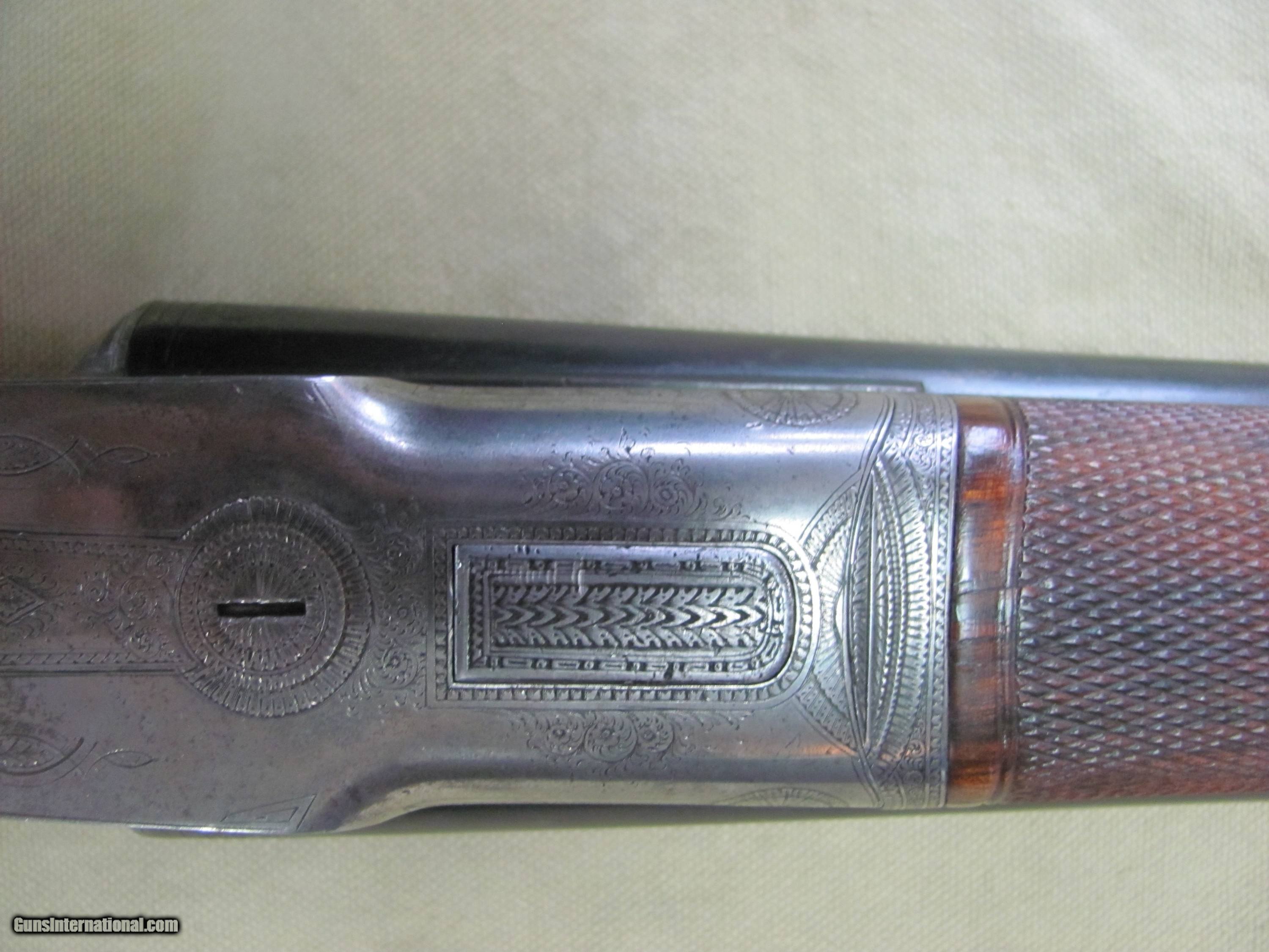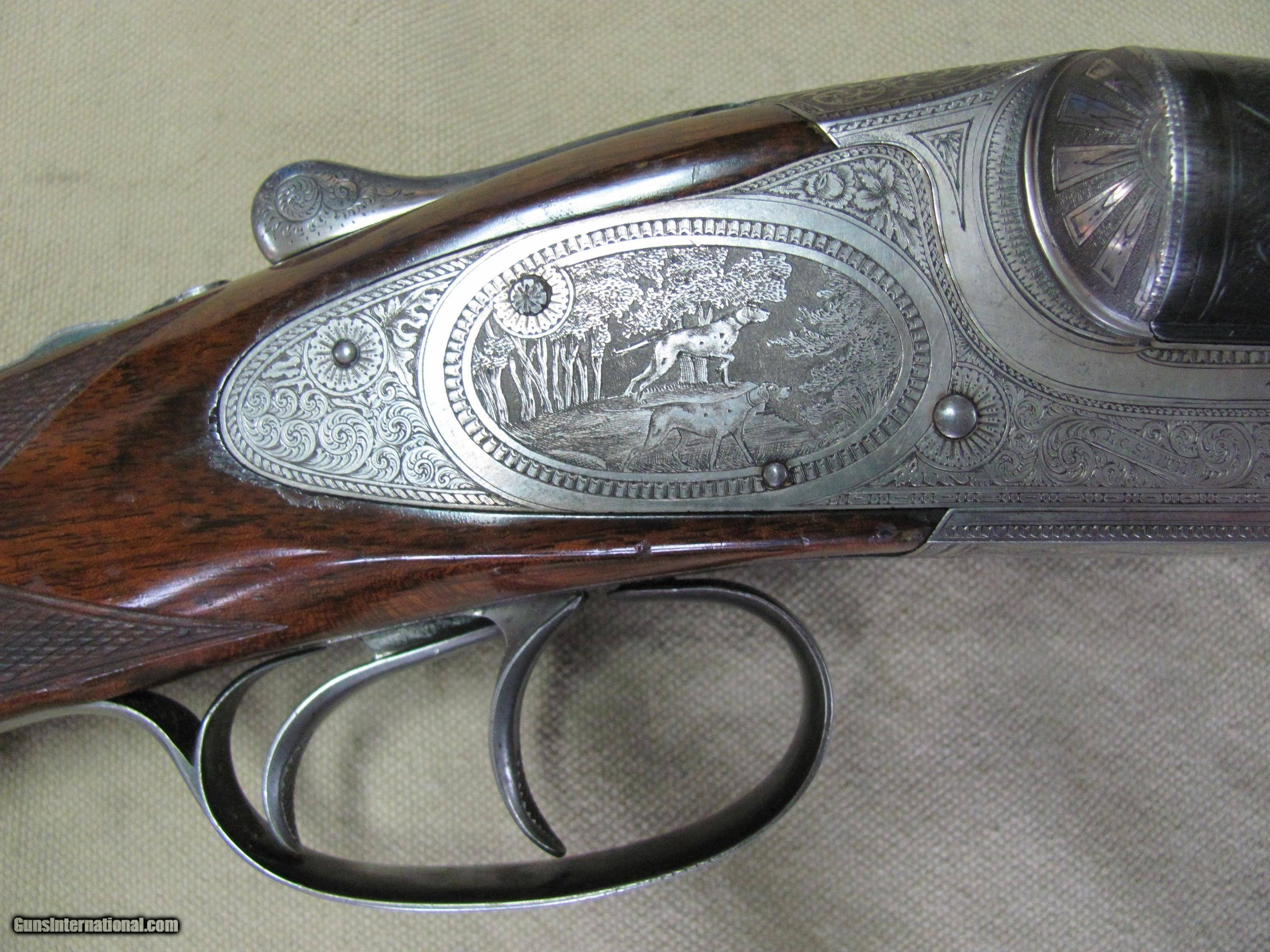 Description: THIS IS A ONCE IN A LIFE TIME FIND, A CODY FIREARMS MUSEUM LETTERED, L.C. SMITH “MADE TO ORDER” BY HUNTER ARMS CO GRADE 5E 12ga SXS SHOTGUN. FINISHED ON NOV, 15TH 1897 THIS SHOTGUN OPENS AND CLOSES LIKE A VERY FINE PIECE, EXQUISITELY MADE. WHEN CLOSED THE TANG LANDS IN CENTER POSITION THIS BEAUTIFULLY MADE SHOTGUN WAS MADE TO ORDER FOR “C.H. VINEYARD” IN ST JOSEPH MISSOURI AND ON NOV, 17th 1897 SHIPPED TO AKHURST EBERLY ARMS COMPANY, ST JOSEPH MISSOURI. SHE WILL CHAMBER 2-3/4” 12GA ROUNDS THE BLUE FINISH WOULD RATE ABOUT 86% THE HIGHLY ENGRAVED SILVER FINISH HAS A LOT OF PATINA THE WOOD STOCK AND FOREND HAVE BREATH TAKING CHARACTER AND YEARS OF WEAR THE BORES OF THE CROWN STEEL 30” EXTRA FULL & FULL FIXED CHOKED BARRELS ARE SOME WHAT BRIGHT & SHINY BUT HAVE SOME VERY MILD PITTING THE LENGTH AS SHOWN IN THESE MANY CLOSE UP PICTURES WITH NOTHING ELSE SOMETIMES A ONLY ALLOWS 25 PICTURES. WE HAVE A LOT MORE, IF YOU WANT MORE PLEASE ASK. I PREFER NOT TO SHIP THIS SHOTGUN, ARRANGEMENTS WILL HAVE TO BE MADE FOR PICK UP OR PERSONAL DELIVERY AFTER PAYMENT IS RECEIVED NO SHIPMENTS OUTSIDE THE USA. MISSOURI RESIDENTS DO PAY A 8.575% SALES TAX. NO EXTRA CHARGE FOR CREDIT CARDS. BRANDON'S GUN TRADING CO LLC 321 EAST 20TH ST JOPLIN MO. 64804 (417)-623-8787 FAX (417)-623-2326 9-5 TUESDAY-SATURDAY CENTRAL TIME WE ARE ALSO CLOSED THE 1'ST SATURDAY OF EVERY MONTH AND HOLIDAYS. WE DO OFFER A STORE LAY-A-WAY AND THE POLICY GOES LIKE THIS; YOU MUST MAKE A NOTATION WITH ANY MAIL TO US THAT YOU ARE USING THE LAY-A-WAY OPTION. 1/3RD DOWN WITH IN 10 DAYS OF THE CLOSE. ITEM MUST BE PAID OFF WITH IN 3 MONTHS OF THE CLOSE A CREDIT CARD "CAN NOT" BE USED AS A DOWN PAYMENT AND FUTURE PAYMENTS MUST BE CASHIERS CHECK OR MONEY ORDER OR CASH. IF YOU DO NOT PAY OFF THE LAY-A-WAY WITH IN 3 MONTHS, THE ITEM WILL BE RE-LISTED AND YOU WILL FORFEIT ANY MONEY PUT DOWN. NO EXCEPTIONS! INVENTORY REFERENCE: FINE GUN SAFE #3 SOLD Antique: Yes Shotgun Gauge: 12 Gauge Manufacturer: Hunter Arms Co Model: GRADE 5E |