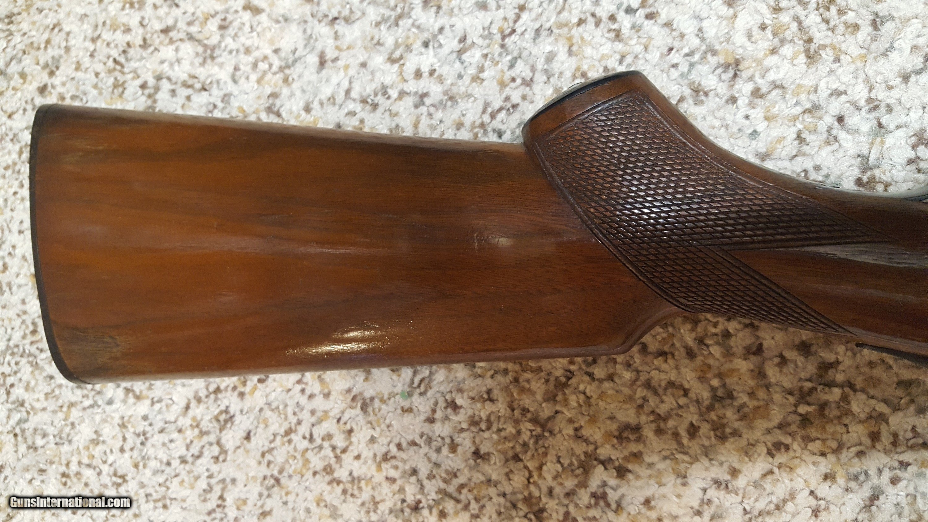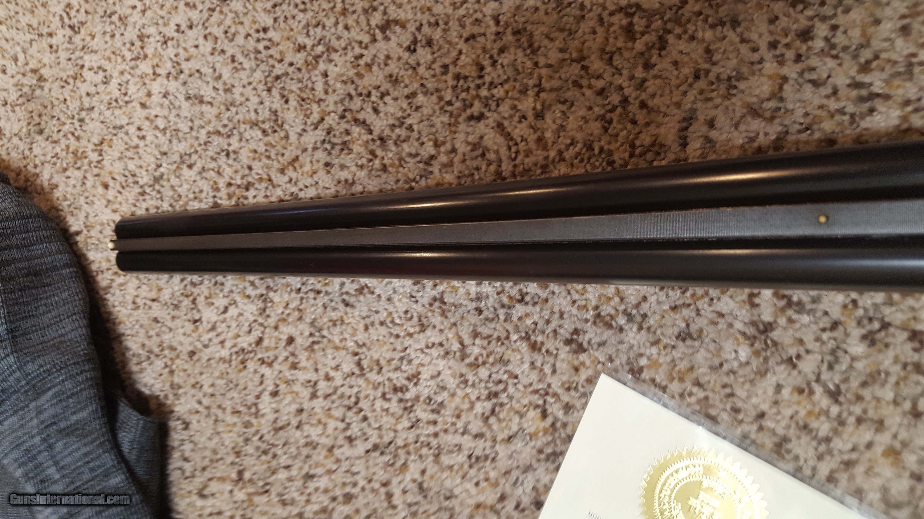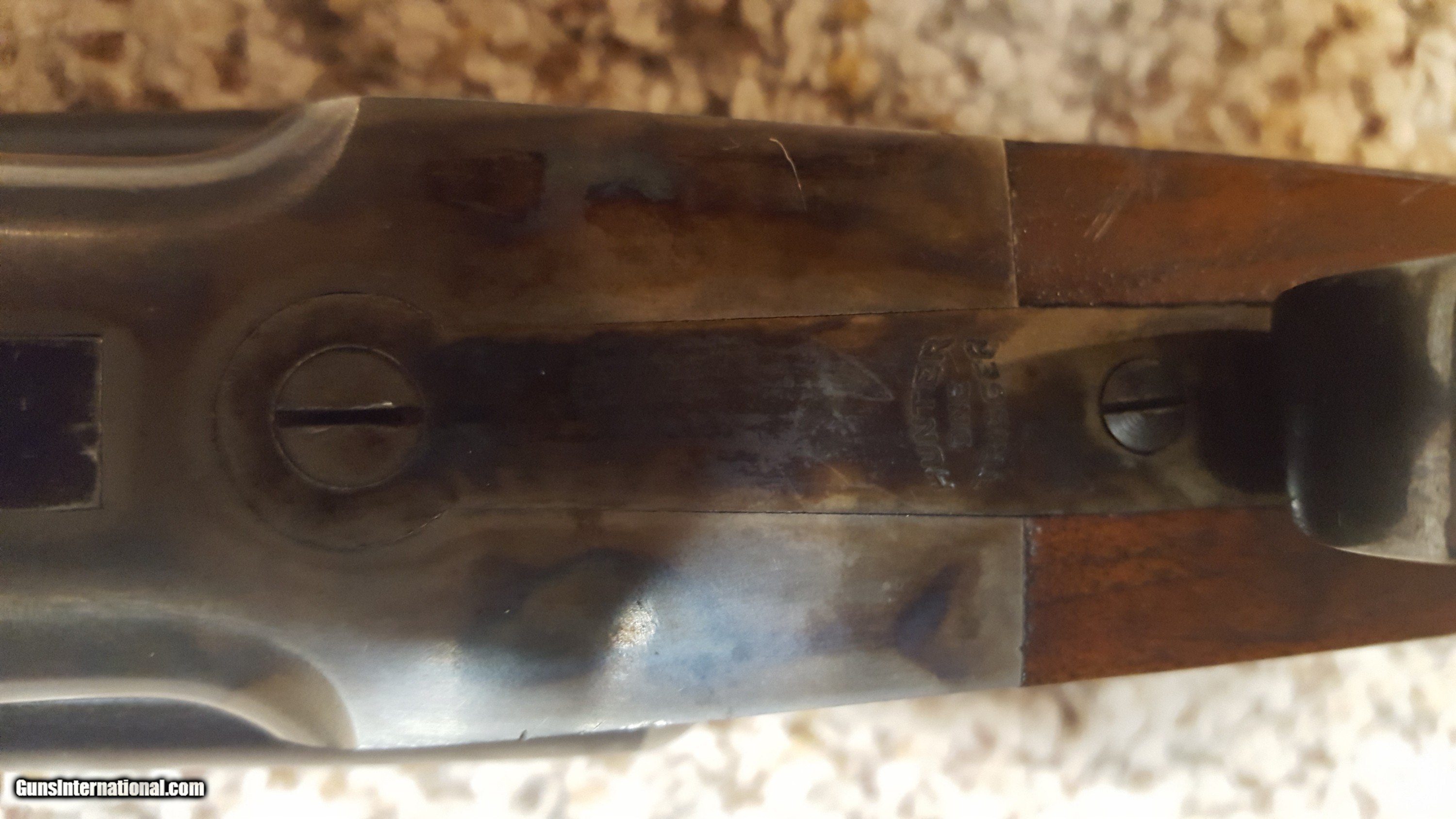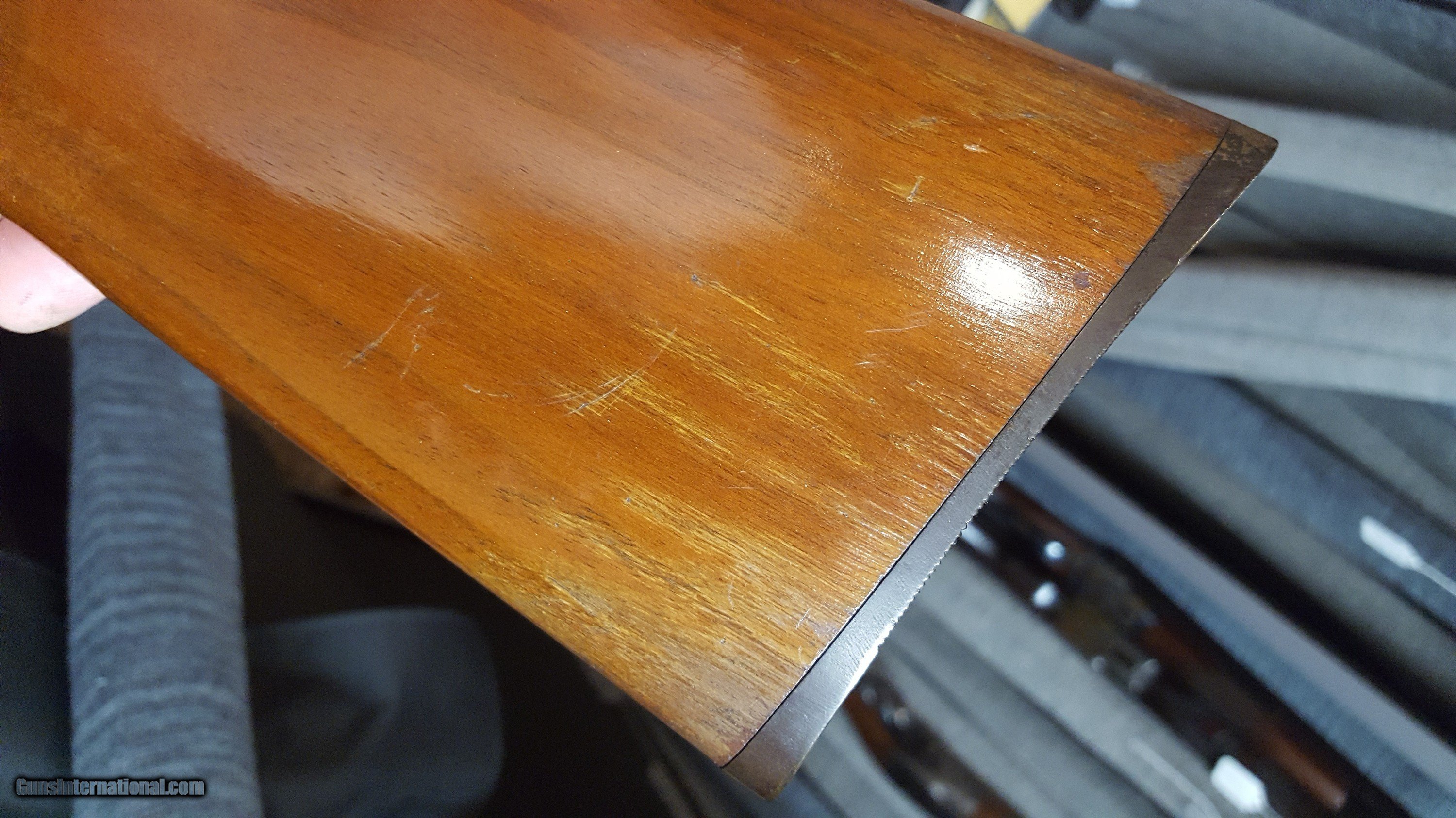 Description: This is a great gun, a rare single non-selective trigger 16 field, one of only 115! Wonderful bright color I think especially nice. Pics tell the tale. This gun has no cracks but does have a little crackling in the varnish on buttstock which I tried to show in pics. Still has polish marks on breech face which always indicates a high condition gun. 28 inch tubes choked IC/IM. 1 1/2 2 1/4 drops with 14 pull. First year for the plane rib wich was a five dollar option the buyer paid. Made in 1939. Included is a factory letter confirming entire gun. Small spot of bluing loss near muzzle, possibly from blood. Great gun in a great gauge! Call 330-466-1092 with questions. thanks for your interest. SOLD Curio/Relic: Yes Shotgun Gauge: 16 Gauge Serial Number: 176209 Barrel Length: 28 Ejectors: no Bore Condition: mint Barrels: 28 Triggers: single NS Butt Pad: plate LOP: 14 Choke Left: IM Choke Right: IC |