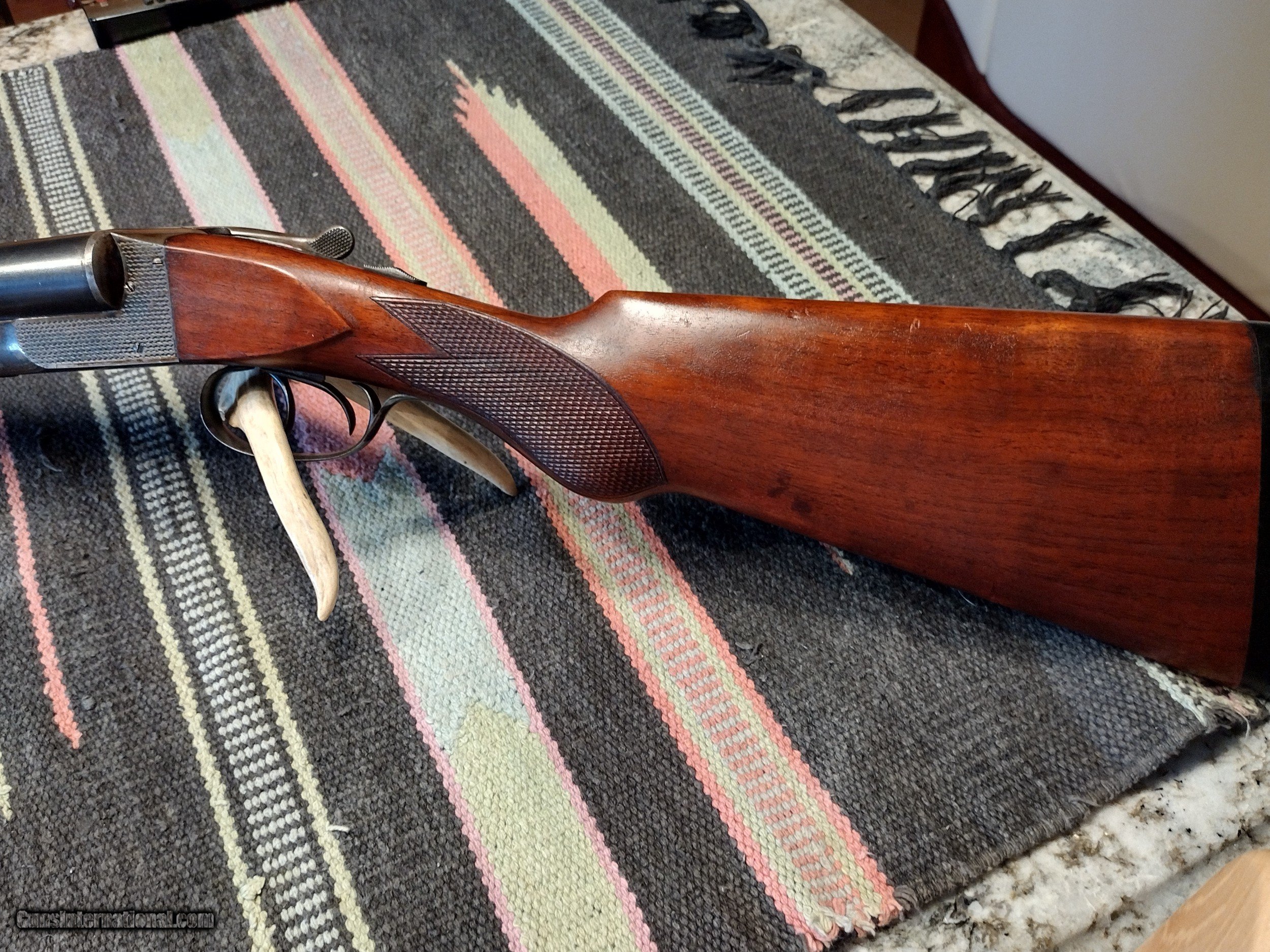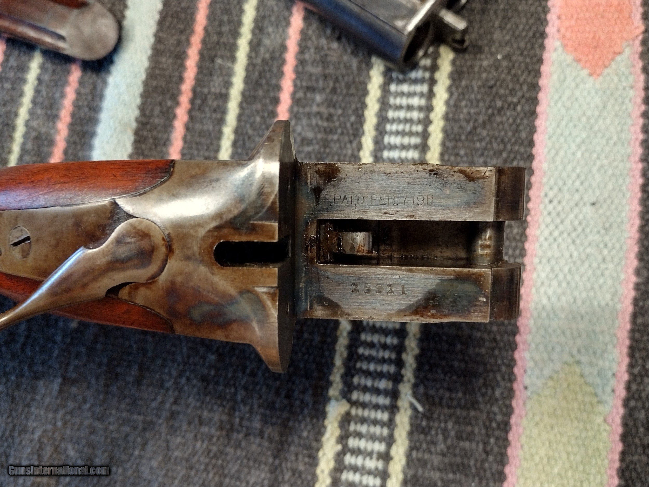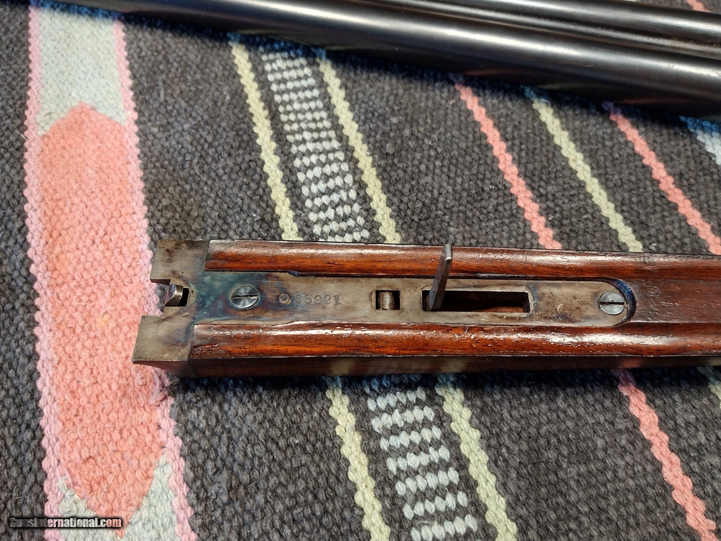 Description: This High condition Fulton was one of the first marked "The Fulton" with the New Name in the first months of 1915. I rate the condition at NRA Excellent for this 108 yr old box lock built and sold at a price everyone could afford. Just a honest original condition gun built by the same craftsman that built the L C Smith Brand . What a wonderful gun to be used during Vintage SxS Events or Sporting Clay or for hunting of coarse . SOLD Curio/Relic: Yes Shotgun Gauge: 12 Gauge Manufacturer: Hunter Arms Model: "The Fulton Serial Number: 25xxx Barrel Length: 30 Bore: Both .735 thousands Chambers: Original Ejectors: NO Condition: NRA Excellent Metal Condition: NRA Excellent Wood Condition: NRA Excellent Bore Condition: Excellent Barrel Type: SxS Action: Box Lock Triggers: Double Stock Dimensions: 1 1/2"x 2 3/4"x 14 1/8 Fore End: Splinter Butt Pad: Dogs Head Butt Plate LOP: 14 1/8 Rib: Flat Matted Finish: Original Weight: 7lbs 12oz Sights: Single Manufacture Date: 1915 Choke Left: Imp Mod Choke Right: Imp Mod |