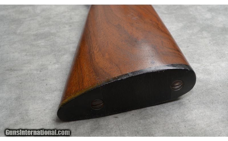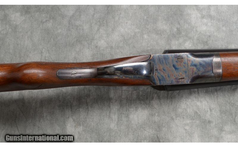 Description: This side by side features good blue and receiver color. Engravings are sharp. Closes tight to the face. There are some tiny pockets of rust on the barrel but nothing real deep. The barrel has one spot with a disturbance on the outside that would imply a dent that has been repaired, but it doesn't show on the inside. The bore itself is shiny and bright. The walnut stock has some wear, but not a lot. It shows a bit of grain but not fancy. 12 Gauge SOLD Chambers: Measures 2-3/4 inch. Metal Condition: Very good to excellent. Bluing a little bit faded and worn from the high points. Good case color on the receiver. Wood Condition: Good to very good. Metal is proud so it may have been refinished at some point. Barrels: 30 inch. Triggers: Single trigger. Stock Dimensions: 14 inch LOP. Fore End: Matching splinter. Butt Pad: Black 'ebony-stained' plate. Sights: Matte solid rib with gold beads. Chokes: Fixed Modified and Full. Item Location: Rogers |