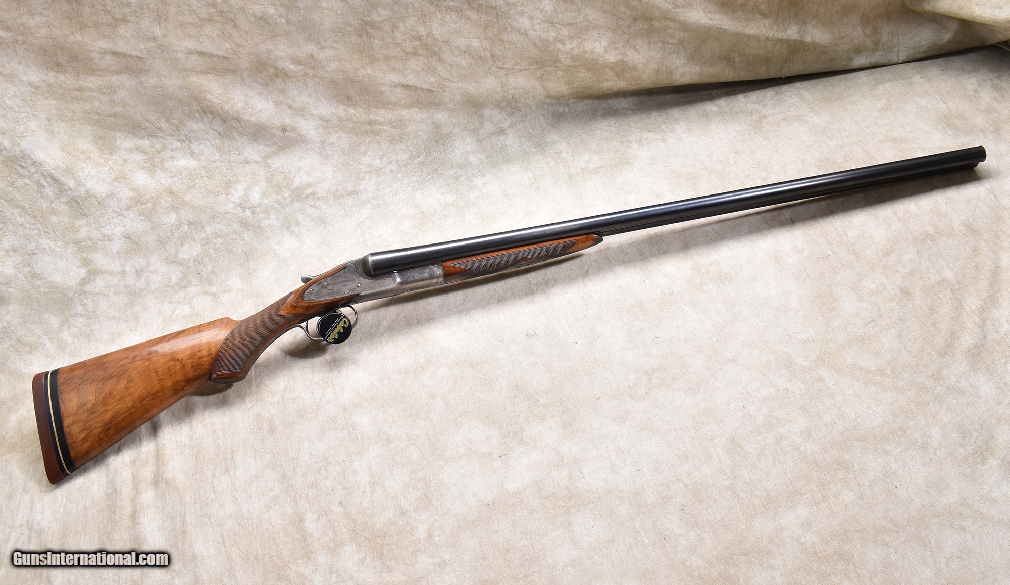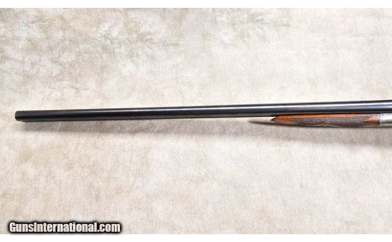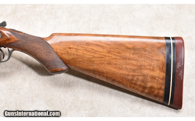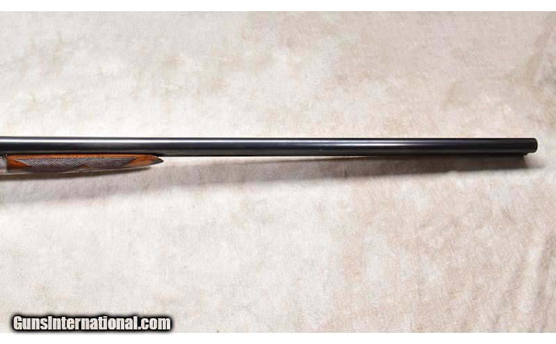 Description: This LC Smith features game scenes engraved on the side plates. It has ejectors, fixed chokes, and nice Prince of Wales walnut stock with a bit of feather. It known to be a 3E grade gun. 12 Gauge Chambers: "2 rounds, 12 gauge, 2-3/4 inch Metal Condition: "Good. There are a few rust pits on the barrel, and the receiver is trending toward patina. The blue on the barrel is quite good. Wood Condition: "Good. There are a large number of fine scratches from handling, nothing is severe. The checkering is actually quite sharp. Bore Condition: Shiny and bright. Barrels: 30 inches Triggers: Non-selective single trigger. Stock Dimensions: LOP: 13-3/4 inches Fore End: Well-matched walnut splinter. Butt Pad: Soft rubber "NOSHOC" RUBBER PAD Weight: 7 lb - 11 oz Sights: Matte solid rid with gold bead. Chokes: Fixed Full and Full Item Location: Rogers Price: $2,649.99 Contact Seller |