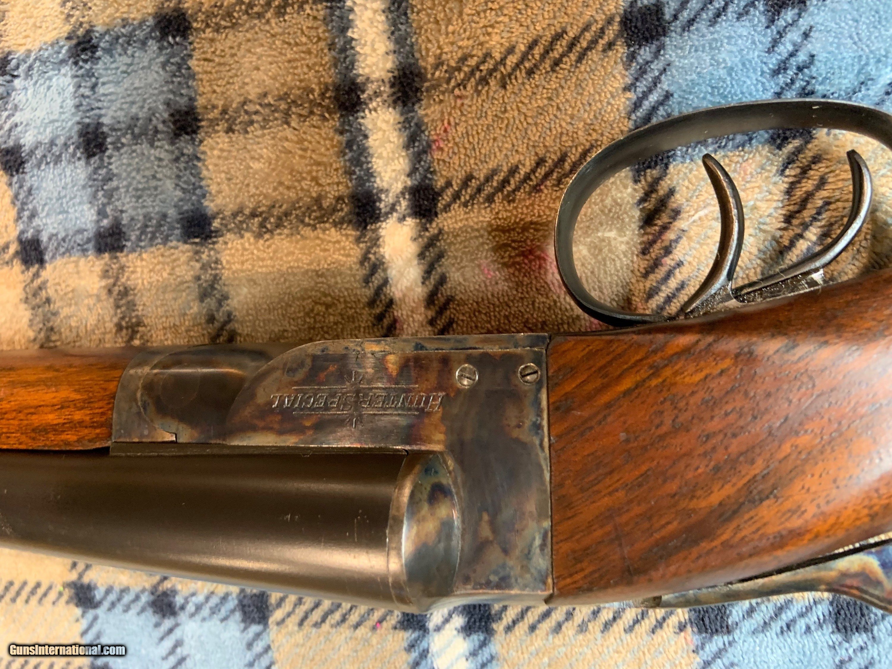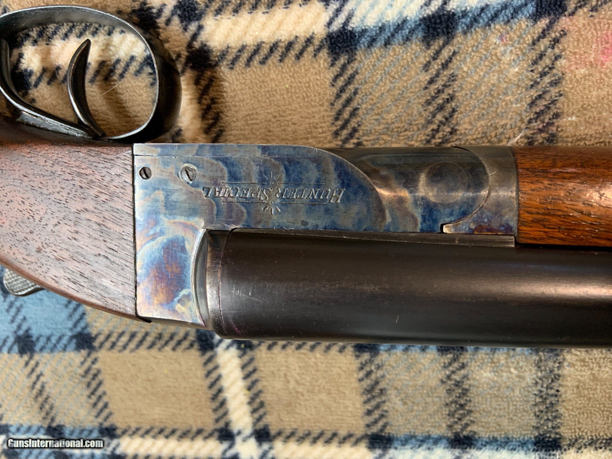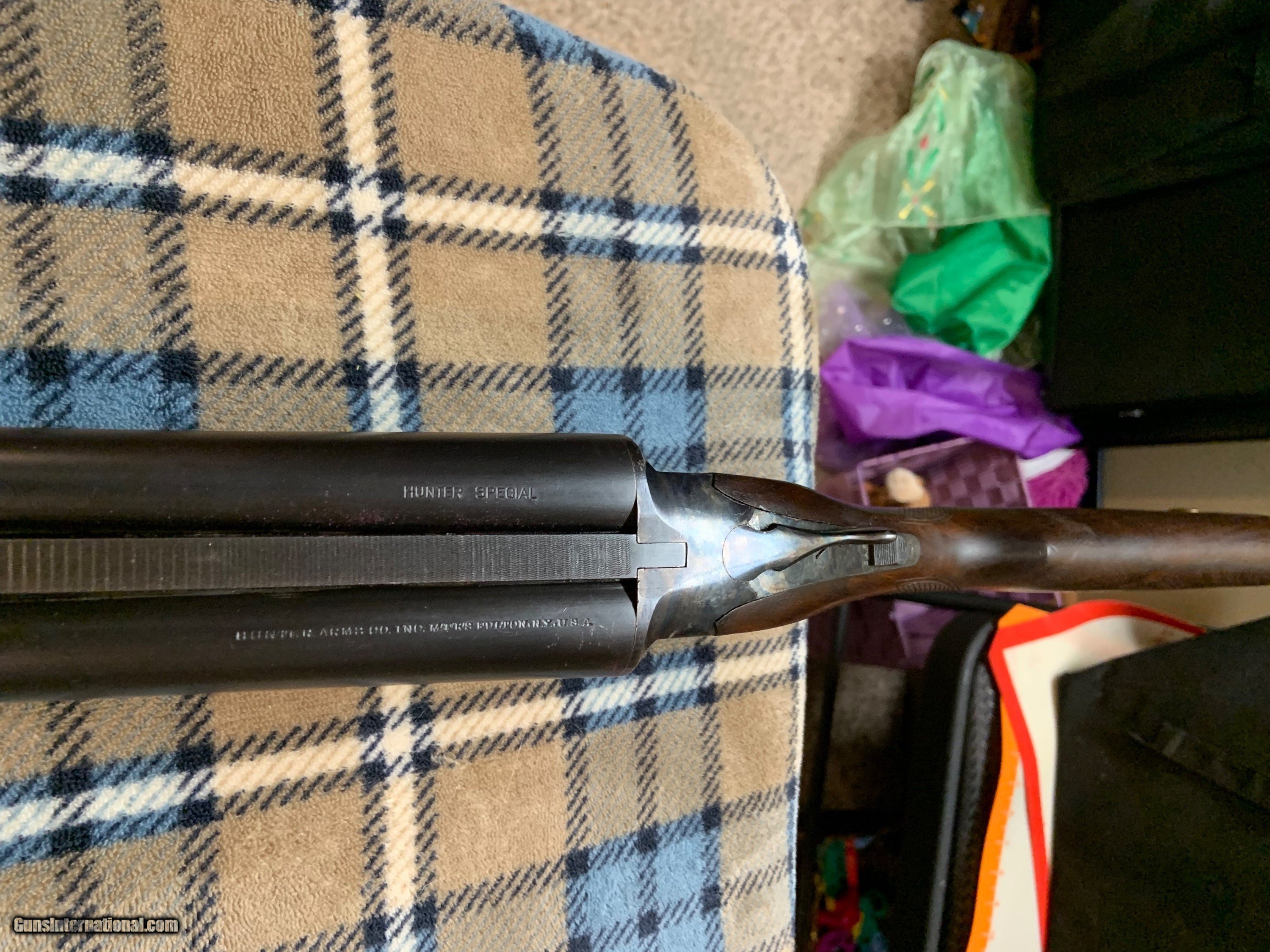 Description: What a find, a boxlock made by the same company who were turning out the LC Smiths. These were less expensive but still quality guns. To find these guns in this condition is rare because most were used extensively. this one looks unfired by the standing breech showing no sign of shell marks. The Hunter Specials were unique in that they built in the rotary locking bolt system as in the LC Smith models. This one has a small compass attached to the stock. This is the best one I have ever seen. Thanks for your interest. questions call 330-466-1092. Shipping is 50.00 insured to the lower 48. SOLD Curio/Relic: Yes Shotgun Gauge: 12 Gauge Manufacturer: Hunter Arms Model: Hunter Special Serial Number: 160468 Chambers: 2 3/4 Condition: near mint Bore Condition: shiny Triggers: double Stock Comb: 1 1/2 Stock Heel: 2 1/2 Butt Pad: plate LOP: 14 1/8 Sights: single bead Manufacture Date: late 30s Choke Left: mod Choke Right: ic |