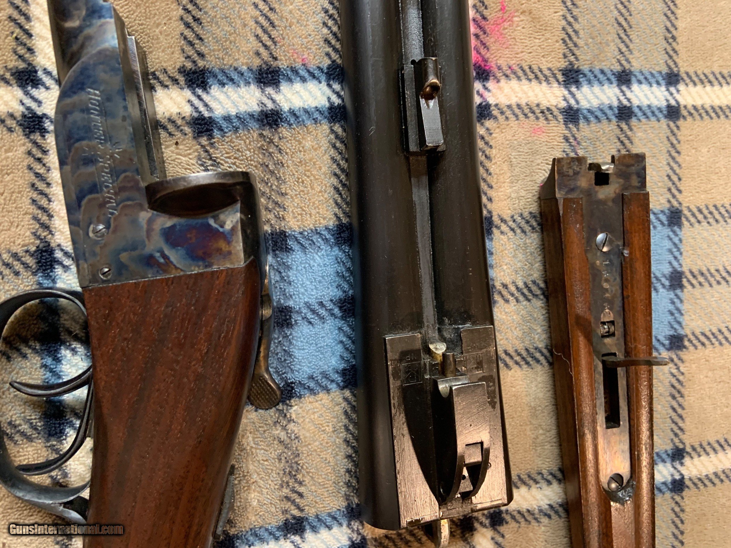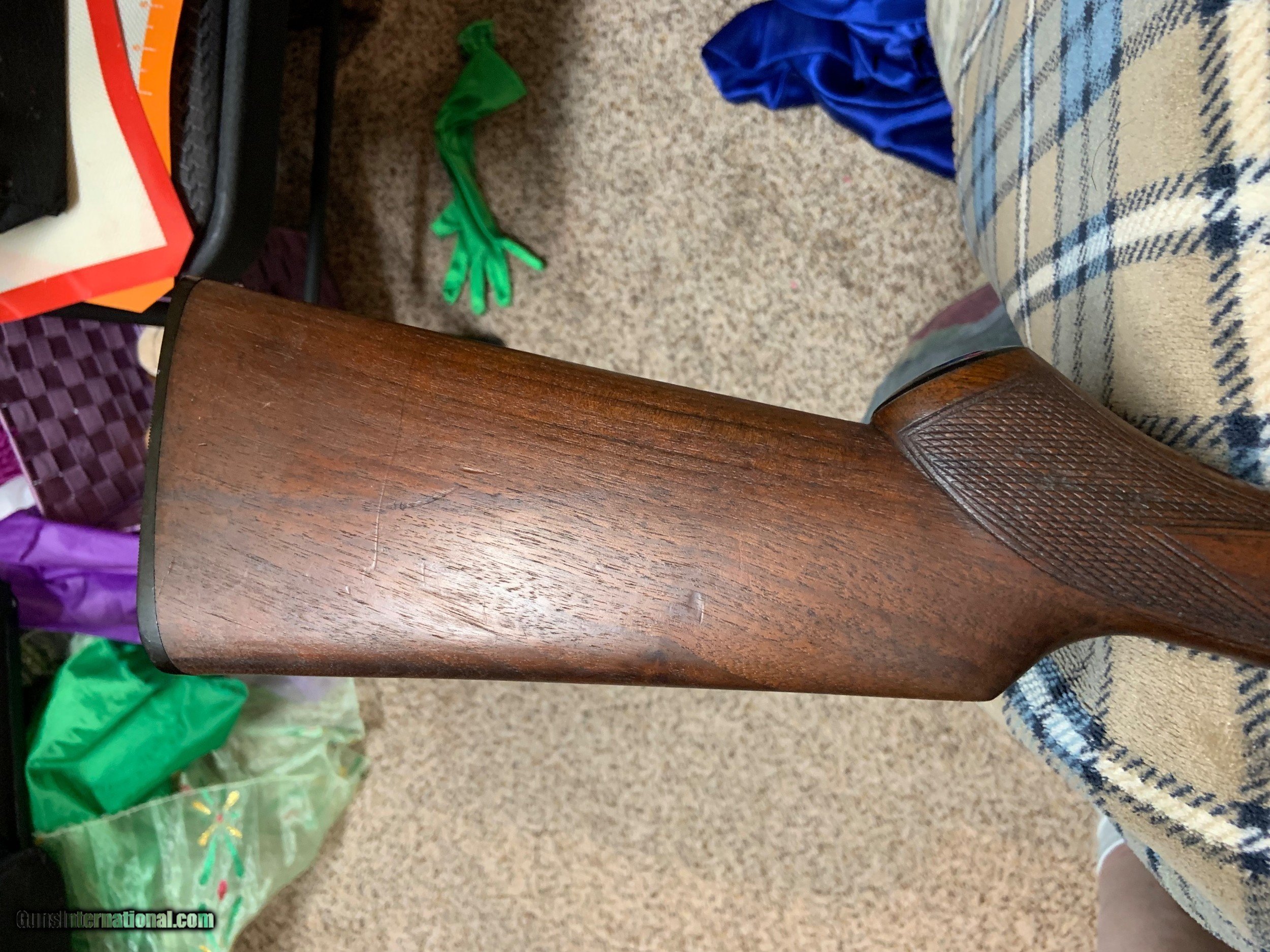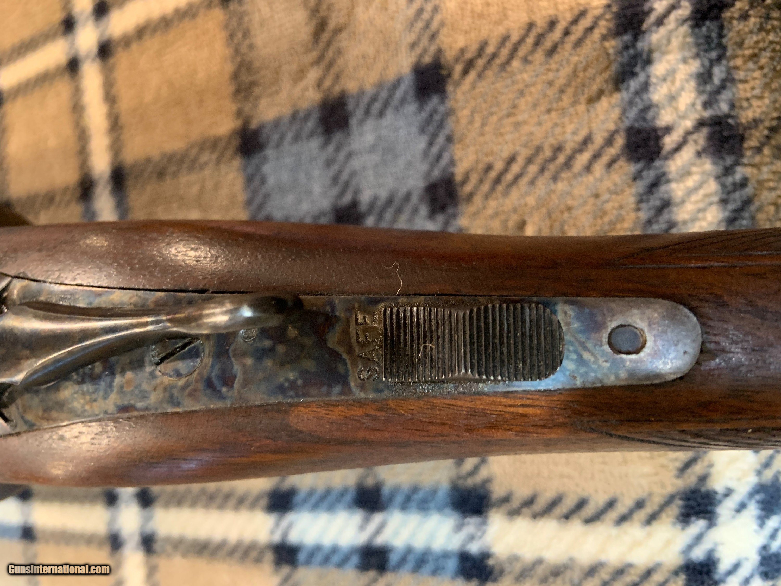 Description: What a find, a boxlock made by the same company who were turning out the LC Smiths. These were less expensive but still quality guns. To find these guns in this condition is rare because most were used extensively. this one looks unfired by the standing breech showing no sign of shell marks. The Hunter Specials were unique in that they built in the rotary locking bolt system as in the LC Smith models. This one has a small compass attached to the stock. This is the best one I have ever seen. Thanks for your interest. questions call 330-466-1092. Shipping is 50.00 insured to the lower 48. SOLD Curio/Relic: Yes Shotgun Gauge: 12 Gauge Manufacturer: Hunter Arms Model: Hunter Special Serial Number: 160468 Chambers: 2 3/4 Condition: near mint Bore Condition: shiny Triggers: double Stock Comb: 1 1/2 Stock Heel: 2 1/2 Butt Pad: plate LOP: 14 1/8 Sights: single bead Manufacture Date: late 30s Choke Left: mod Choke Right: ic |