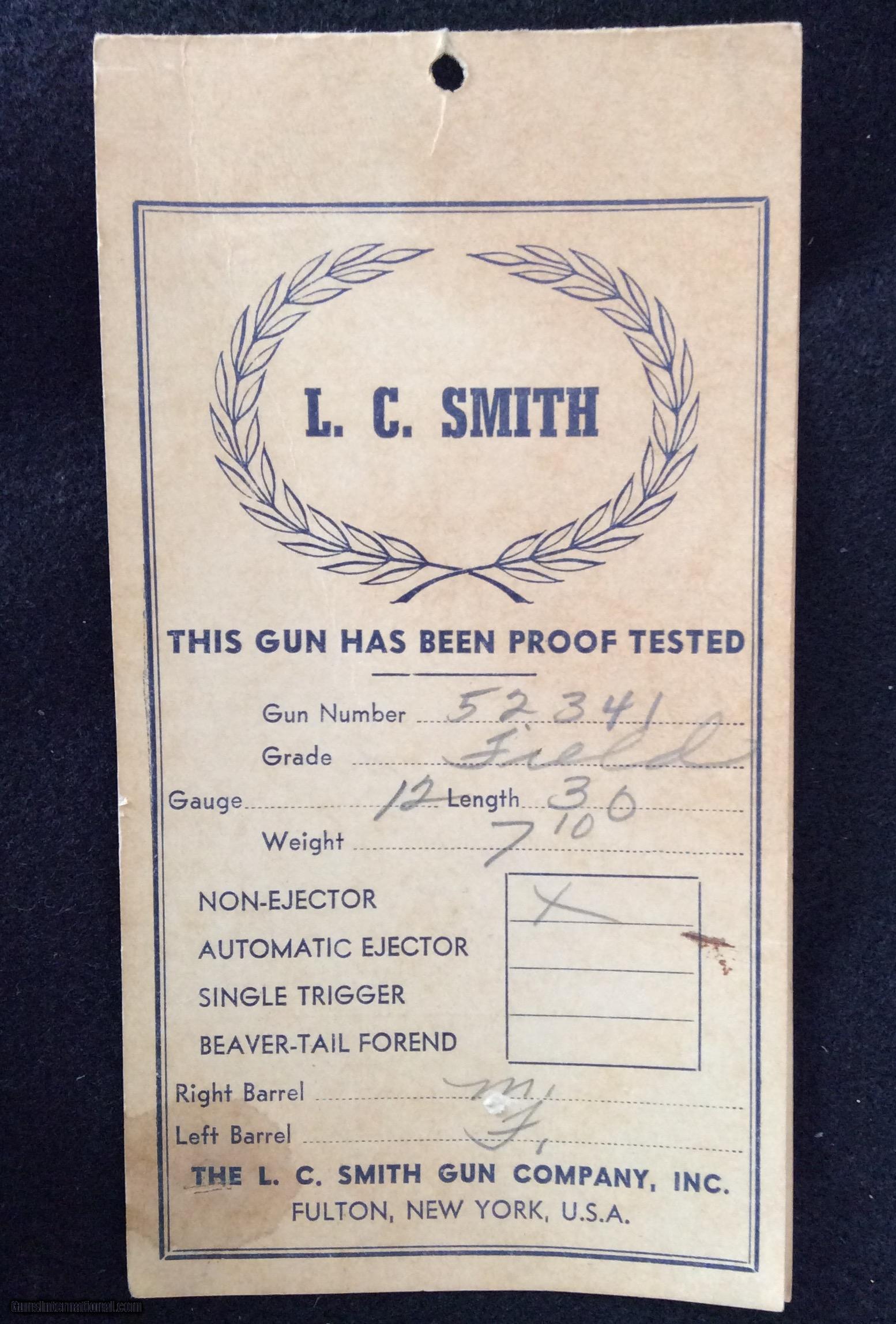 Description: Incredible find – LC Smith side-by-side shotgun as new in box with original shipping crate. This is a beautiful 12 gauge field grade shotgun, double trigger, with 30 inch non-ejector barrels. This gun was purchased and put away for the past 68 years! This gun is highly collectible as most all field guns were put to use in the field. Includes letter from Marlin / Brophy ( notice the typo stating the gun had 20" barrels!) Valid FFL required. C&R eligible. Buyer to pay S/H/I. SOLD Curio/Relic: Yes Manufacturer: LCP Smith Condition: Nib Gauge Info: 12ga |