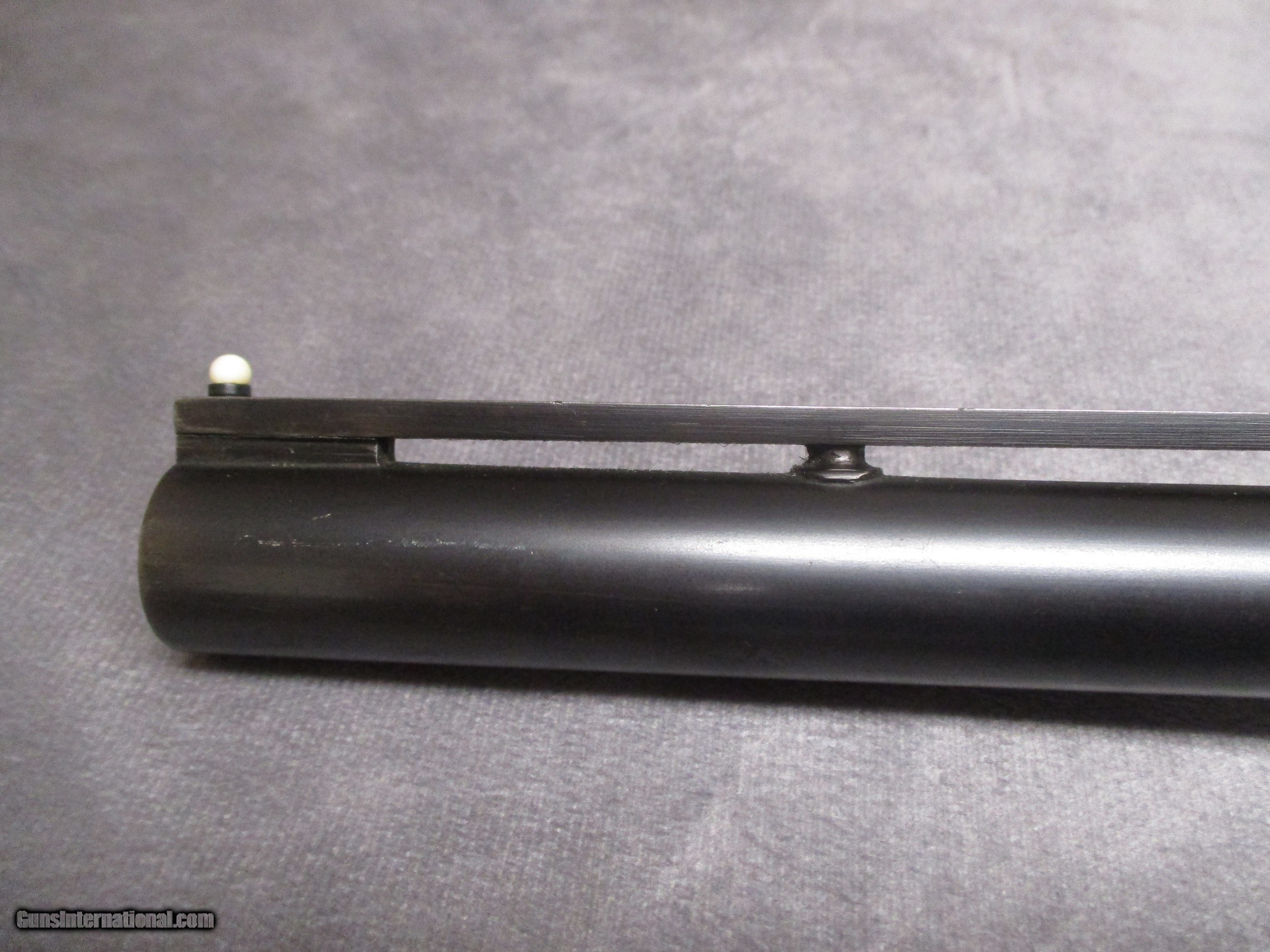 Description: The L.C. Smith Gun company is famous for its many high-quality shotguns. One of these was the Single Barrel Trap (SBT) gun, which like most other L.C. Smith shotguns, was available in different grades. More SBT guns (1,470 total) were built in what is known as the Specialty Grade than any other; one gun in this grade was finished by the L.C. Smith Gun Company in 1948 after Hunter Arms production stopped at 1,469 in 1940. The Specialty was built as a mid-grade gun selling for $133 in 1927 allowing potential buyers many options from which to choose: different stock dimensions of a full, half or straight grip and 30, 32 and 34 inch long barrels made of Nitro Steel. Standard features include two Lyman ivory sights, an ejector, ventilated rib, a beavertail forearm and recoil pad. Engraving patterns usually consist of a sitting dog on the left of the frame and a sitting bird on the right, both surrounded by foliage and moderate scroll. The present SBT Specialty Grade is in good shape given its age of 102 as of 2021. There is some light pitting in the receiver in and less so on the barrel, which retains most of its bluing. The color case hardening on the receiver is mostly gone, which is standard fare for most color case hardened firearms. The wood furniture is in great shape with only minor handling wear. The barrel has some very minor scratch marks on the right hand side. The bore is in great shape and the action locks up tightly. This would make a nice addition to any L.C. Smith collection. SOLD Shotgun Gauge: 12 Gauge Manufacturer: L.C. Smith Gun Co. Model: Single Barrel Trap Serial Number: 11608 Bore: Smoothbore Chambers: 2.75 inches (70mm) Ejectors: Yes Condition: Good Barrel Type: Ribbed Action: Single-shot break open Triggers: Single Stock: Checkered walnut, straight grip Stock Comb: 1.0 inch (25.4 mm) Stock Heel: 1.5 inches (38 mm) Fore End: Checkered walnut, beavertail Butt Pad: Brown rubber pad LOP: 14.125 inches (358.775 mm) Rib: Vent, 0.25 inches (6.35 mm) wide Finish: Blued, Color case hardened Sights: Lyman ivory sights Chokes: Full Engraving: Specialty Grade |