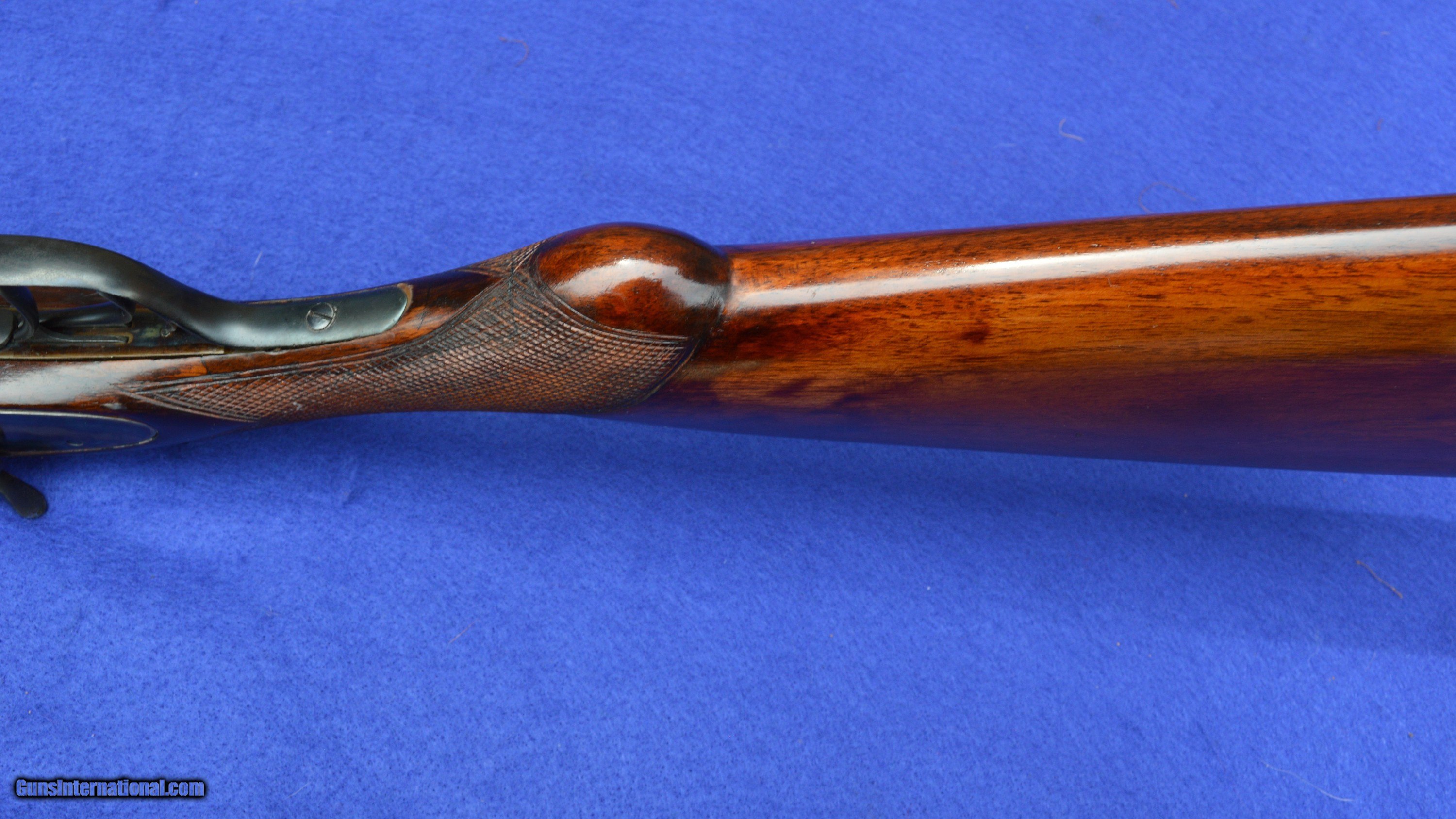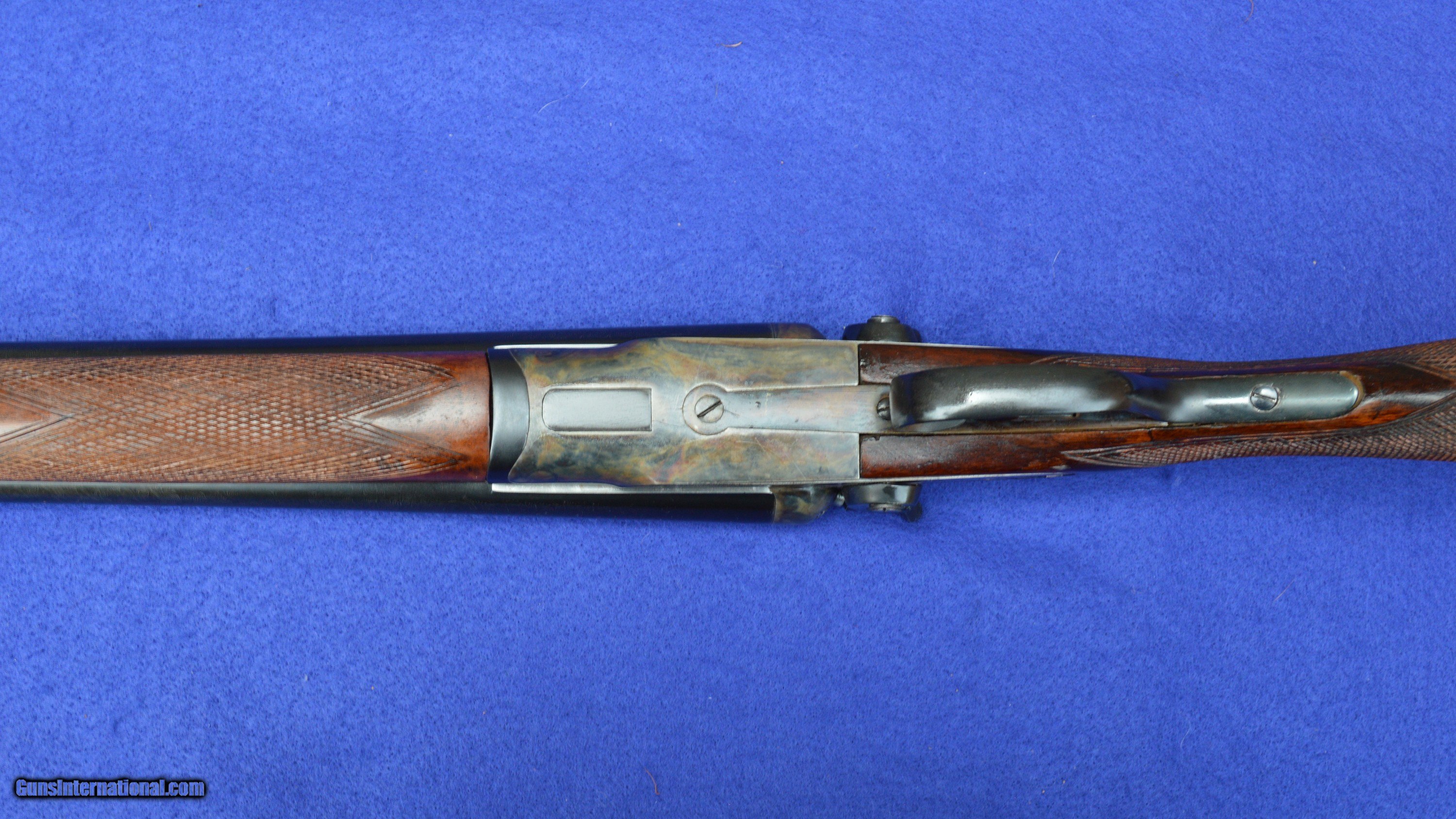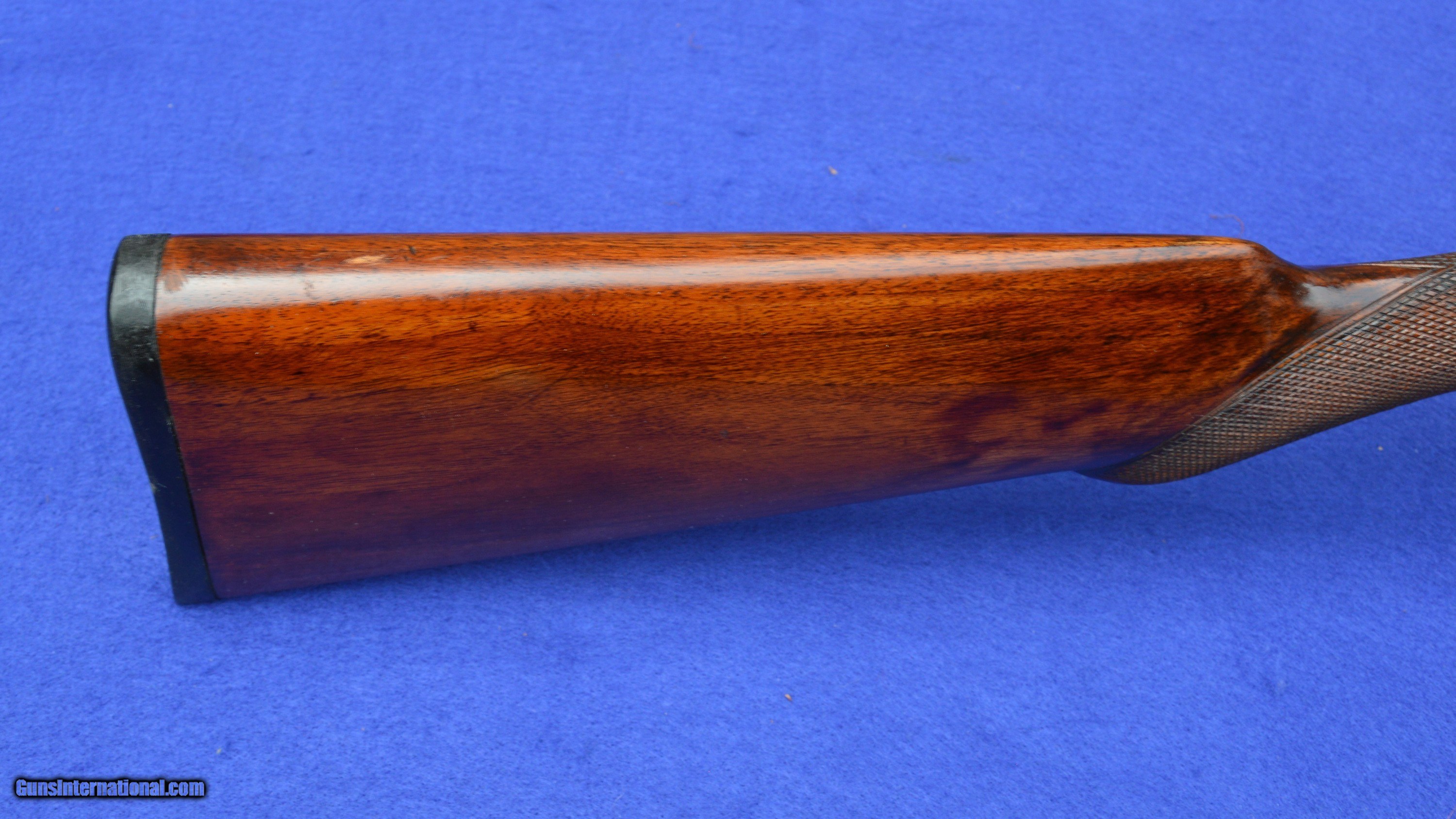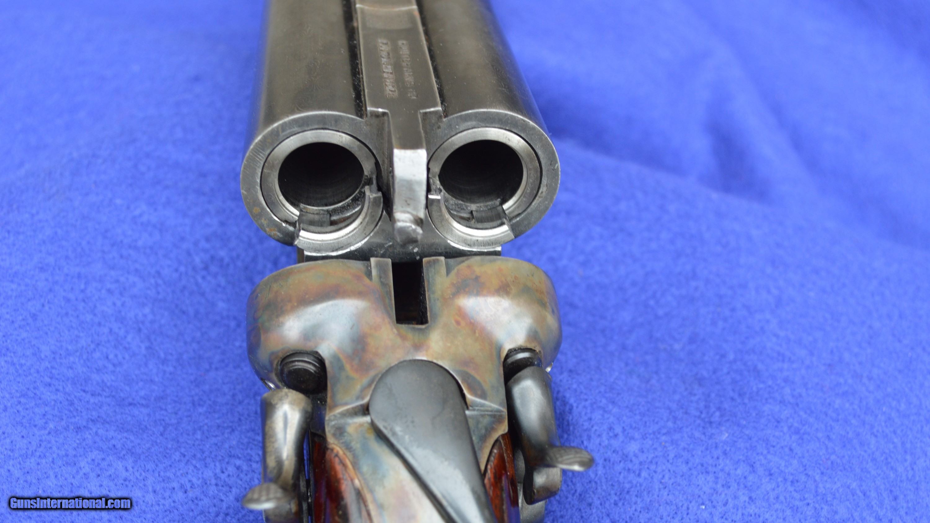 Description: This LC Smith F-Grade 12-Gauge, s/n 169200, was manufactured in 1912. It is restored to a condition similar to what it would have been in after a couple of years use by the original owner. First introduced in 1898, the LC Smith F-Grade was offered in three variations. The most expensive variation, of which this gun is an example, had barrels made of standard 2-rod Damascus-steel. Although exact production numbers of each variation do not exist, only about 5% of F-Grade guns known to have survived are of the Damascus-barreled variation. Many consider the L.C. Smith F-Grade to be among the most shootable of American hammer shotguns. As fitted with 20-gauge and 28-gauge full-length Briley tubes, each with variable interchangeable chokes, this 12-gauge is also a very versatile shotgun. The original plain English walnut stock has been reconditioned by drawing out damaging petroleum-based oils and replenishing natural oils through the application of a hand-rubbed stock-oil finish. Oil damaged wood behind the sidelocks is replaced with new walnut. The checkering is re-cut and the pattern expanded. The forend iron is original; the forend wood and its checkering are new. The length of pull is 14-1/2 inches to the end of an L.C. Smith hard-rubber dog-head buttplate. The drop at the comb is 1-3/4 inches and at the heel is 2-7/8 inches. The cast is neutral. The receiver, sideplates, and bottom metal are re-color-case hardened by Victor’s Legacy Custom Gunsmithing in Fairport, OH. The 20-gauge full-length Briley inserts come with a set of five interchangeable chokes ranging from skeet to full. The 28-gauge tubes come with improved cylinder and modified interchangeable chokes. The gun can be shot without inserts only with 12-gauge low-pressure shells designed for Damascus-barreled shotguns, such as RST. As refinished, the barrels’ high-contrast black-on-white Damascus pattern is very attractive. As honed by Briley, the bores are bright with wall thicknesses of .020”- .025”. The gun weighs 7 pounds 5 ounces without tubes, and 8 pounds with tubes. Both triggers pull at 7 pounds of pressure. The gun locks up tightly and all serial numbers match. The price of this gun does not include shipping costs, which are paid by the buyer. The inspection period is 7 days from receipt. This gun has been shot with standard 28-gauge and 20-gauge target shells. It has also been fired with12-gauge low-pressure shell produced specifically for Damascus-barreled shotguns. However, as for any vintage shotgun over a hundred years old, the seller recommends that the new owner have it inspected by his or her professional gunsmith before firing. Curio/Relic: Yes Price: $2,600.00 Contact Seller |