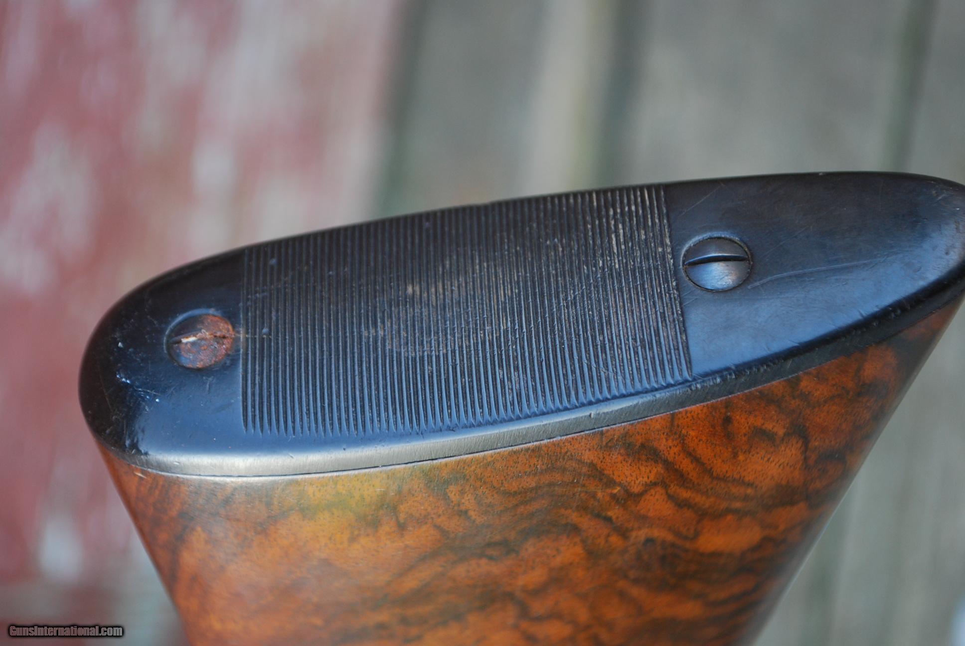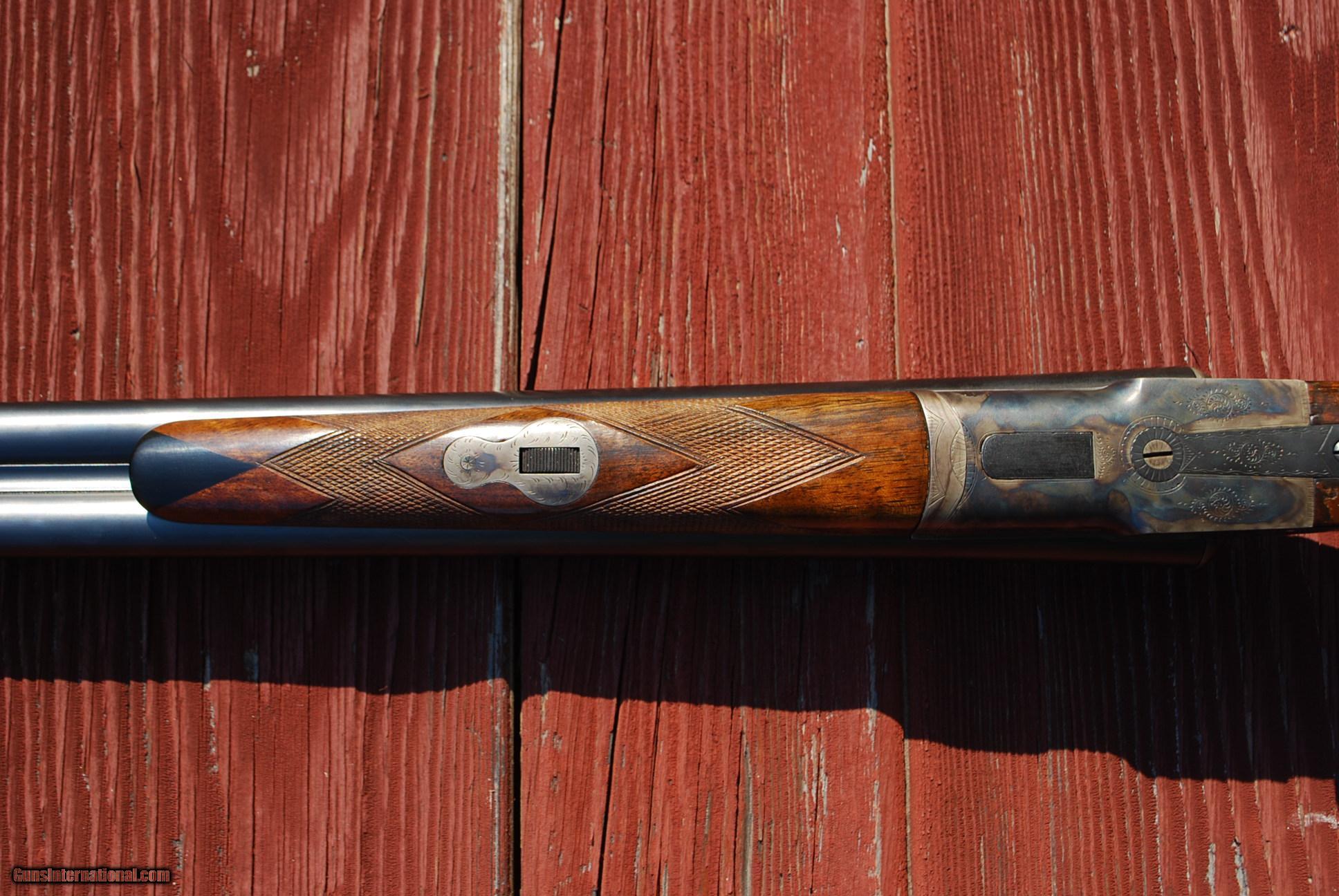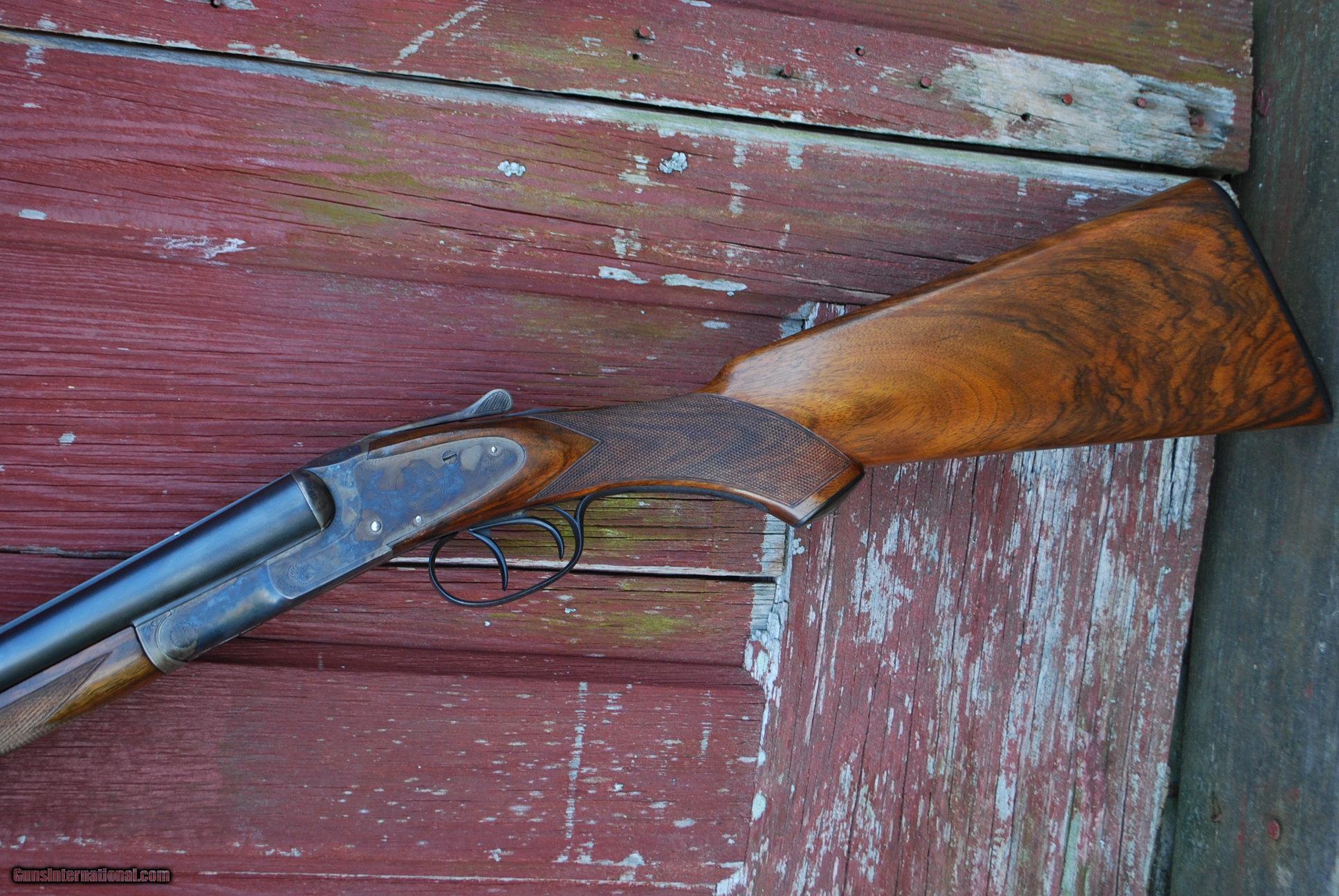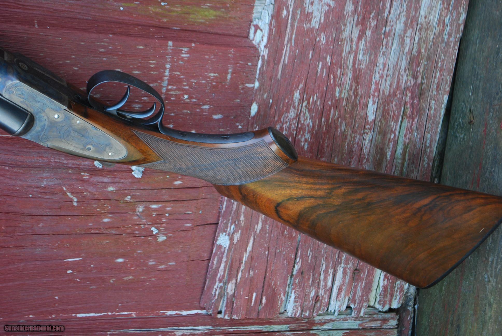 Description: Graceful long barreled sub gauge pre-13 smith gun. Wonderful combination of long barrels, ejectors, double triggers and total class. 30 in full choke barrels, 6 lbs 12 oz, 14 5/16 LOP, 2 3/4 DAH. SOLD Curio/Relic: Yes |