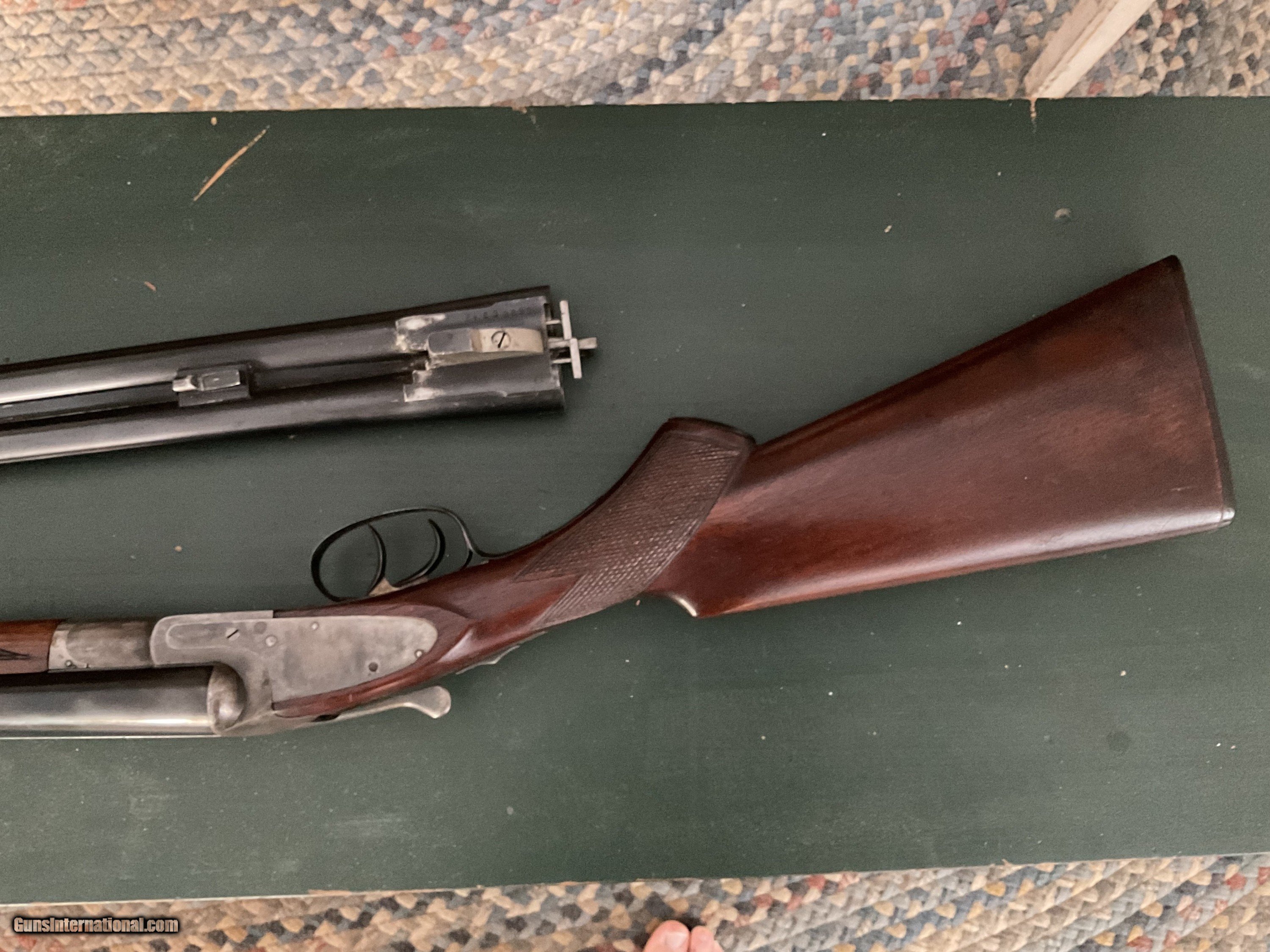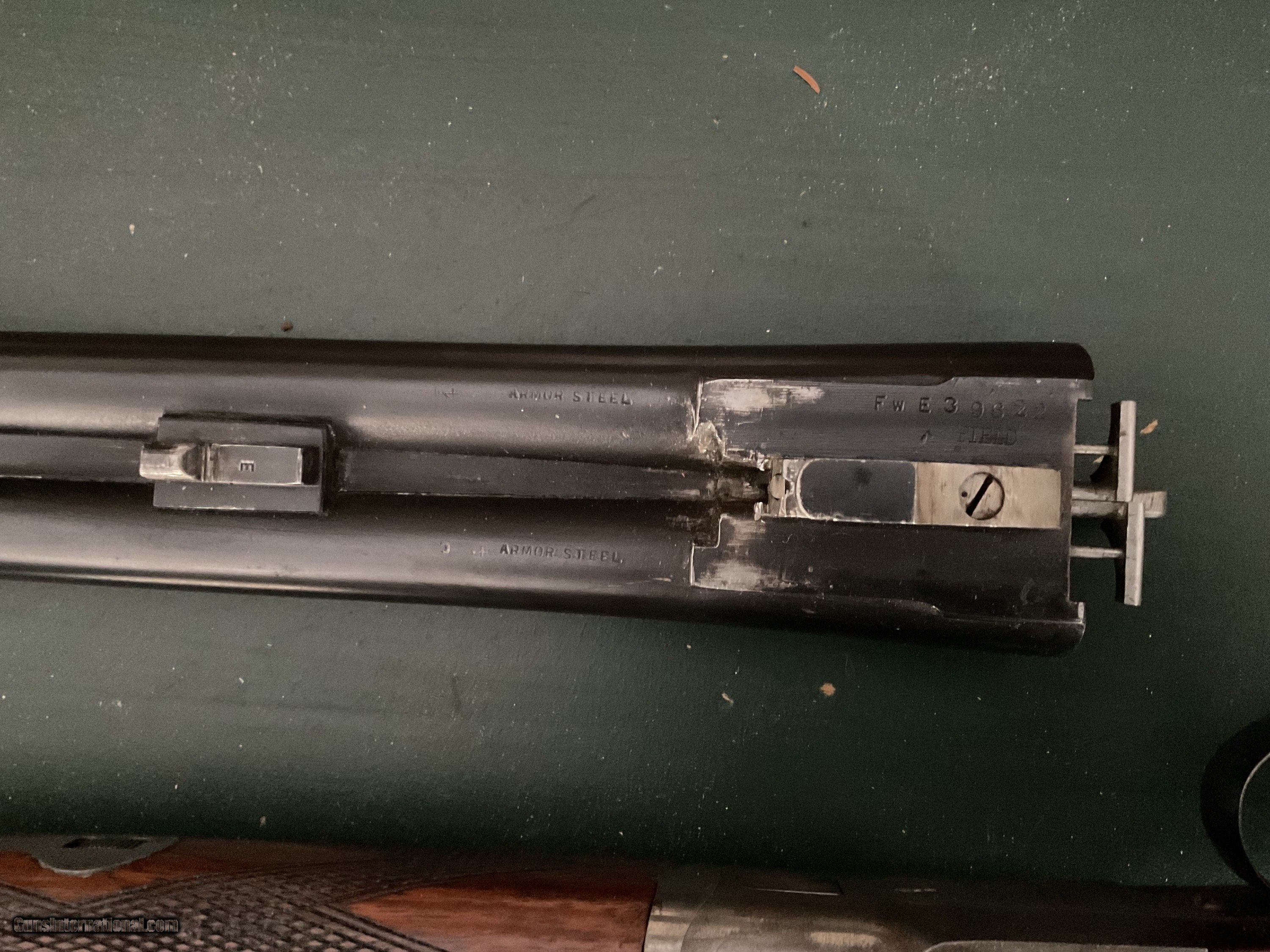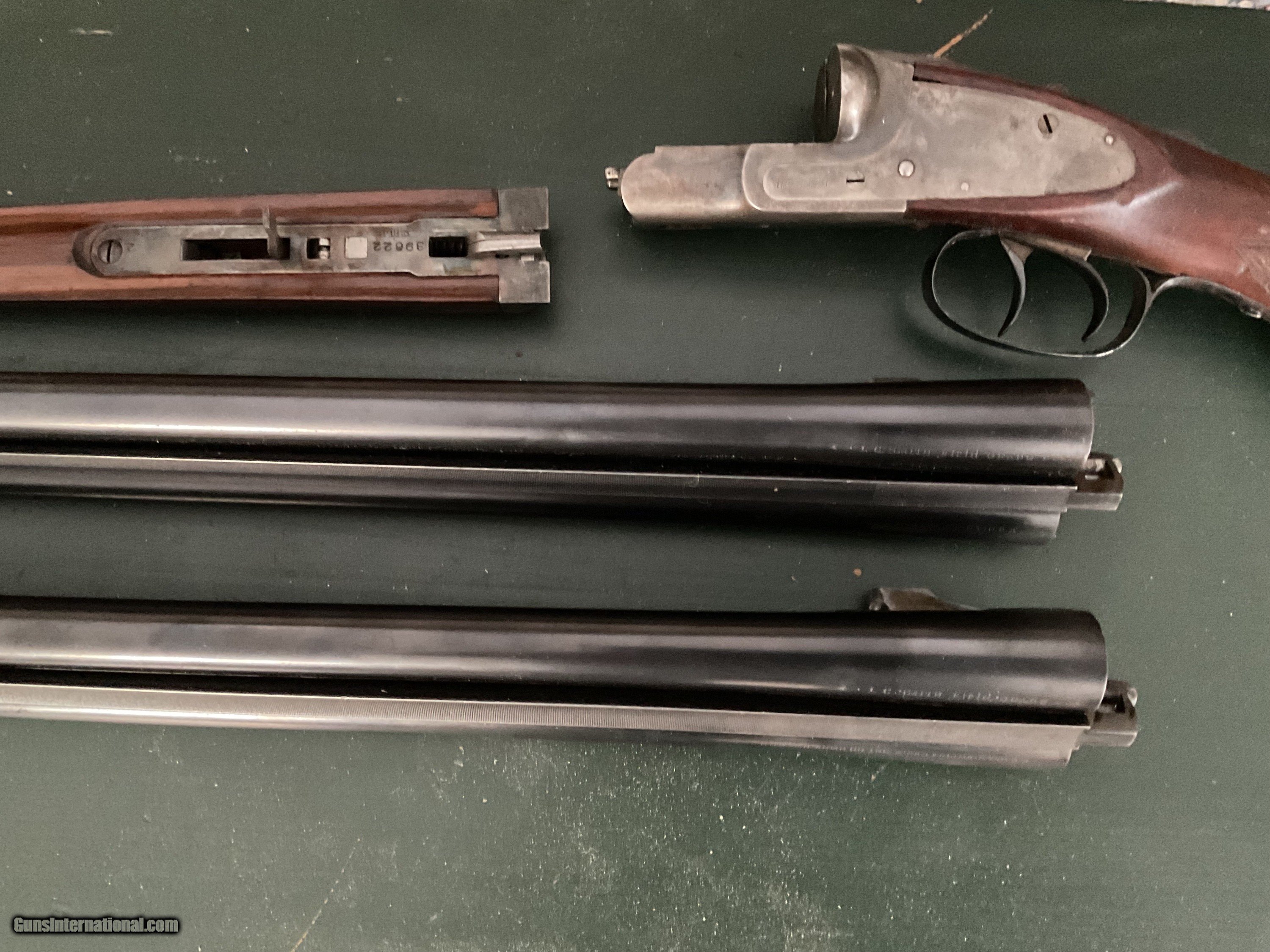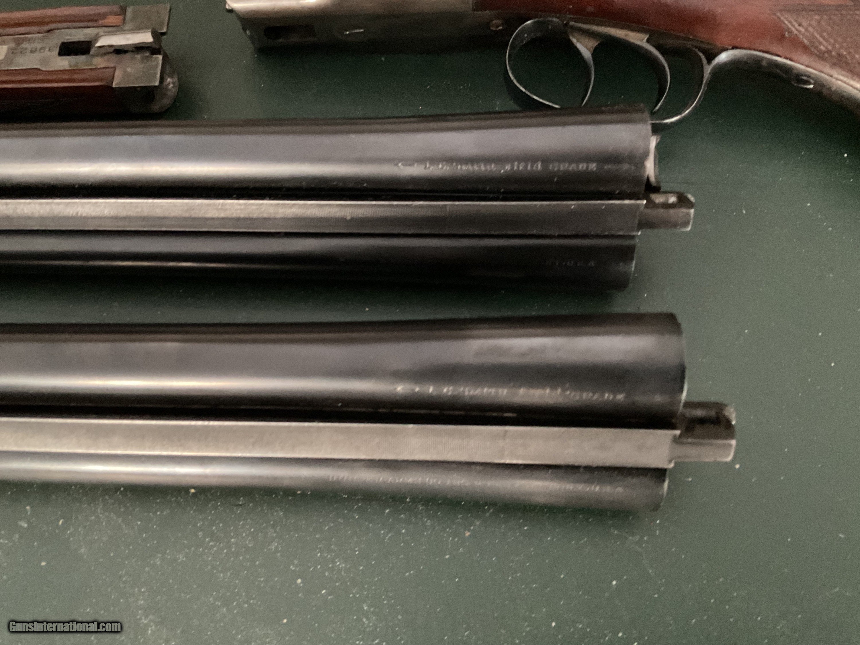 Description: A scarce and unusual configuration. 16 gauge LC Smith Field grade featherweight automatic ejector two barrel set the 28 inch barrels are choked full and full. The 26 inch barrels are choked improved cylinder and a light modified No damage at all to the stock there are no cracks the ejectors work fine. I have the 16 gauge barrels professionally re-blackened to factory standards But you really could not tell the difference The boys are absolutely meant the ejectors have been time to perfectly Guns, never been cut - guns never been messed with. This is one of only four known in a field grade 2 barrel factory set 2076049858. Thank you Shotgun Gauge: 16 Gauge Manufacturer: L c smith Model: Field grade featherweight ejector Serial Number: 39622 Barrel Length: 28 and 26 Bore Info: Mint Chambers: 2 9/16 Ejectors: Yes Condition: Extremely good boarding on excellent Metal Condition: Traces of case color, the gun has never been wet with Wood Condition: Very, very good handling marks as you would expect Bore Condition: Mint Price: $2,500.00 Shipping: $50.00 Contact Seller |
