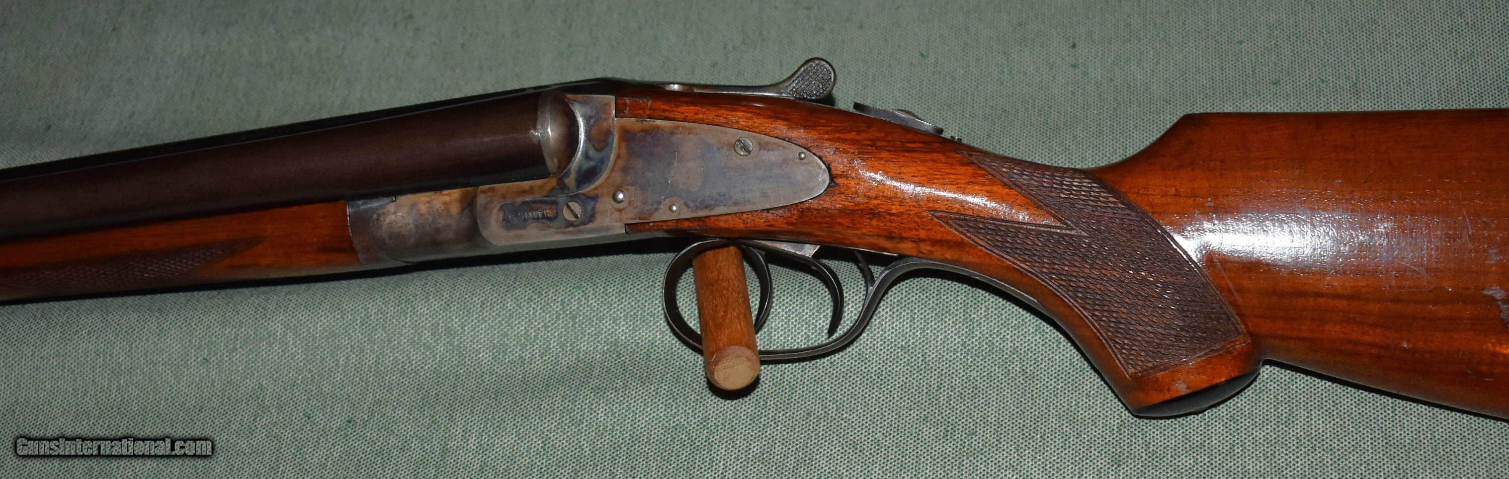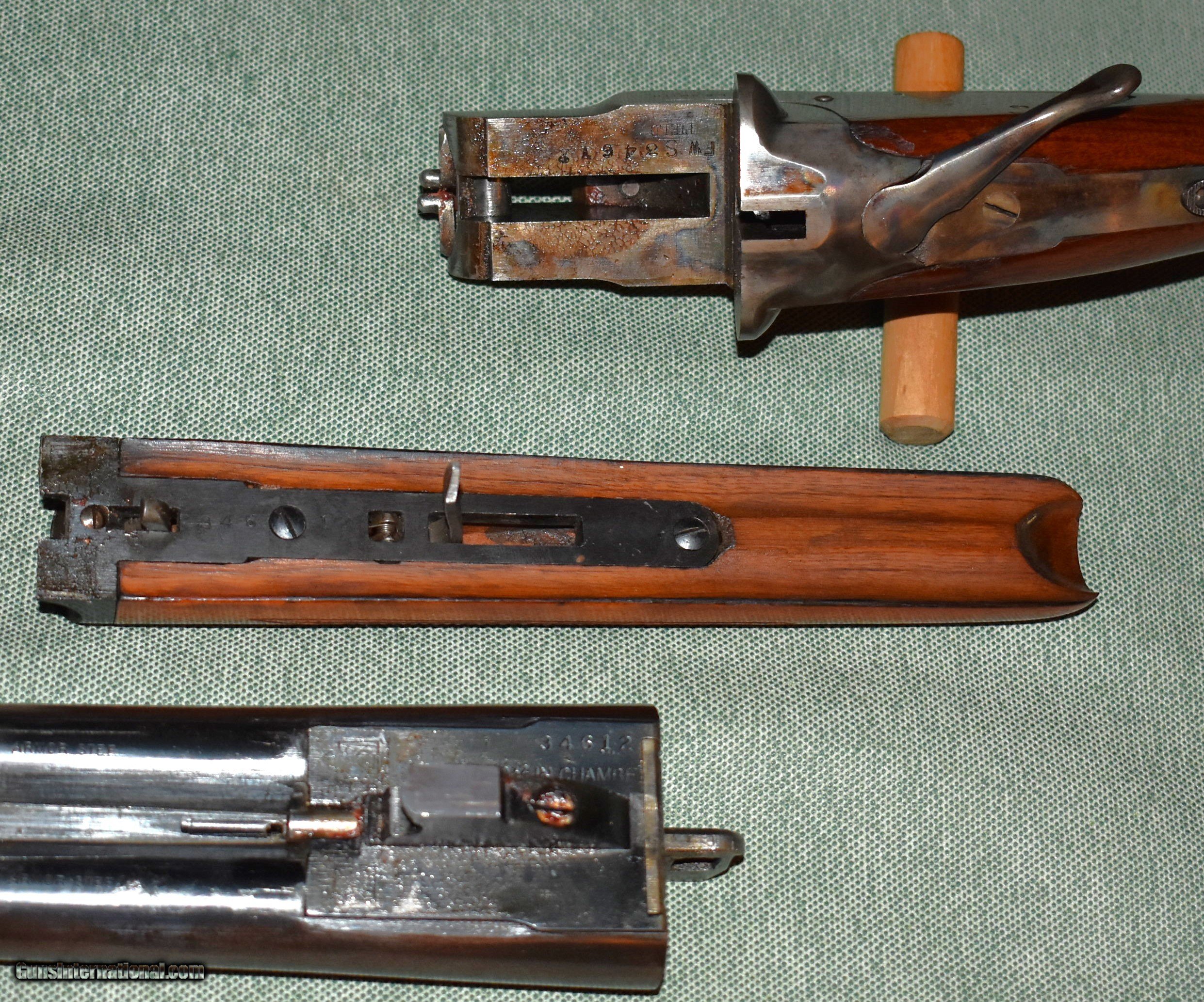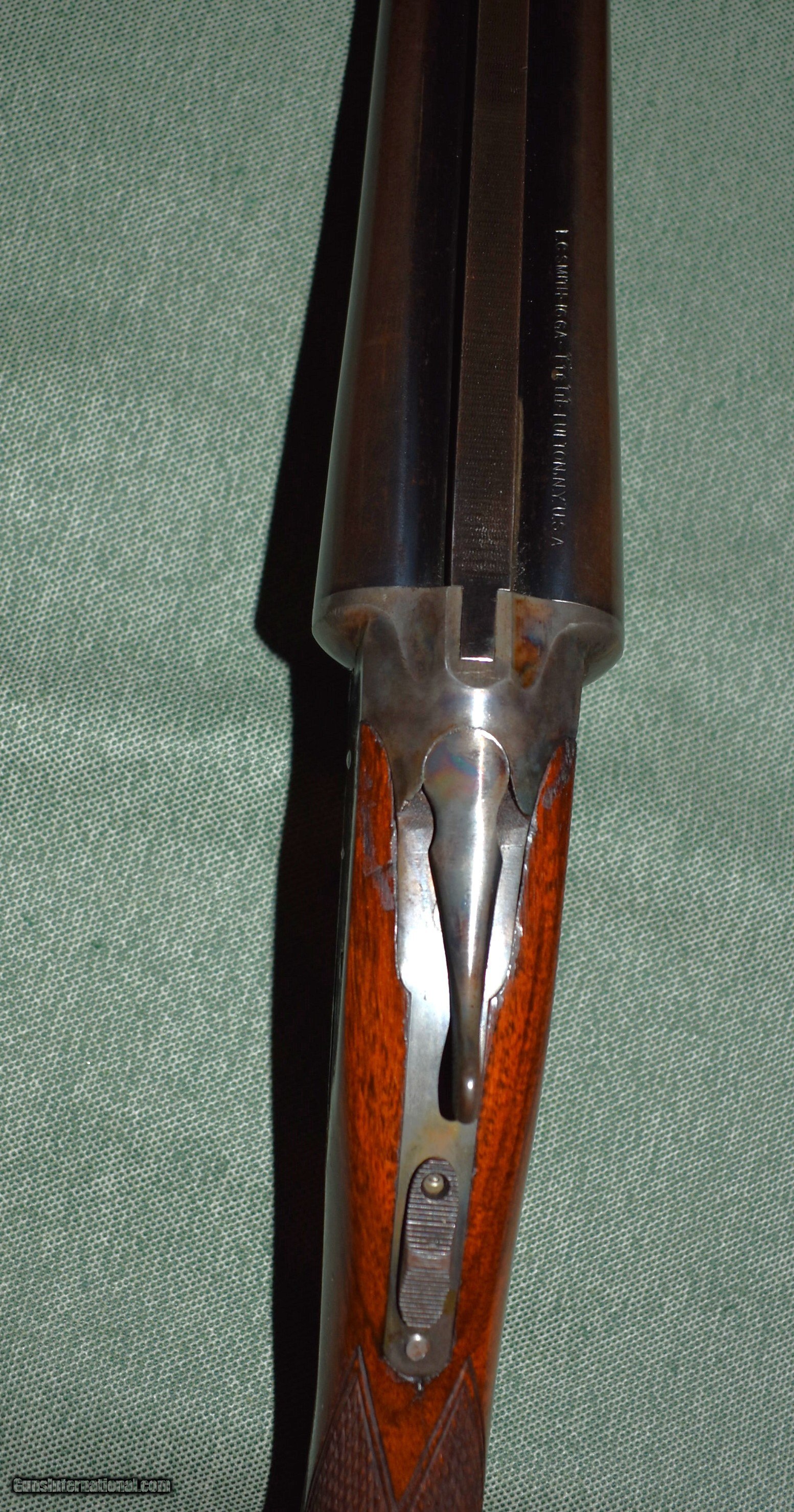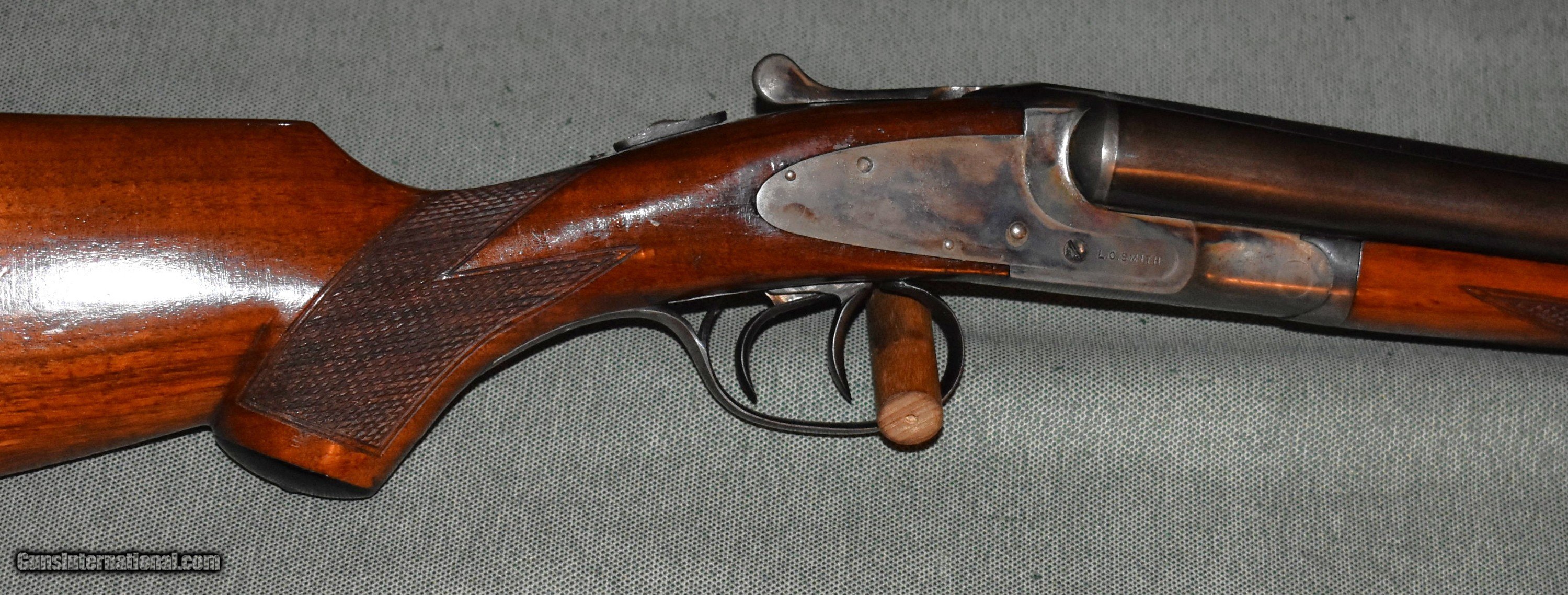 Description: L.C.Smith 16 gauge Field Grade built in 1948. This gun is in excellent all original condition. It retains 70% of the original case color,98% of the original barrel blue,and 98% of the original wood finish. It has 28" Armor Steel barrels choked modified (.022") and full (.034"). The bores are mint and bright. The stock and forend are sound and free of any cracks or damage. The barrels are on face and lock up tightly to the action with no play. The top laver is far to the right indicating that the gun has been shot very little. A great little Smith that would make a fine dove or pheasant gun and a nice addition to any collection. C&R eligible. Price includes shipping to your FFL. SOLD Curio/Relic: Yes Shotgun Gauge: 16 Gauge Manufacturer: L.C.Smith Hunter Arms Model: Field Serial Number: 34612 Barrel Length: 28 Chambers: 23/4 Ejectors: extractors Condition: excellent Metal Condition: excellent Wood Condition: excellent Bore Condition: mint Barrel Type: Armor Steel Action: Double Barrel Triggers: Double Butt Pad: Factory Buttplate Rib: Raised Solid Rib Manufacture Date: 1948 Choke Left: Full Choke Right: Modified |