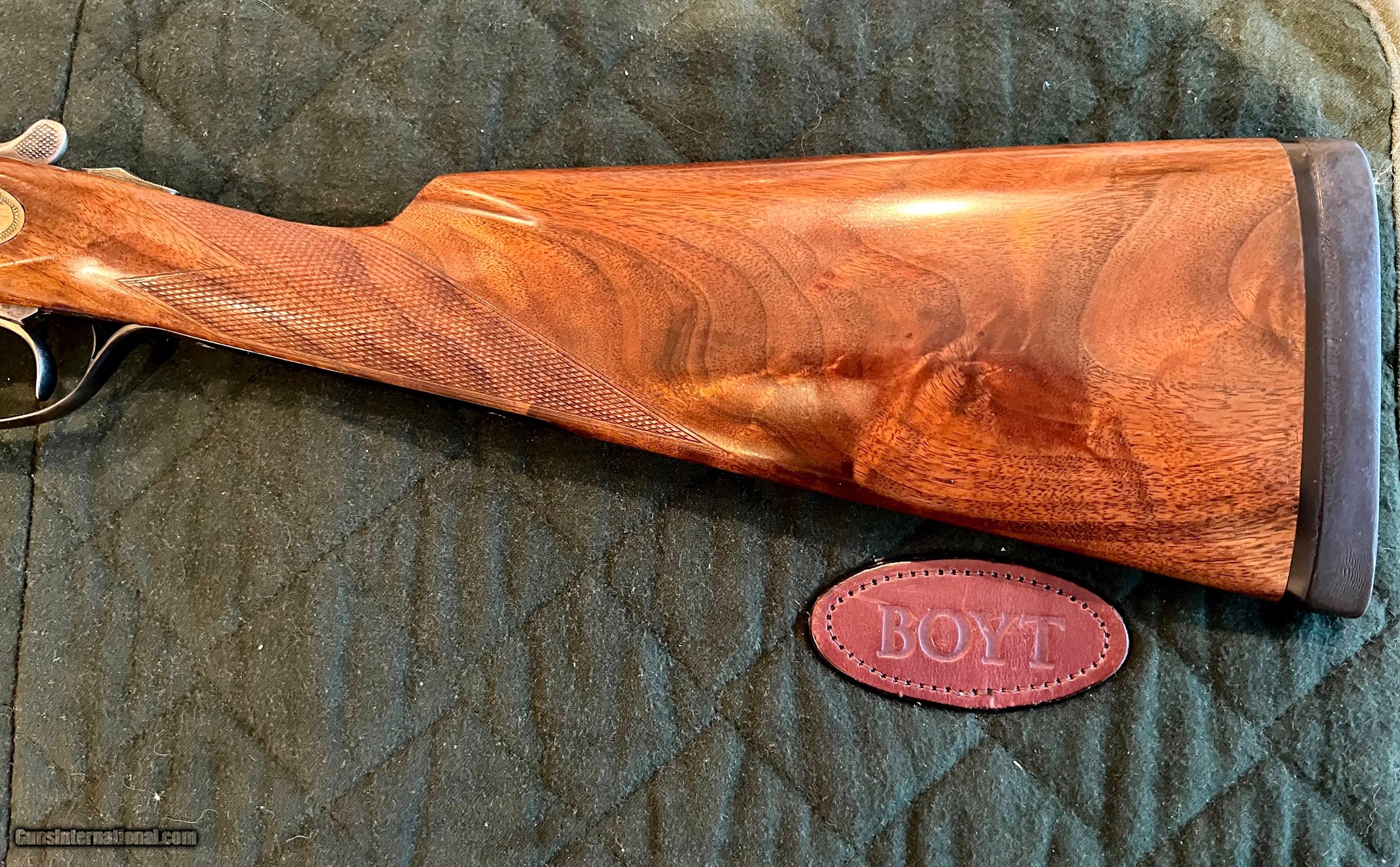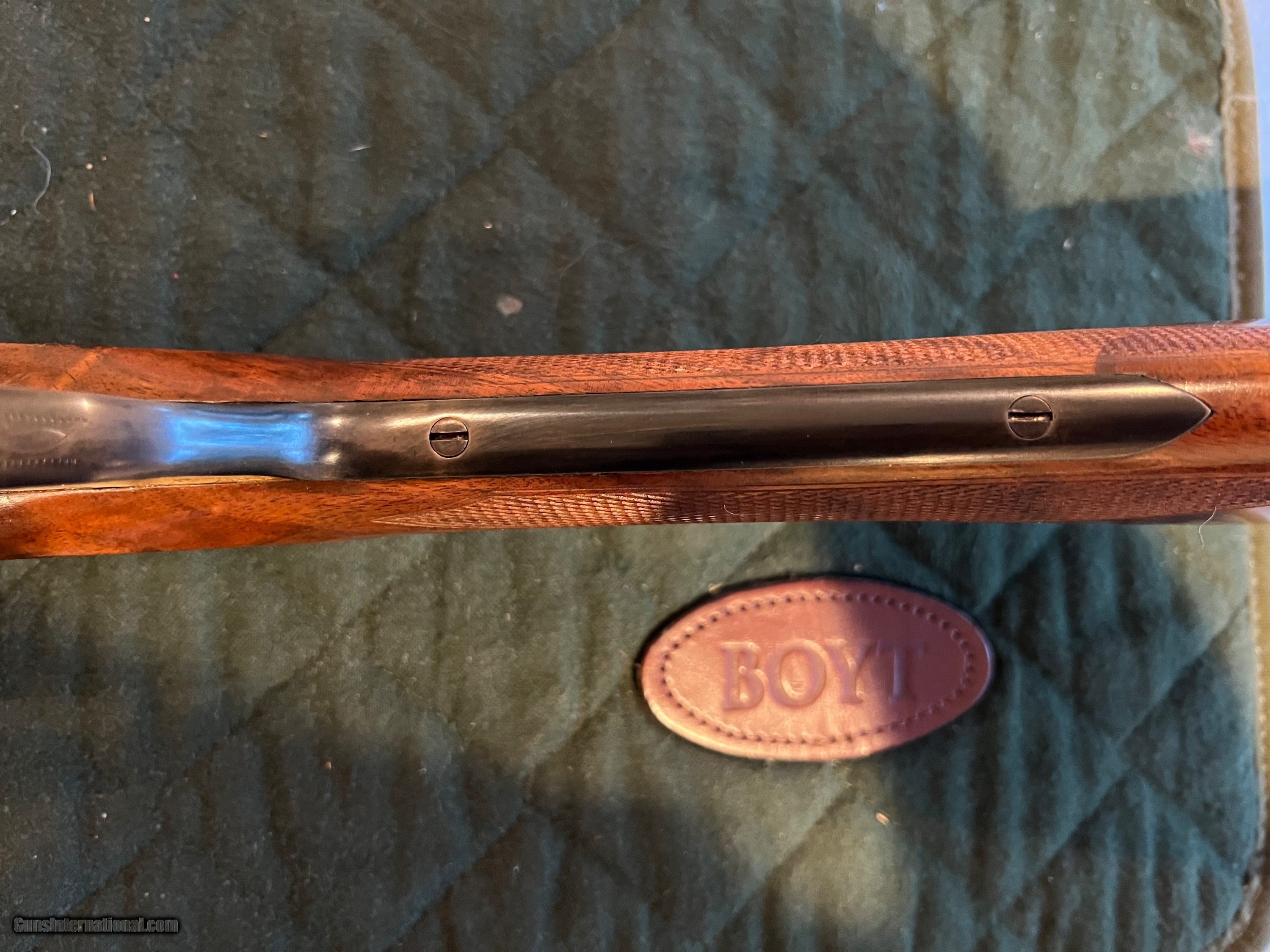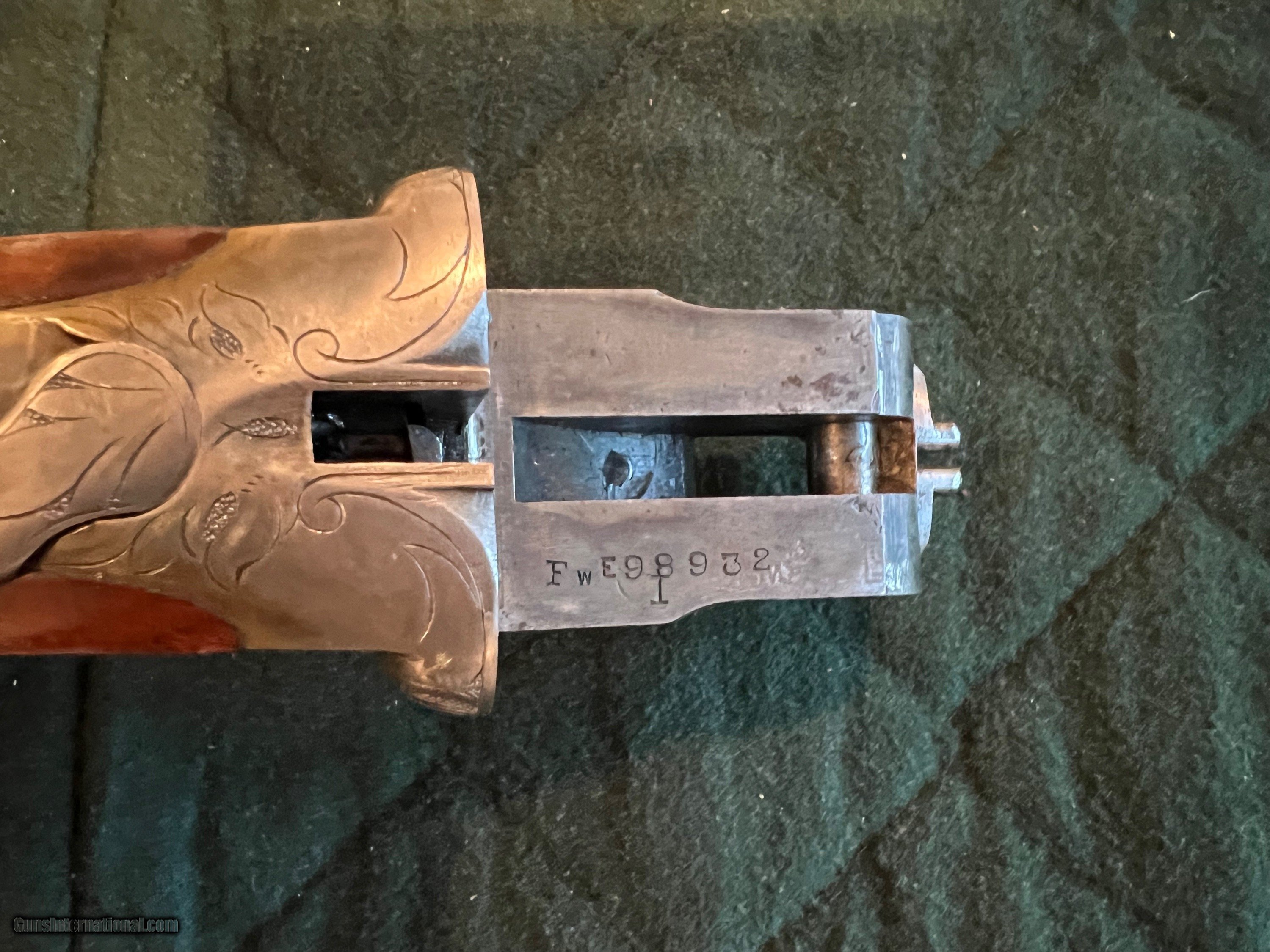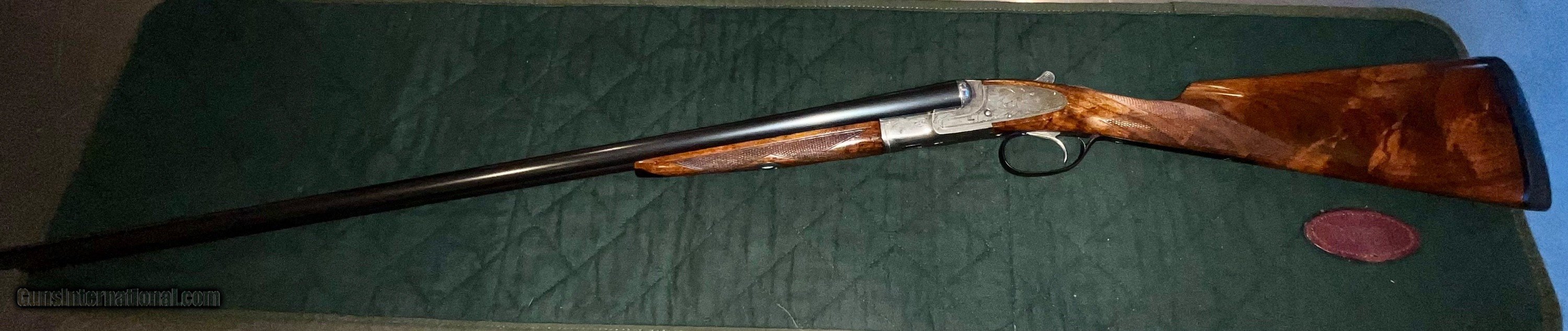 Description: Very Nice L C Smith 20 Gauge Ideal Grade shotgun with 30" Barrels and very rare 3" Chambers. Barrels are clearly marked accordingly. English stock, Splinter forend. Re-stocked at some point. This gun has Wonderfully modern shootable dimensions including a 14 1/4" LOP over a rubber pad Drop at Comb is 1 1/2" and 2" Drop at Heel. Cased in a leather and canvas case which has a reproduction label. Barrels are tight on face, choked Full and Full. Has factory Hunter One Single Trigger. Case color finish thinning on receiver, and blue on barrels, trigger guard and tang is better than 95%. Gun weighs 6lbs 9.2 Ounces. Nicely balanced, elegant 20 Gauge with great proportions. Thanks for your interest. Please see my other ads. SOLD Manufacturer: L C Smith Model: Ideal Grade Barrel Length: 30 Chambers: 3 Ejectors: yes Condition: Excellent Bore Condition: perfect Action: Side by Side Triggers: Hunter One- Factory Single Stock: English Fore End: Splinter Butt Pad: Rubber LOP: 14.25 Weight: 6lbs 9 oz Sights: single bead Choke Left: Full Choke Right: FUll Case: Leather and Canvas |