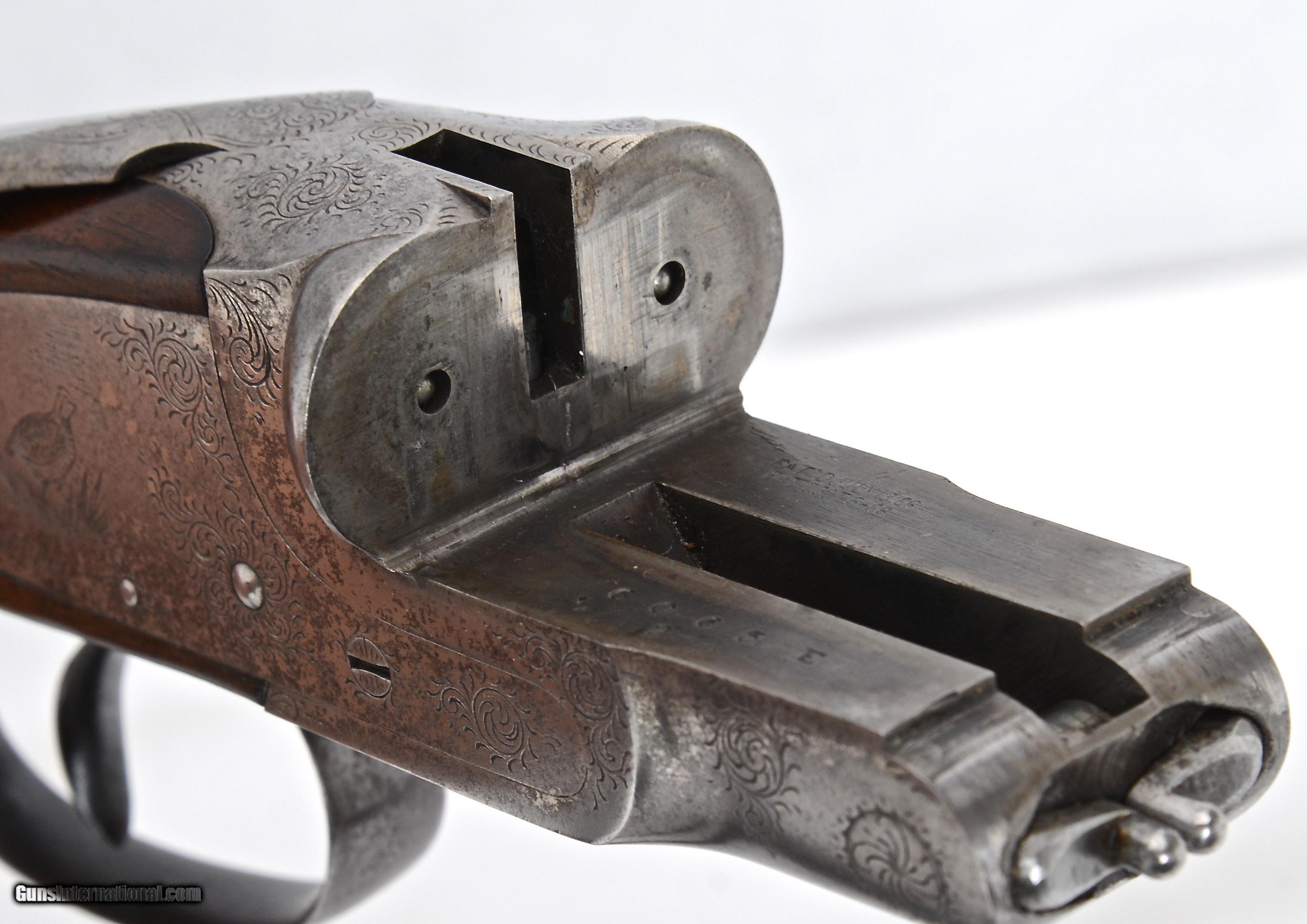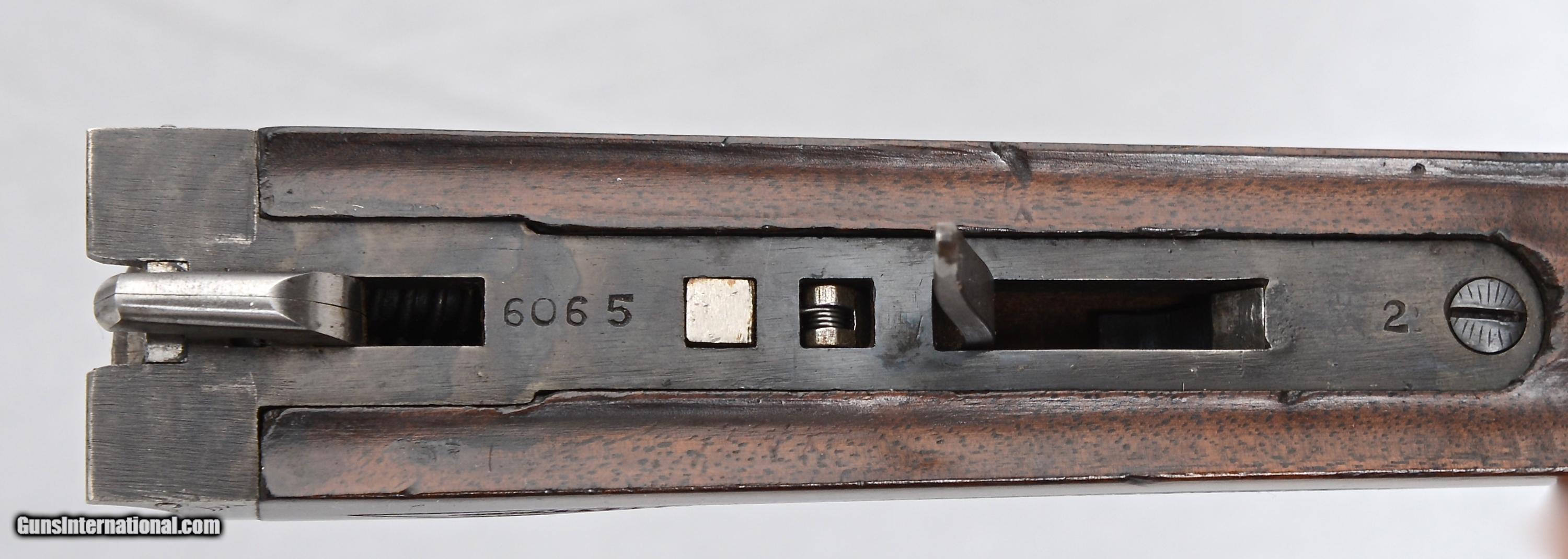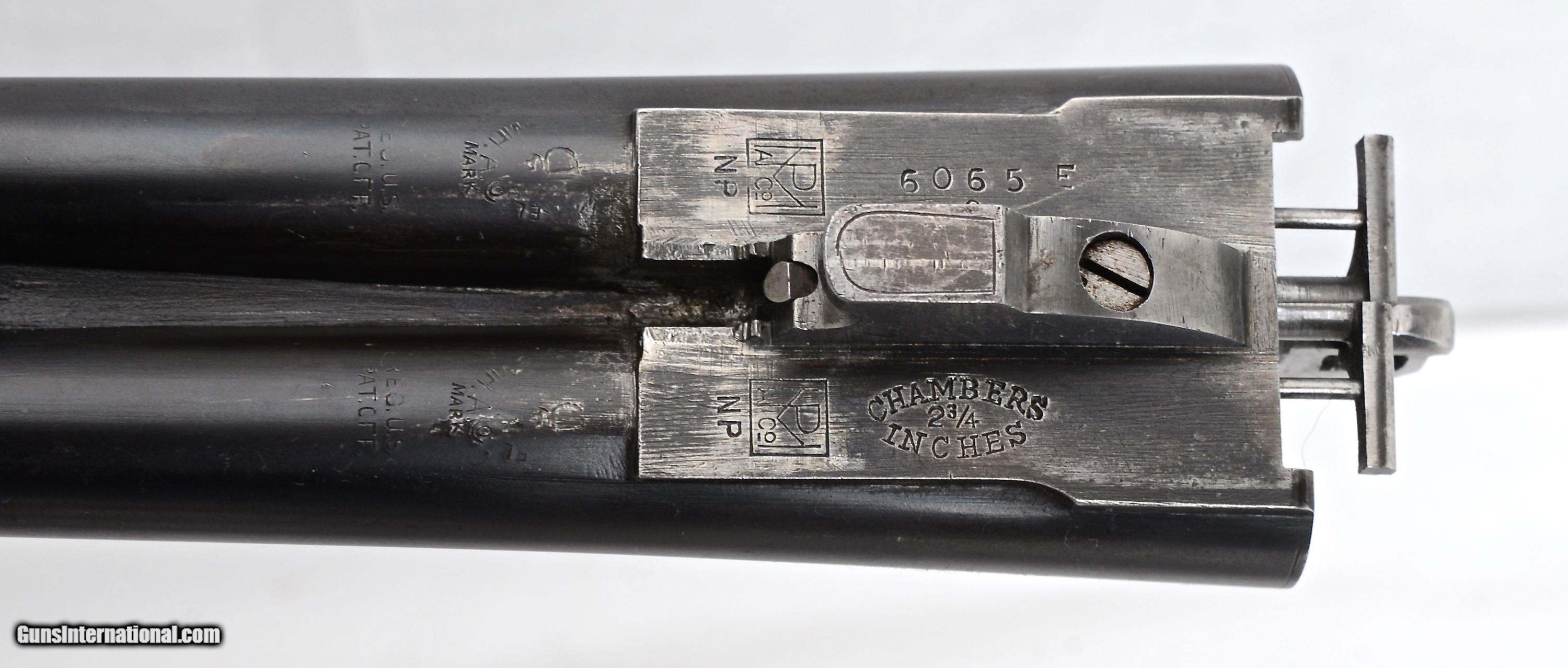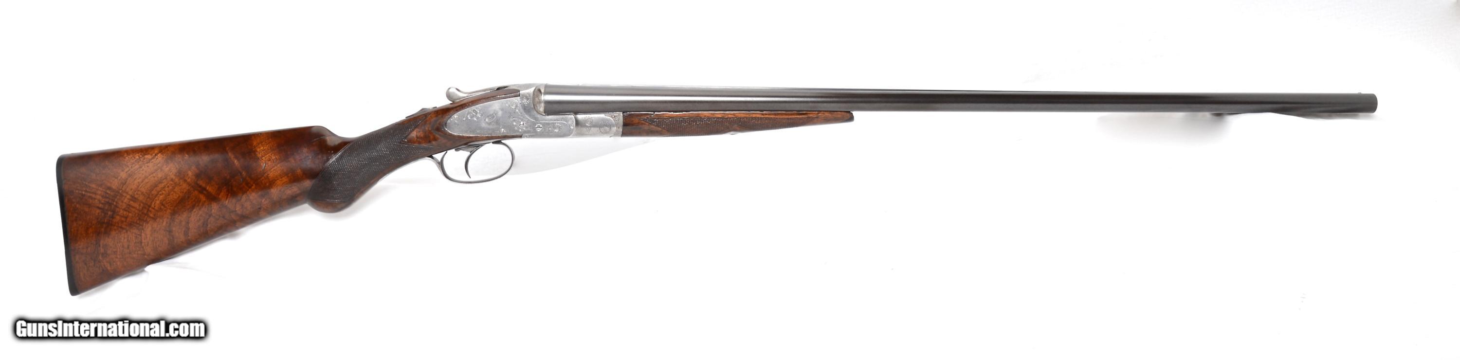 Description: SALE PENDING L C Smith 20 gauge, Grade 2, SxS shotgun made in 1910. This delightful little has 28” barrels choked .003” & .005” for upland game and it was fitted with a 2nd set of Specialty Grade 28” barrels a few years later choked .035 & .035 extra full & extra full. NOTE: The Grade 2 stopped being produced in 1912 and was replaced by the Specialty so the addition of the 2nd set of barrels in Specialty Grade was appropriate! Both sets of barrels have individual splinter forearms and the bores are perfect and bright. Original blue on both sets is 97%. The Grade 2 frame has a quail engraved on each sidelock and complimented with fine scroll engraving on the rest of the receiver. The frame and trigger guard are mostly devoid of original finishes with just a trace of colors behind the left shoulder and faded blue on the trigger guard. The wood is a nicely figured American Walnut and configured in a Prince of Wales style half pistol grip. 14 1/8” LOP over the factory butt plate, 1 ½” DAC and 2 ¾” DAH with a slight right hand cast. Both forearms have an ebony insert and typical “roller” releases. Condition wise the wood is showing 107 years of light use with a number of “dings” and scuffs but no cracks or damage. This gun weighs only 5 lbs. 11 oz. and balances right at the hinge pin. $6,350.00 SN: 6065E SOLD |