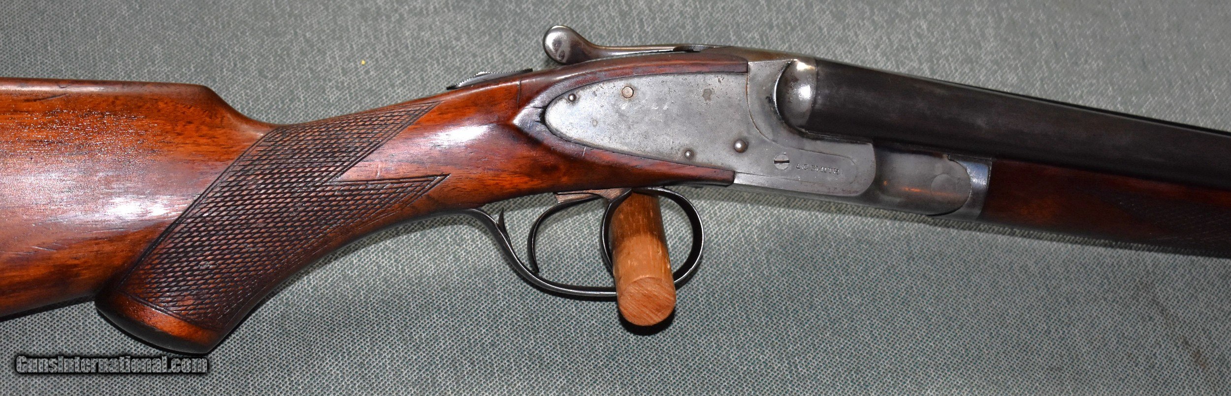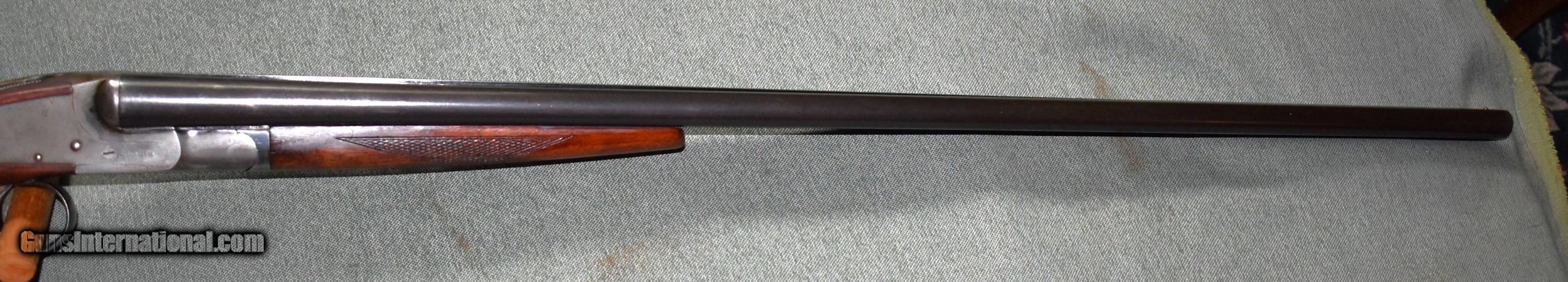 Description: L.C.Smith Field Grade 20 gauge by Hunter Arms. This gun has 30" Armor Steel barrels choked full (.030") and full (.030"). The gun is in all original condition. It retains 25% of the original case colors, 95% of the original barrel blue,and 90% of the original wood finish. The bores are mint and free of any rust,dents,or pits. The stock is sound with no cracks. The barrels are on face and lock up tightly to the action with no play and with the top lever still to the right. The gun is built on the featherweight frame and weighs 6-2. This would make a great turkey,dove,or pheasant gun. C&R eligible. SOLD Shotgun Gauge: 20 Gauge Manufacturer: L.C.Smith Hunter Arms Model: Field Grade Serial Number: FW 91561 Barrel Length: 30 Chambers: 25/8 Ejectors: extraxtors Condition: excellent Metal Condition: excellentee Wood Condition: excellent Bore Condition: mint Barrel Type: Armor Steel Action: Double Barrel Triggers: Double Stock Dimensions: 141/4"x15/8"x23/4 Fore End: Splinter Butt Pad: Factory Buttplate Weight: 6-2 Choke Left: Full (.030") Choke Right: Full (,030") |