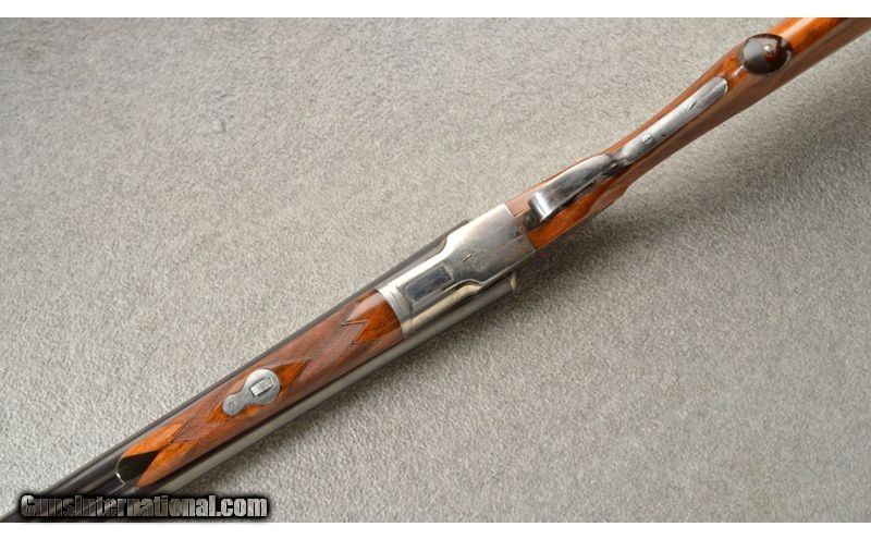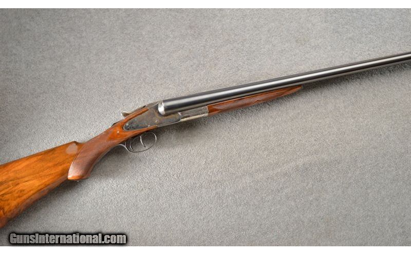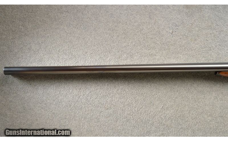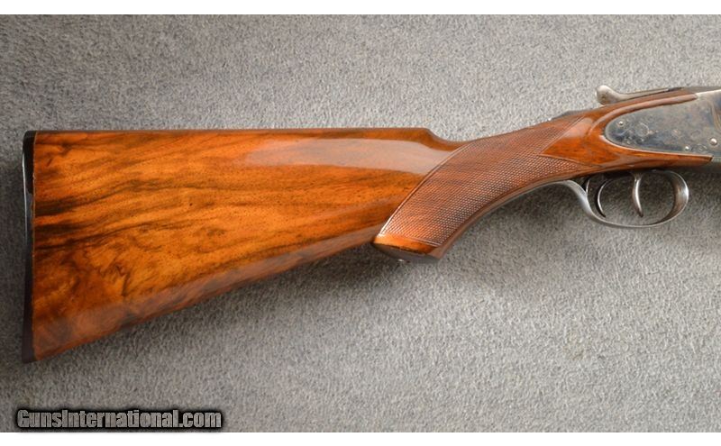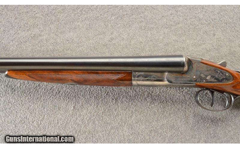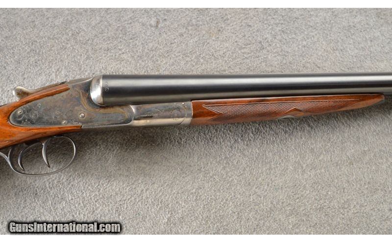 Description: L.C. Smith 3E 12 Gauge shotgun. Model 3E with auto ejectors and No 3 engraving. Cameo scenes of quail on both sides. Barrels are 32" in length with a ribbed barrel. Barrel rib is marked "Hunter Arms Co. Fulton N.Y.". Barrels are choked at, right side (Full) and left (Imp Mod). The barrels appear to have been refinished at some point. The frame has scattered trace amounts of case coloring. The safety selector is both auto/manual. Both the stock and ebony tipped fore end has been refinished, checkering is still in great condition. 12 Gauge SOLD Chambers: 3". Bore Condition: Bright smooth bores. Barrels: 32" barrels. Triggers: Two. Stock Dimensions: LOP 13 1/8" `4". Fore End: Splinter. Butt Pad: Hard rubber. Weight: 7 3/4 LBS Sights: Front bead. Chokes: Fixed. Item Location: Owatonna, MN |