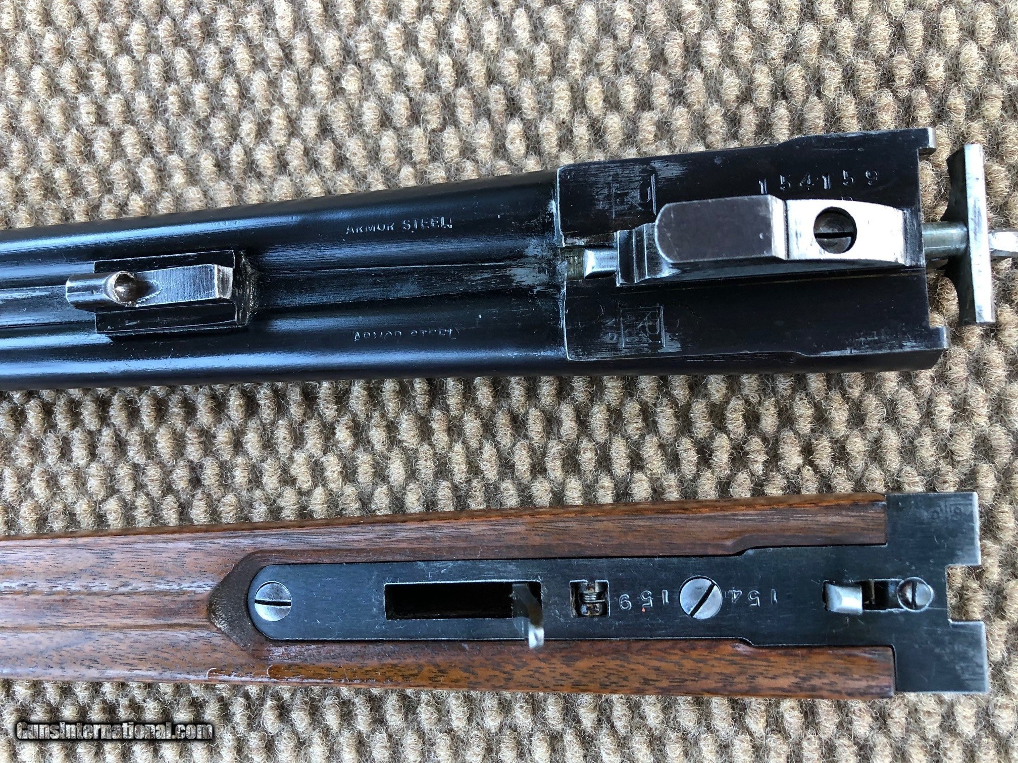 Description: SOLD PENDING RECEIPT OF FUNDS. Very nice Field Grade LC Smith 410 with serial #154159 (1937) and 26" barrels. Case finish has worn over time but stock and forend are free of dings and finish remains nice. Additional photos available upon request. 3 day inspection period offered with return shipping paid by Buyer if necessary. $35 shipping plus insurance toyour FFL (exceptions or C&R) in lower 48 only. SOLD Shotgun Gauge: .410 Gauge Manufacturer: L.C. Smith Model: Field Grade Serial Number: 154159 Barrel Length: 26 Stock Comb: 1 3/8 Stock Heel: 1 5/8 Choke Left: Full Choke Right: IM |