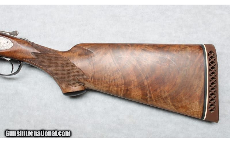 Description: L.C. Smith No. 4E in 12 gauge. The 4E was a moderately priced, high-grade shotgun, introduced in 1894 and manufactured until 1914. This shotgun features 30" barrels, ejectors and the Hunter One Trigger which is selective. The engraving includes a pointer centered in an oval on the lock plates. Only 495 were manufactured in all gauges over its entire production run and compared to other models makes the 4E less common. This shotgun is in nice condition and very well taken care of. 12 Gauge SOLD Chambers: 3 inches Metal Condition: Excellent Wood Condition: Excellent Bore Condition: Bright Barrels: 30 Inches Triggers: Hunter One Trigger Stock Dimensions: LOP 14 Inches Fore End: Checkered walnut Butt Pad: Rubber pad Sights: Twin Ivory beads on a game rib Chokes: Full/Full Item Location: La Vista, NE |