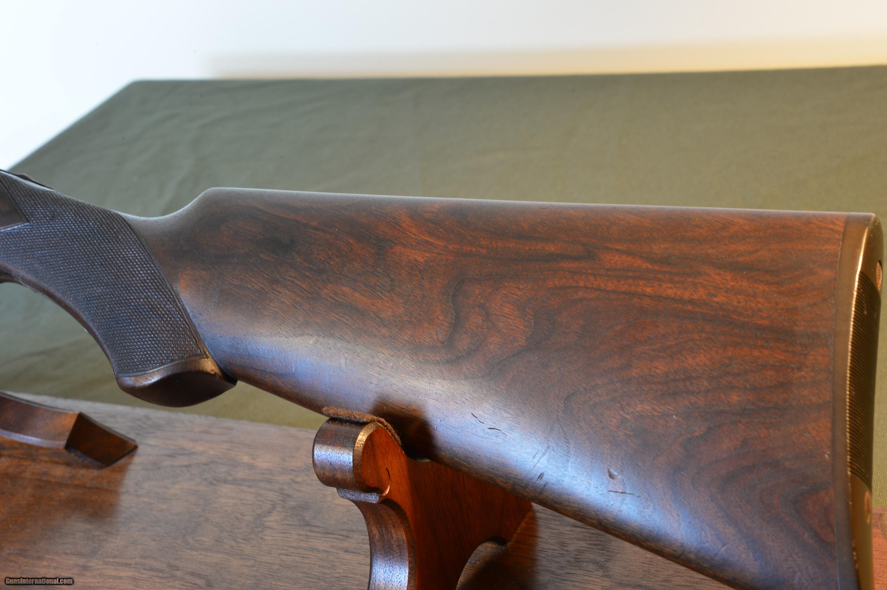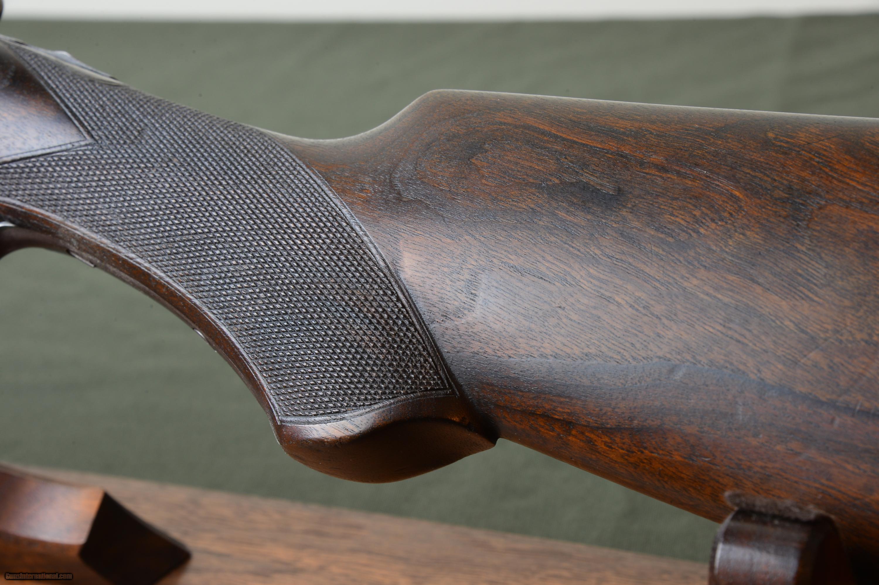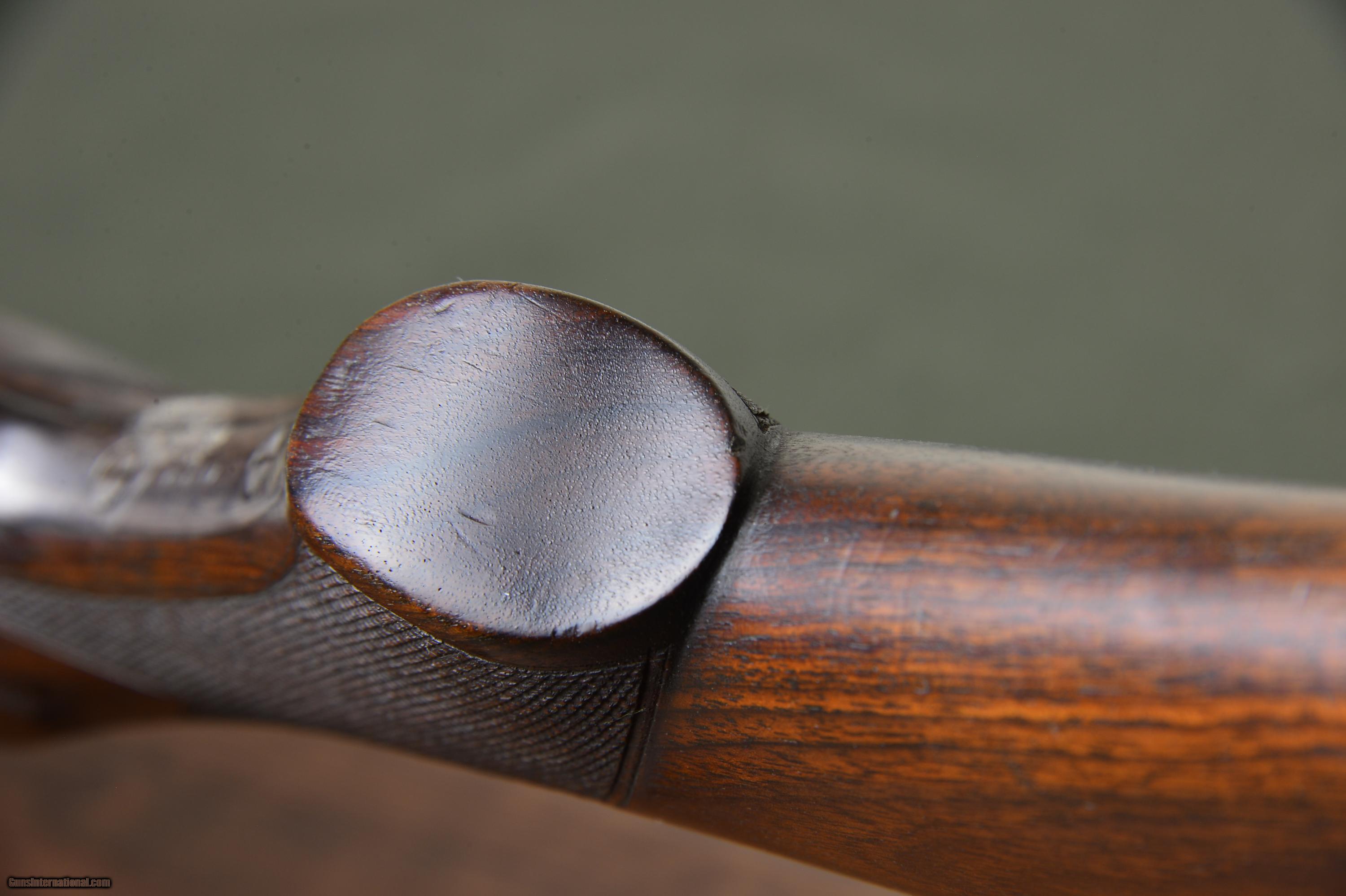 Description: *** SOLD *** SPECIAL SALE - REDUCED BY $1,000 *** Only 572 L. C. Smith A-1 Automatic Ejectors in 12 gauge were made. What a beautiful gun this is with engravings of dogs on the sideplates and a gamebird on the trigger guard. Some original case coloring is visible and the chain pattern Damascus barrels are highly figured. Serial number is 680. Weight is 7lb 5 oz. The barrels are marked A1 on the lower rib near the forearm lug. *** The beautifully figured English walnut stock has a pistol grip and the forearm has an ebony tip. The checkering is fine and crisp. The Length of Pull is 14-7/8” to a plastic butt plate. There is a professionally repaired crack on the lower right horn. *** The 26” Damascus barrels are topped by a raised solid rib and have automatic ejectors. The right barrel is bored 0.732 with a constriction of 0.06 for Skeet choke. The left barrel is bored 0.730 and has a constriction of 0.011 for Improved Cylinder choke. The bores are shiny and bright - really good condition. *** What a great gun for upland hunting for quail, grouse, and woodcock. This is your chance to own a beautiful American classic. Not many made. *** I am an FFL and will need a signed copy of your dealer’s FFL license. Not for sale where prohibited by state or local laws. Buyer is responsible for all shipping, insurance, and any other related charges. I give a 3-day non-firing inspection period and will only accept returns at buyer’s expense if the gun is not as described in the listing. SOLD |