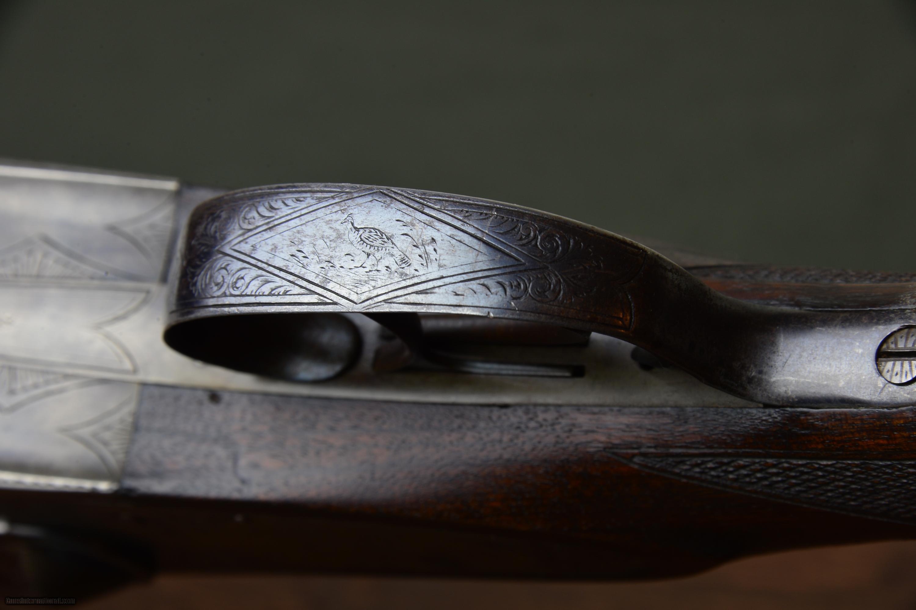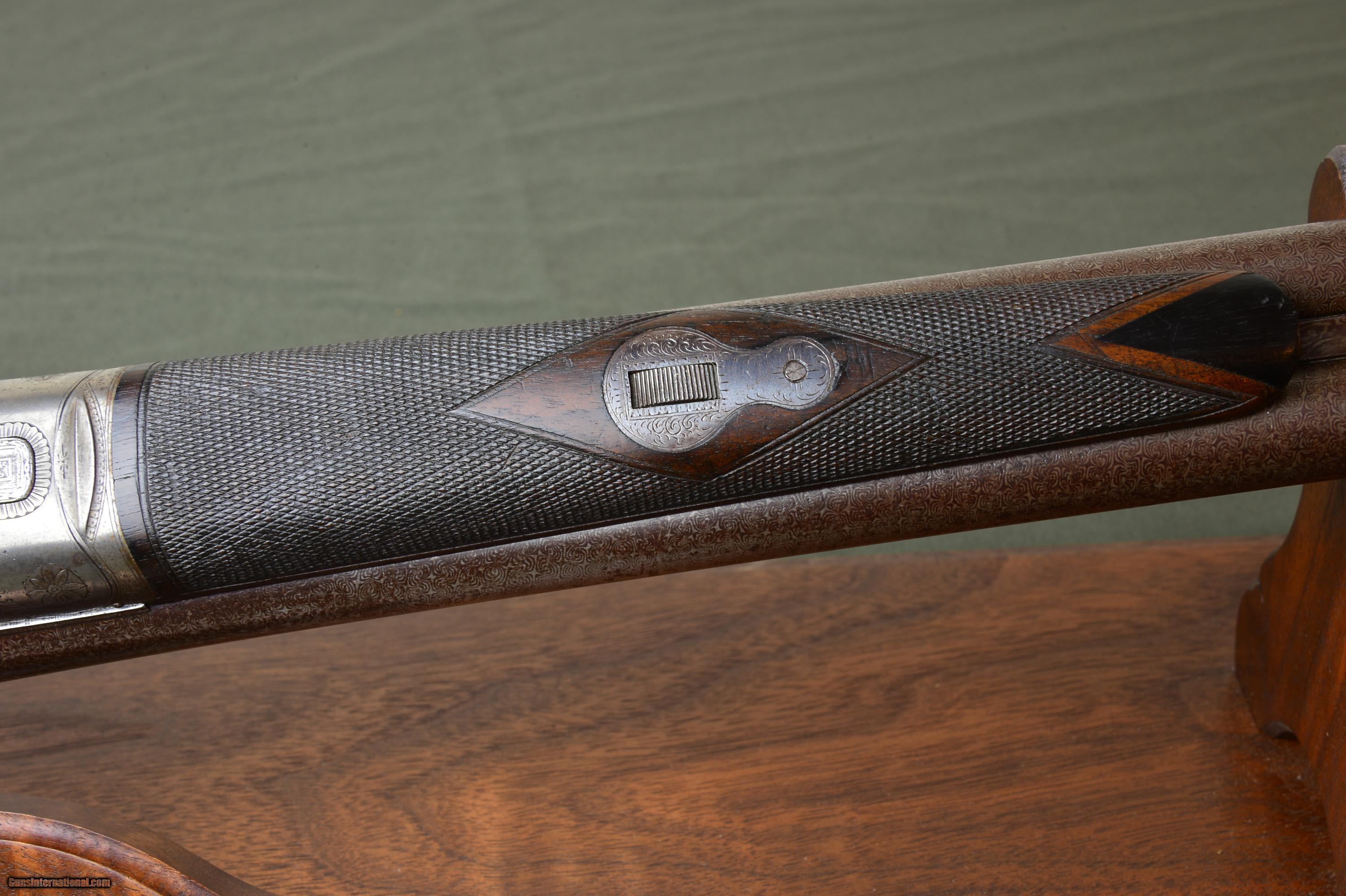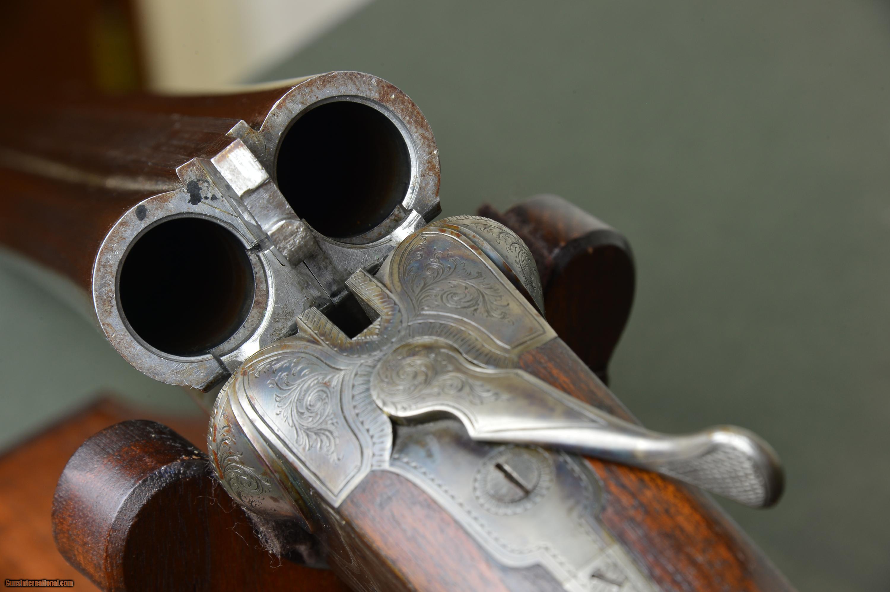 Description: *** SOLD *** SPECIAL SALE - REDUCED BY $1,000 *** Only 572 L. C. Smith A-1 Automatic Ejectors in 12 gauge were made. What a beautiful gun this is with engravings of dogs on the sideplates and a gamebird on the trigger guard. Some original case coloring is visible and the chain pattern Damascus barrels are highly figured. Serial number is 680. Weight is 7lb 5 oz. The barrels are marked A1 on the lower rib near the forearm lug. *** The beautifully figured English walnut stock has a pistol grip and the forearm has an ebony tip. The checkering is fine and crisp. The Length of Pull is 14-7/8” to a plastic butt plate. There is a professionally repaired crack on the lower right horn. *** The 26” Damascus barrels are topped by a raised solid rib and have automatic ejectors. The right barrel is bored 0.732 with a constriction of 0.06 for Skeet choke. The left barrel is bored 0.730 and has a constriction of 0.011 for Improved Cylinder choke. The bores are shiny and bright - really good condition. *** What a great gun for upland hunting for quail, grouse, and woodcock. This is your chance to own a beautiful American classic. Not many made. *** I am an FFL and will need a signed copy of your dealer’s FFL license. Not for sale where prohibited by state or local laws. Buyer is responsible for all shipping, insurance, and any other related charges. I give a 3-day non-firing inspection period and will only accept returns at buyer’s expense if the gun is not as described in the listing. SOLD |