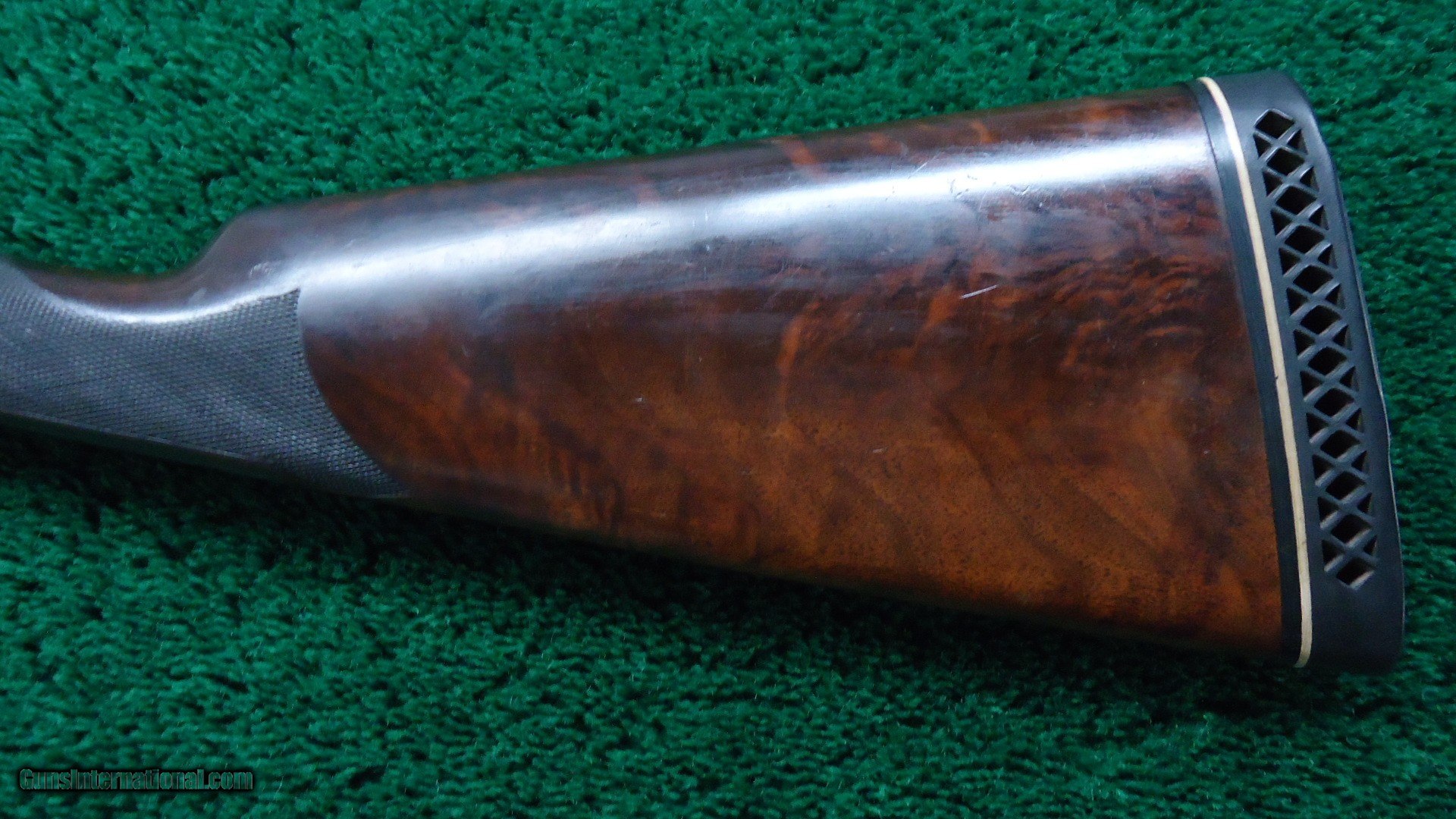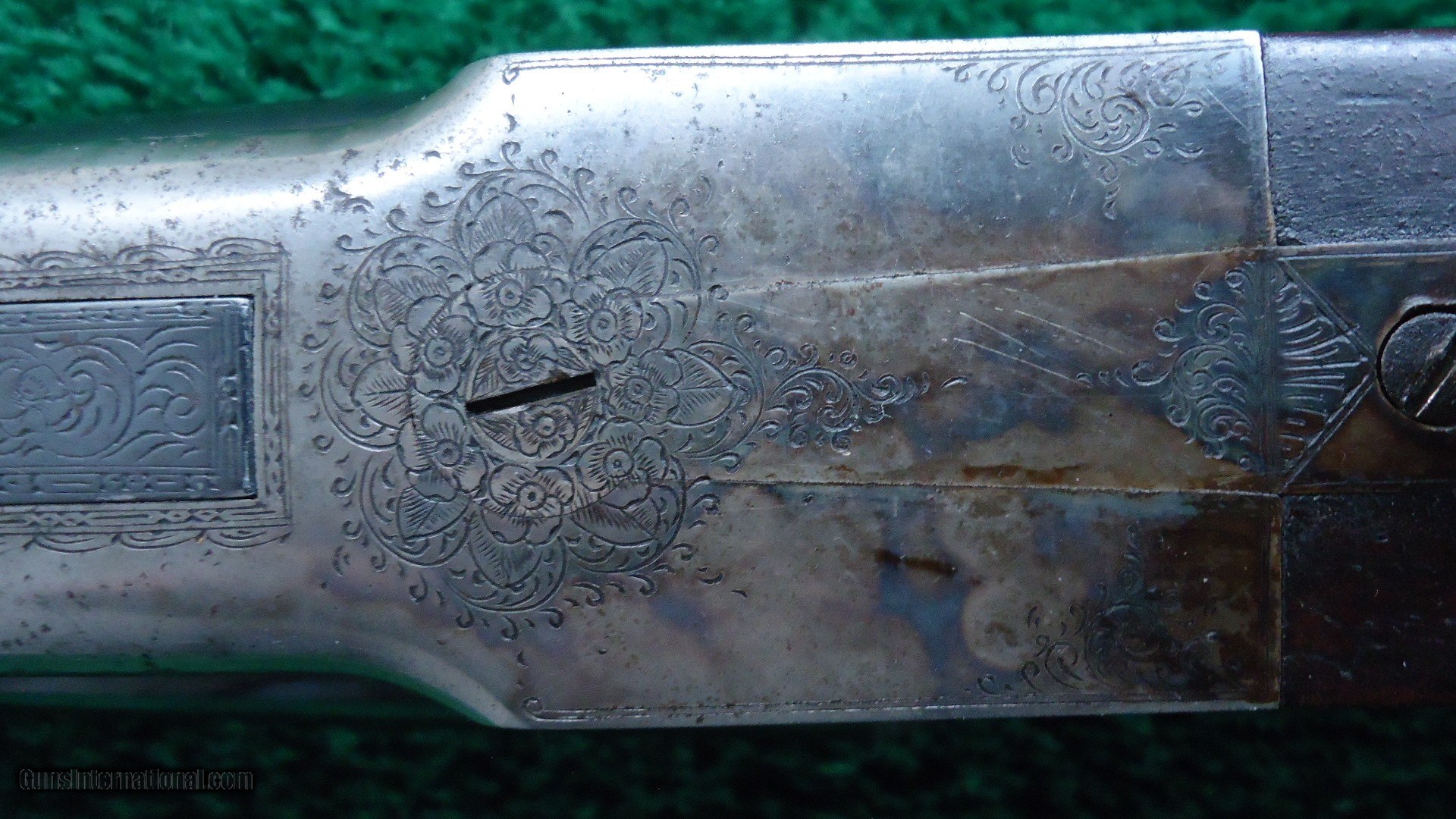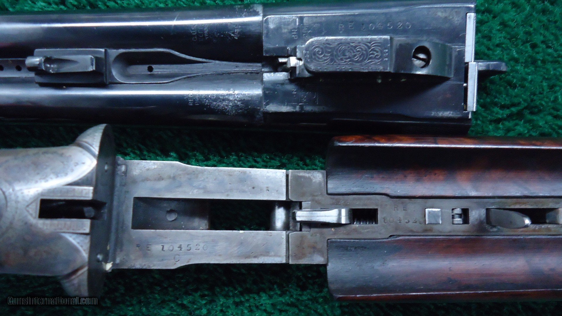 Description: 12 Gauge with 32 inch barrels choked Full and Full. Excellent bores. Original beaver tail forearm is in nice condition. Stock is also in nice condition and measures 14-1/4 to the end of the wood and 15 inches to the end of the Pachmayr white line pad. Mechanics are fine. Features double triggers and ejectors. Barrels have been refinished and are marked Crown grade. Nicely done. Vent rib with 2 Ivory beads. The receiver is nicely engraved with a pair of doves on each side. Engraving is crisp and sharp. 30-40% somewhat muted original case color remains. Trigger guard is refinished. Gun is in the 104k serial range and has the correct Gold Crown inlay on top of the lever. Very clean and excellent inside and out. Leroy Merz Antique Firearms specializes in antique and vintage Winchesters and other fine American firearms. Since 1965 Mr. Merz has taken part in the world of firearms and has been a contributor to many well known reference books. We have hundreds of additional guns in every price range at our home online. Search for Merz Antiques in google. SOLD Curio/Relic: Yes Shotgun Gauge: 12 Gauge |