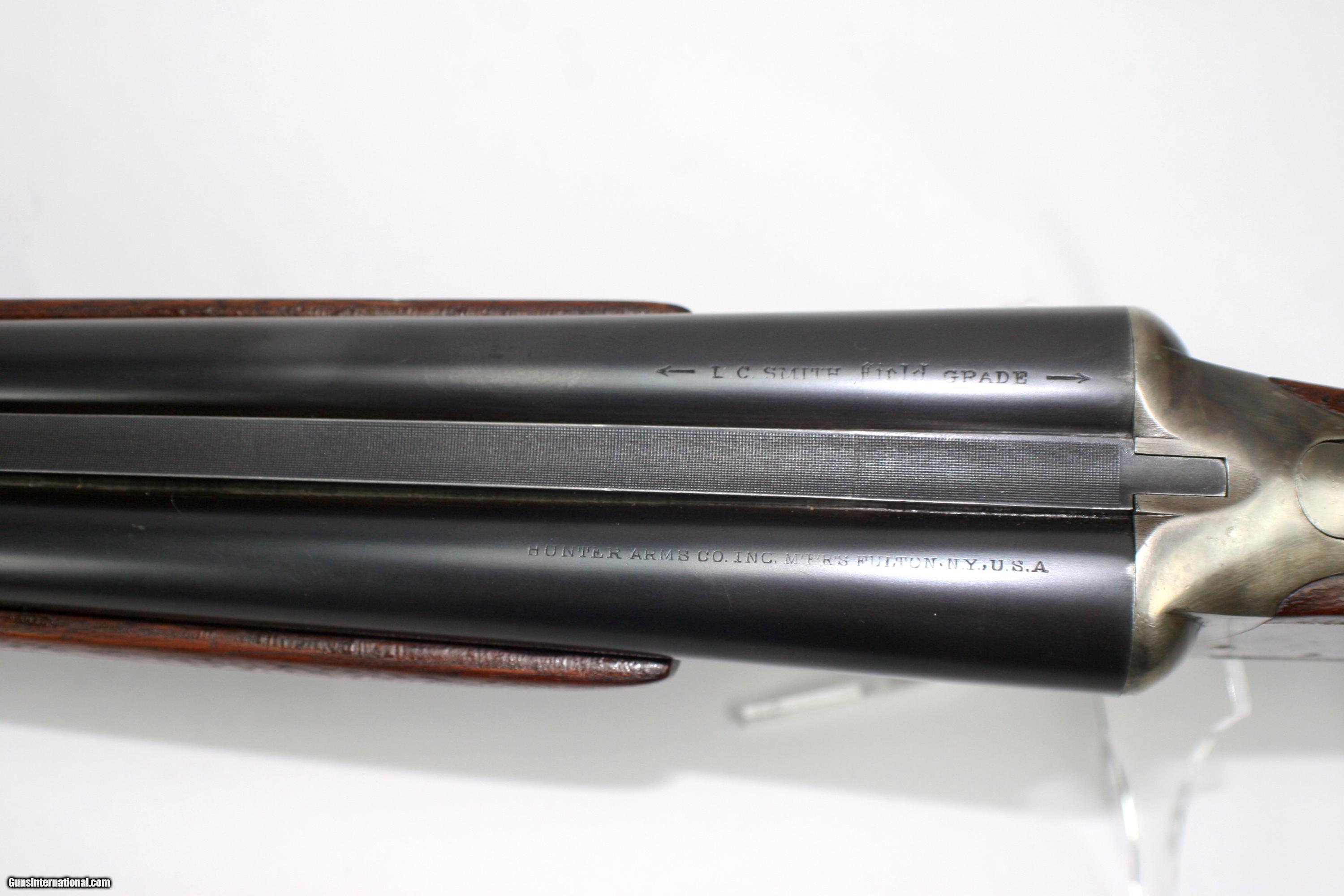 Description: This is a beautiful custom L.C. Smith Field grade shotgun. The 26" barrels display mirror bores and are choked I.C (.010) and Lt Mod. (.014). The barrels, trigger guard and tang are deeply blued with no mars or flaws. The receiver is bright metal as are the side plates and lever. The gun has the Hunter One single trigger system, ejectors and non automatic safety and is made on the Feather Weight frame. The English Style (straight) stock is highly figured Walnut with a lovely diamond checkered oil finish. The full beavertail forearm is fully checkered in the same diamond pattern. Other than two small dents at the bottom of the heel of the sock, the wood is flawless wilth no cracks, chips or scratches. Length of pull lis 13 1/2" over a 3/4" over a Pachmayr White Line pad. Drop at combis 1 1/2" with a drop at heel of 2 1/4". Manufactured in 1927 by Hunter Arms the gun is serial numbered 99269. An beautiful bird gun, it would also perform well on the clays or skeet fields. SOLD Curio/Relic: Yes Manufacturer: Hunter Arms Co., Inc. Fulton, NY Model: L.C. Smith Field Grade Serial Number: 99269 Chambers: 2 3/4 Condition: Excellent Metal Condition: Excellent Wood Condition: Near Perfect Bore Condition: Spotless Barrels: 26 Barrel Type: Side by Side Action: Box Lock Triggers: Hunter One Gauge Info: 12 Stock: Highly figured Walnut Stock Comb: 1 1/2' drop Stock Heel: 2 1/4" drop Stock Cast: right Fore End: Beavertail Butt Pad: White Line LOP: 13 1/2 Rib: Solid Finish: Blue/Bright Steel Weight: 7 1/2 lbs. Manufacture Date: 1927 Choke Left: Lt Mod (.014) Choke Right: I.C. (.010) Item Location: Oklahoma Proof:Nitro: Yes |