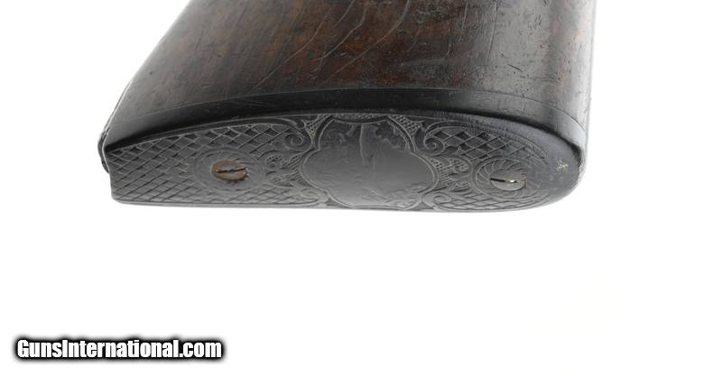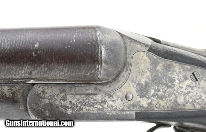 Description: L.C Smith Damascus Side by Side 10 Gauge shotgun. Manufactured in the early 1890’s. In scarce 10 Gauge. Has a 32” Damascus barrels with a brown and gray patina. Butt plate and toe have a chip. Shotgun has some field wear, otherwise in good condition. A popular 10 Gauge shotgun.