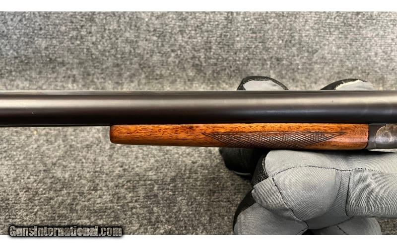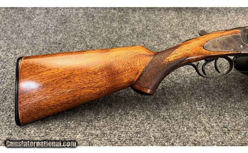 Description: This is a nice example of a classic American side by side shotgun, and is a perfect opportunity for those who admire fine traditional firearms. Made in approximately 1949, it comes with double triggers. There is a little pitting along the top of the barrels near the receiver, shown in the pictures. 12 Gauge SOLD Chambers: 12 gauge Metal Condition: Very good. Wood Condition: Very good. Bore Condition: Very good. Barrels: 28 inch barrels Triggers: Double triggers Butt Pad: Phenolic butt plate Weight: 7.5 lbs. Sights: Bead front Chokes: Unknown Item Location: Albuquerque, NM |