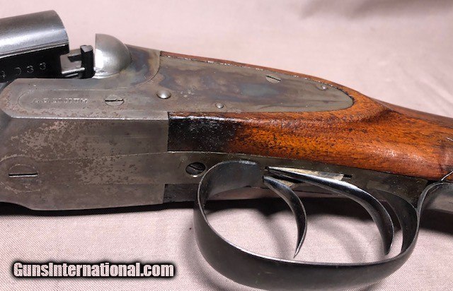 Description: L.C. Smith Field 20g 28" Fair condition SN 94033 Comb 1 1/2" Heel 3" LOP 14 3/8 to rubber pad. 13 1/4" of wood. Ejectors Automatic 3 stage safety 28" bbls IM/F Double triggers 2 1/2" chambers Period correct rubber pad. Well used, but serviceable and safe. Orvis Gunsmith inspected. Trace colors with some rust stains. 50% blue. Very nice bores. Finish all original with hunting and handling marks expected of a gun this old. Please call or email for additional photos and information. SOLD |