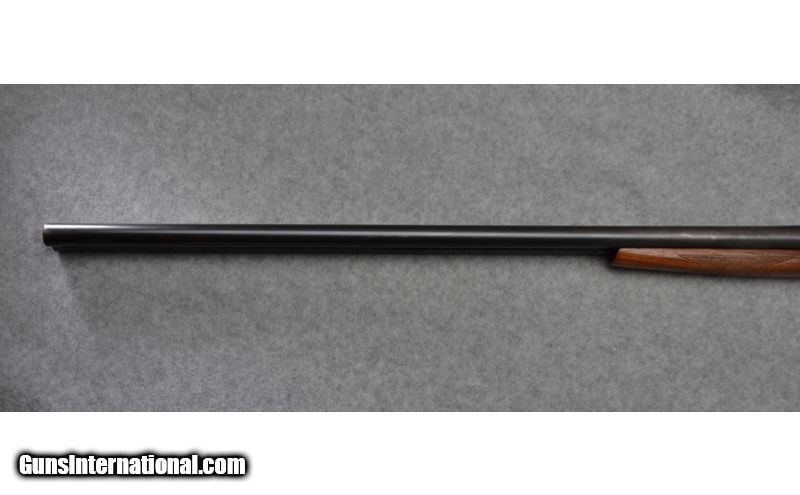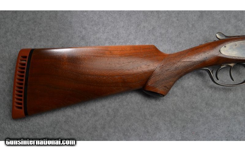 Description: A nice L.C. Smith Field Grade side by side 12 Gauge shotgun. This gun features 30 inch barrels with bead sight. It has a nice case colored receiver with quite a bit of case color remaining, two trigers, one for each barrel and a walnut pistol grip stock and forearm with checkering. It shows some bluing wear and handling marks. 12 Gauge SOLD Curio/Relic: Yes Chambers: 2 3/4 inch. Metal Condition: Good with bluing loss and scratches to original finish. Wood Condition: Good with handling marks/scratches. Barrels: 30 inch blue with solid rib. Triggers: Two triggers, one for each barrel. Stock Dimensions: 14 1/4 inch LOP. Fore End: Splinter with checkering. Butt Pad: Red Hawkin Butt Pad. Sights: Brass bead sight. Chokes: Full and Modified fixed choke. Item Location: Woodbury, MN |
