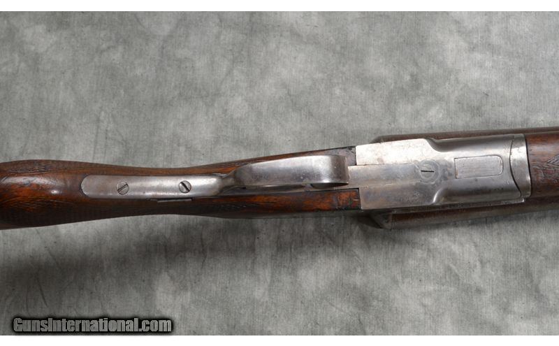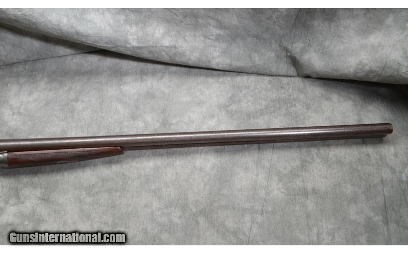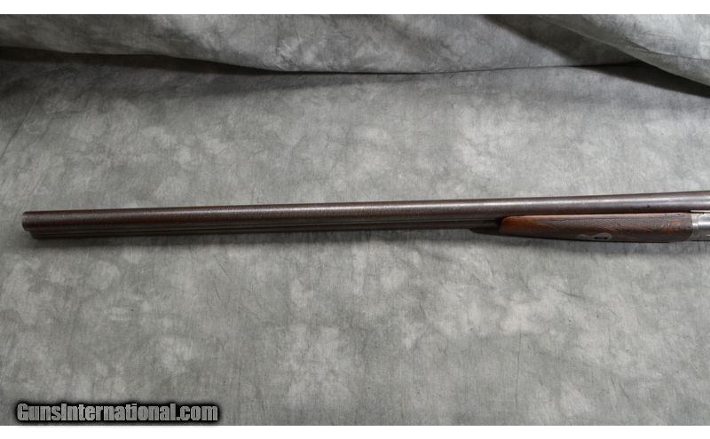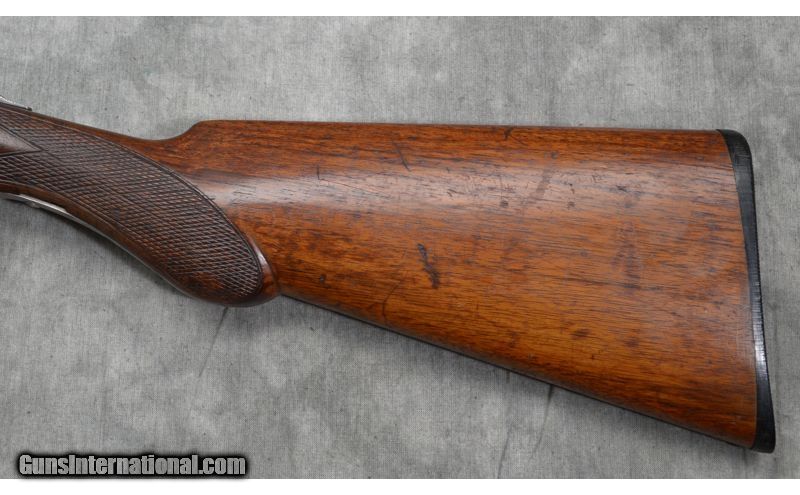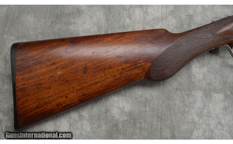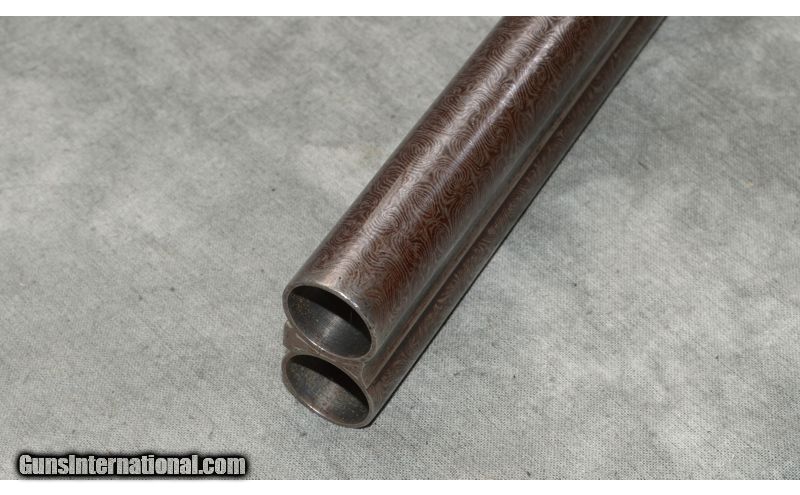 Description: An older Damascus steel double with very distinct Damascus patternning in the barrels. It has a Prince of Wales round knob stock. Locks tight to face. 12 Gauge SOLD Curio/Relic: Yes Chambers: 2-3/4 inch. Metal Condition: Good. Has normal usage marks and has aged to grey patina with some original finish in the protected corners. Wood Condition: Fair to good. Quite a number of small nicks and dents. Barrels: 30 inch. Triggers: Double triggers. Stock Dimensions: 13-7/8 inch LOP to front trigger. Fore End: Matching walnut splinter. Butt Pad: Black plate. Sights: Matte solid rib with gold bead. Chokes: Fixed Improved Cylinder and Full. Item Location: Rogers |