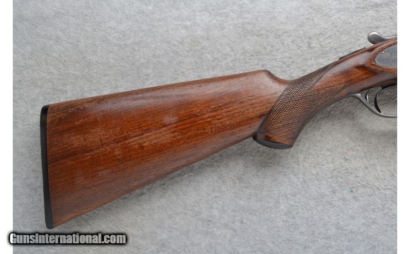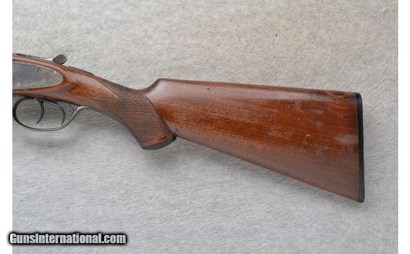 Description: This L.C. Smith Field Grade Model is a 12 Ga. side by side shotgun. It has 28 inch barrels with a solid rib and extractor. A brass bead front sight. With 2 3/4 inch chambers it has fixed Full and Modified chokes. The butt stock is a checkered walnut pistol grip with a black cap. The forearm is a checkered grip walnut splinter style. It has a case colored frame. 12 Gauge SOLD Chambers: 2 3/4 inch. Metal Condition: "Fair with light wear, handling marks and a few minor freckling spots. Wood Condition: Fair with wear and handling marks. Bore Condition: Shiny Barrels: 28 inch barrels with a solid rib and extractor. Triggers: Double Stock Dimensions: LOP 14 inch. Fore End: Checkered grip walnut splinter. Butt Pad: Horizontal grooved black plate. Weight: 6 lb. 10 oz. Sights: Brass front bead. Chokes: Fixed Full and Modified. Item Location: Richfield, WI |