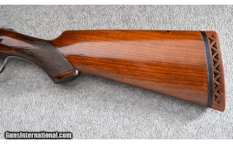 Description: The Hunter Arms Co. was formed to manufacture L.C. Smith shotguns around 1891. This extractor gun was manufactured in 1928 and remains in good overall condition. Wood is solid with no cracks but has long ago had a heavy coat of finish added that has accumulated in checkering. There are some light dings and scratches all over. Little blue remains on barrels but bores are excellent. Receiver finish is also very worn with spots of light pitting all over. Barrels still ring true and serial numbers match. This would make a great project gun. Ninety four years of history in this old shotgun! 16 Gauge SOLD Chambers: 2 1/2 Metal Condition: Good Wood Condition: Good Bore Condition: Excellent Barrels: 28" Solid Rib Triggers: Double Stock Dimensions: 14 3/8" LOP - 1 7/8" DAC - 3" DAH - No Caste Fore End: Checkered Walnut Pistol Grip with Black Pistol Grip Cap - Checkered Walnut Splinter Butt Pad: Hawkins Red Vented Rubber Butt Pad Weight: 6 3/4 lbs Sights: Red Front Bead - Brass Mid Bead Chokes: Full/Full - Fixed Item Location: Wheeling |