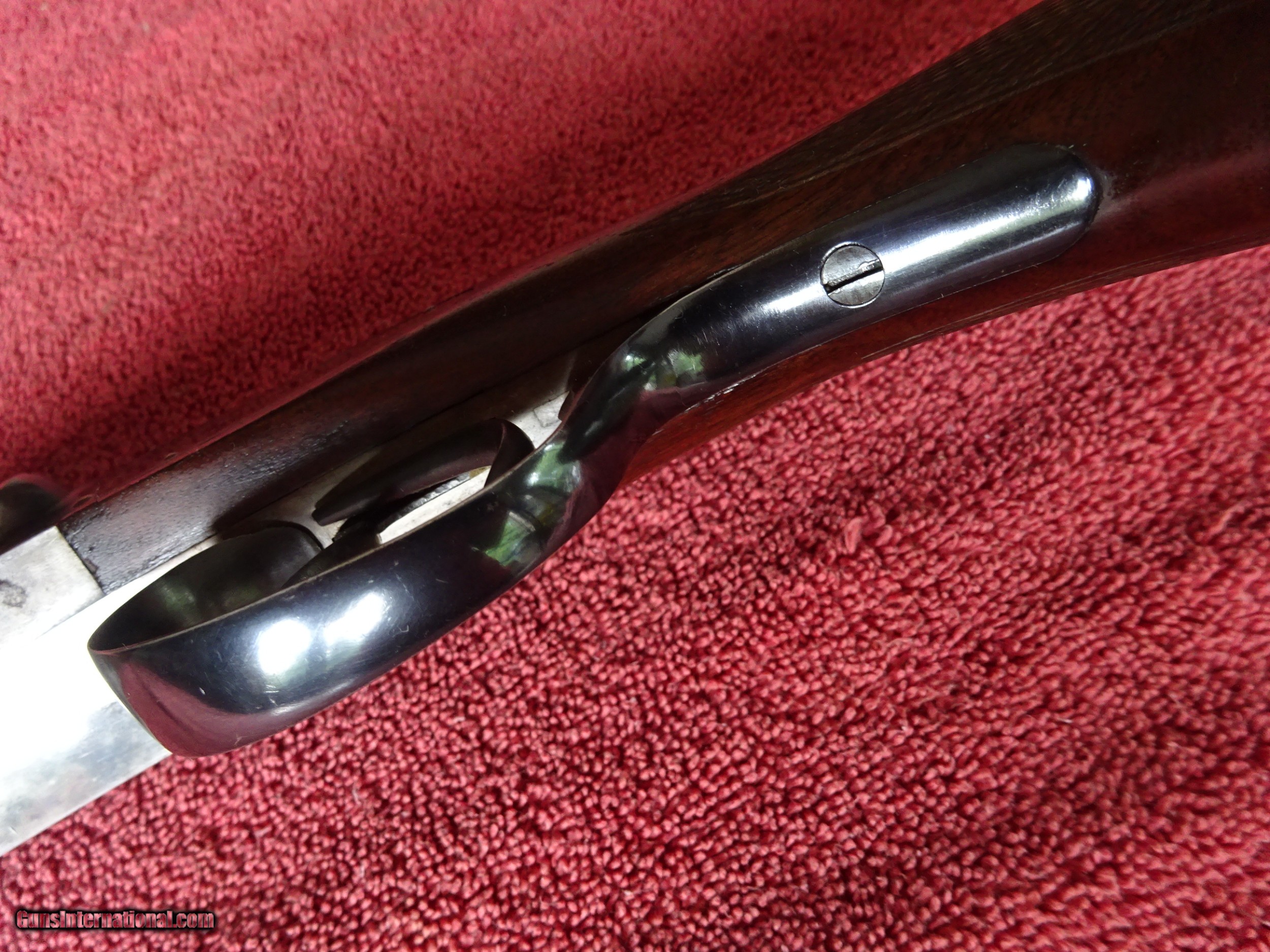 Description: L C SMITH, FIELD GRADE 20 GAUGE, 28" ARMOR STEEL BARRELS. MODIFIED AND FULL, MIRROR BRIGHT BORES, VERY GOOD BLUE, TWIN SIGHTS, BARRELS RING LIKE A BELL. FEATHERWEIGHT FRAME, EXCELLENT, BOLD VIVID CASE COLOR, EXCELLENT SCREWS, TOP LEVER TO THE FAR RIGHT, TIGHT ON FACE. PISTOL GRIP STOCK, SPLINTER FOREARM, VERY GOOD WOOD AND CHECKERING, NO CRACKS OR PROBLEMS, TYPICAL HANDLING MARKS IN THE VARNISH. ORIGINAL GRIP CAP AND BUTTPLATE, 1 1/2" X 2 1/2" X 14 1/4", 6 POUNDS 6 OUNCES. MADE IN 1949, NICE HANDLING UPLAND GAME GUN, 100% ORIGINAL CONDITION. $1575.00 + $50.00 Insured shipping to an FFL address. See all Pats gun listings on this site! We also have hundreds of pieces of ORIGINAL gun company advertising & memorabilia available for sale on our site SPORTINGCOLLECTIBLES. We have no reprints or reproductions. Email for more information. SOLD Curio/Relic: Yes |